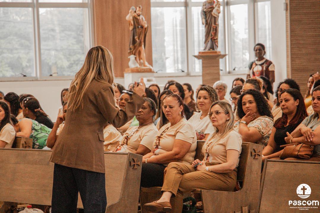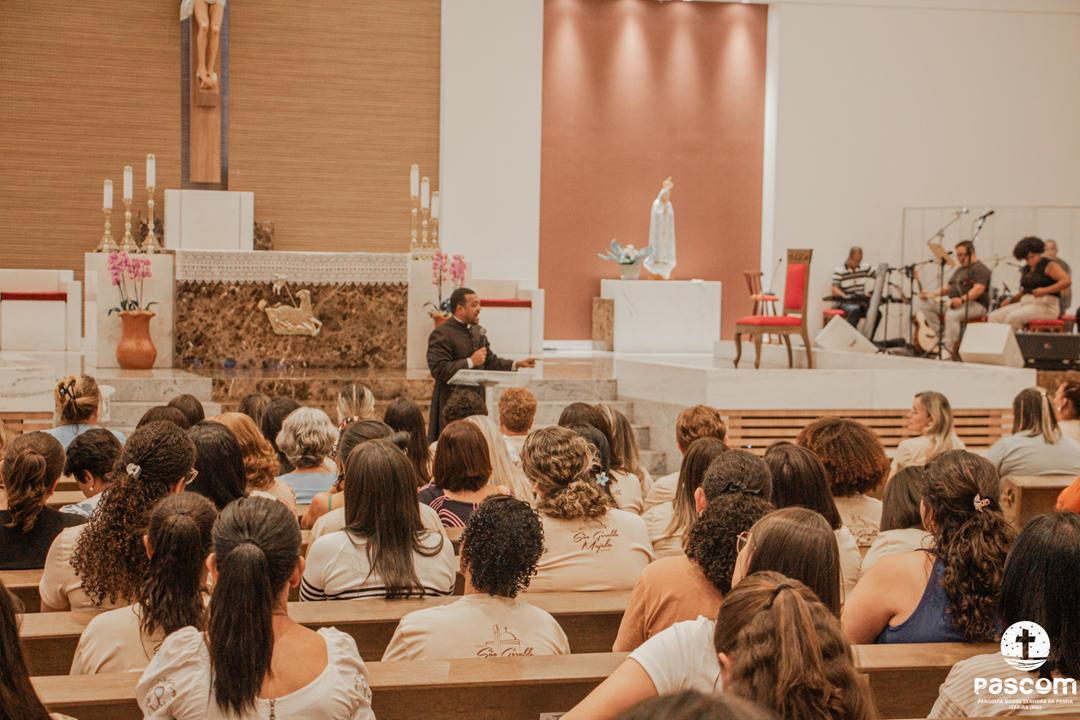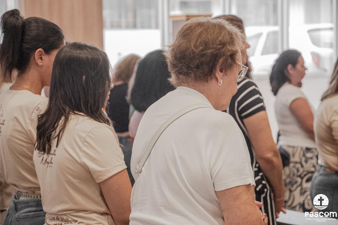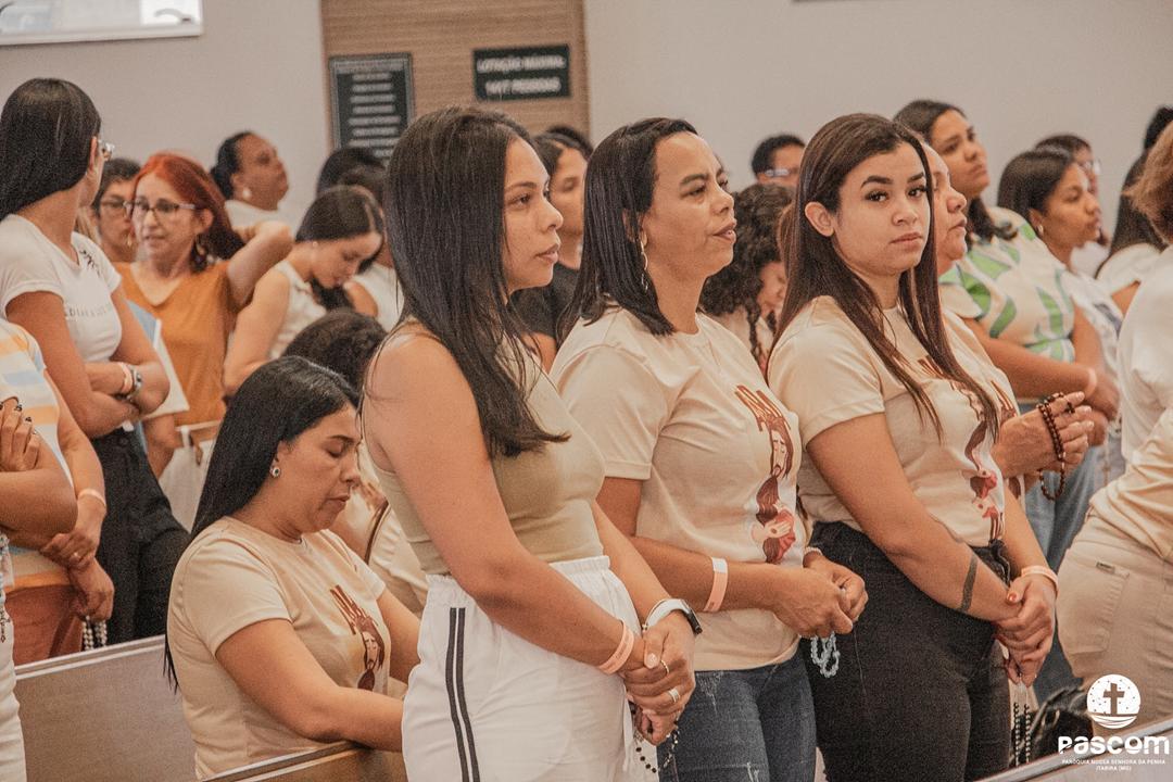 Iniciando às 13h, a programação contemplou momentos de oração, louvor e pregação, conduzindo as mulheres a uma experiência de fé transformadora. O encerramento se deu com a Santa Missa, presidida pelo pároco Pe. Ueliton Neves, com assistência do Diácono Permanente Alisson Gomes, seguida do momento de adoração e bênção eucarística.