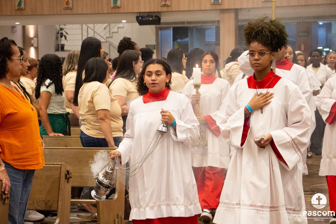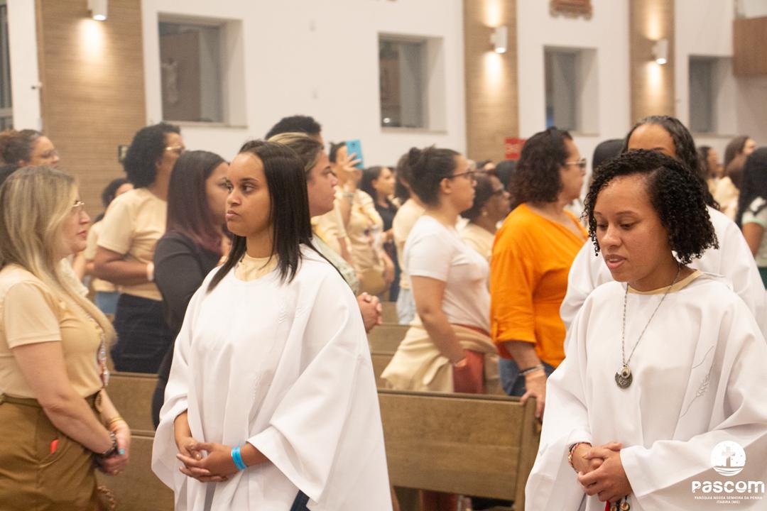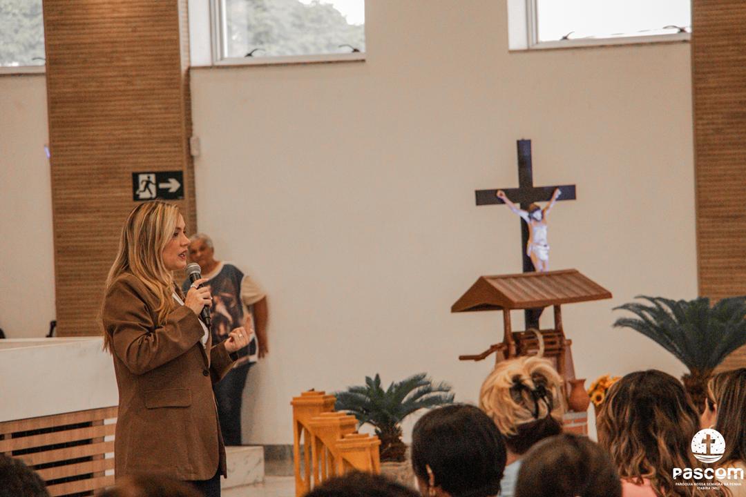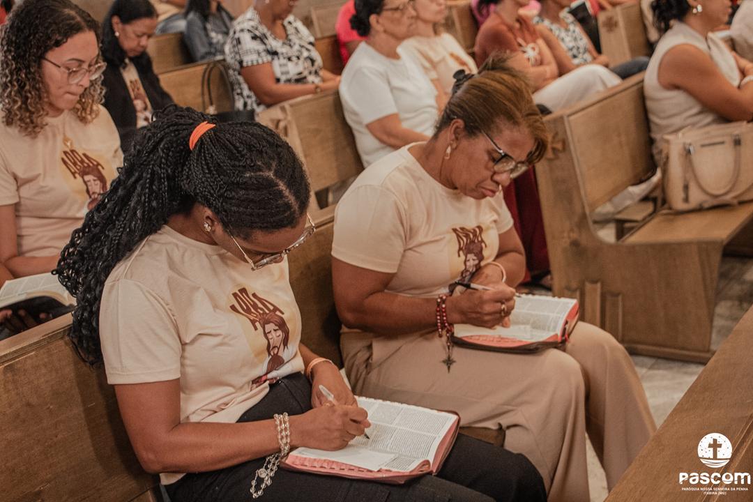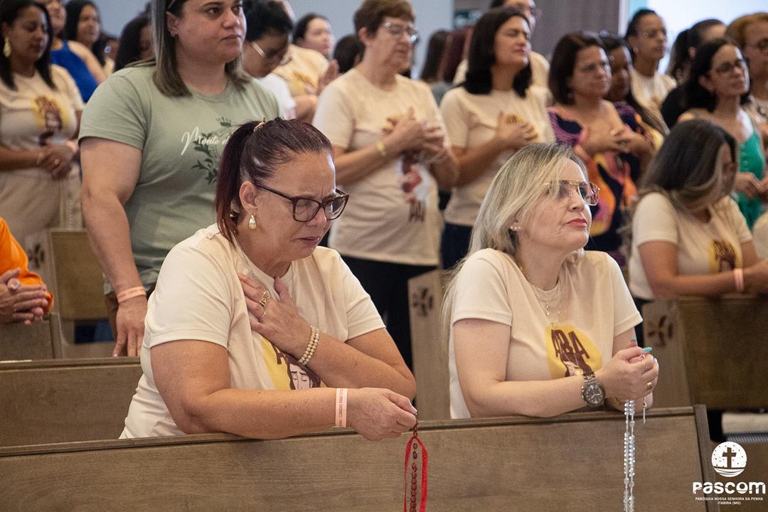Iniciando às 13h, a programação contemplou momentos de oração, louvor e pregação, conduzindo as mulheres a uma experiência de fé transformadora. O encerramento se deu com a Santa Missa, presidida pelo pároco Pe. Ueliton Neves, com assistência do Diácono Permanente Alisson Gomes, seguida do momento de adoração e bênção eucarística.