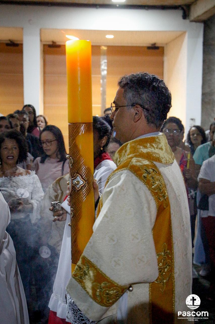 As celebrações tiveram início com a bênção do fogo novo e acendimento do Círio Pascal. Após, em procissão, todos seguiram para a Igreja. O Círio foi conduzido à frente da procissão. Ao chegarem, antes de entrarem, os fiéis acenderam suas velas e entraram no Templo, que se encontrava com as luzes apagadas. Tendo cantado pela última vez, no presbitério da Igreja, o “Eis a luz de Cristo”, depositado o Círio ao lado do Ambão, cantou-se solenemente o Precônio Pascal, proclamando a ressurreição do Senhor.