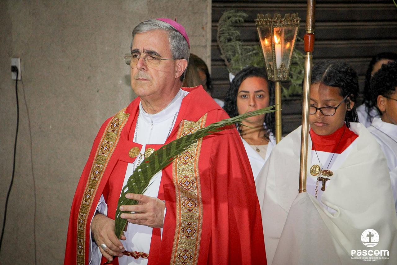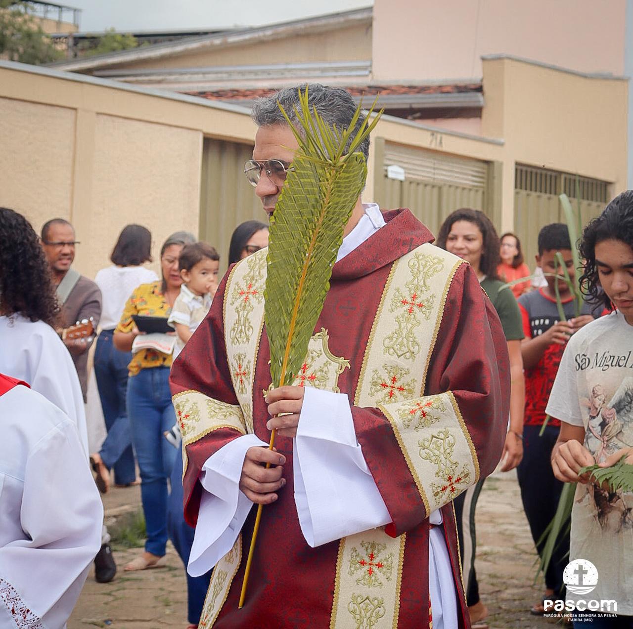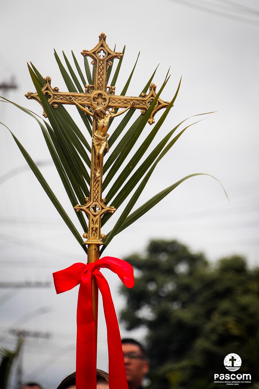 Quanto a nós, vamos com ele! Os ramos que trazemos nas mãos significam que reconhecemos Jesus como o Messias de Israel, prometido por Deus. Significam também que nos dispomos a segui-lo como o Servo que dá a vida na cruz. Levaremos estes ramos para casa. Devemos guardá-los num lugar visível durante todo o ano, para recordar nosso compromisso de seguir o Cristo num caminho de humildade e despojamento; segui-lo ainda quando não compreendermos bem os desígnios de Deus para nós. Seguir o Cristo, que confia no Pai até a morte e não se cansa de fazer da vida um serviço de amor. Seguir hoje em procissão com os ramos na mão significa proclamar diante do mundo que cremos nesse Jesus fraco, humilde, silencioso, crucificado, loucura para o mundo, mas sabedoria de Deus; fraqueza para o mundo, mas força de Deus!