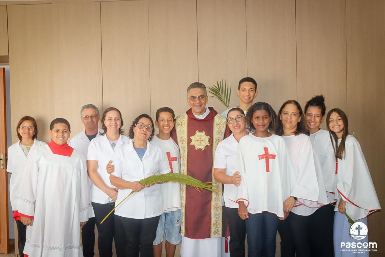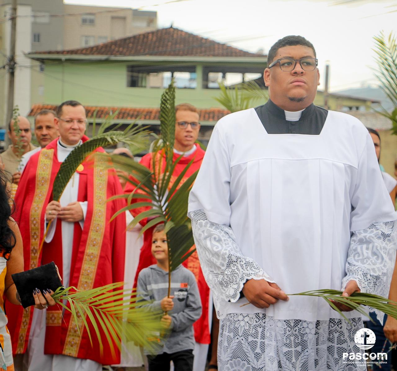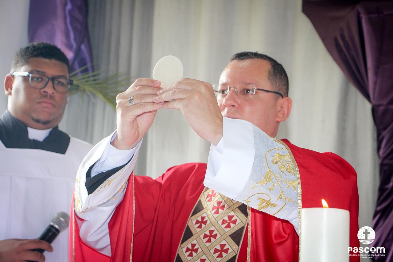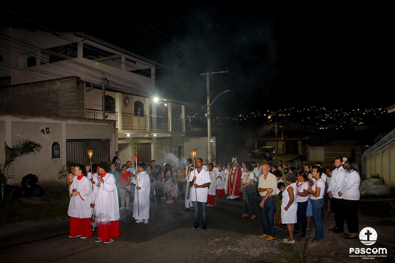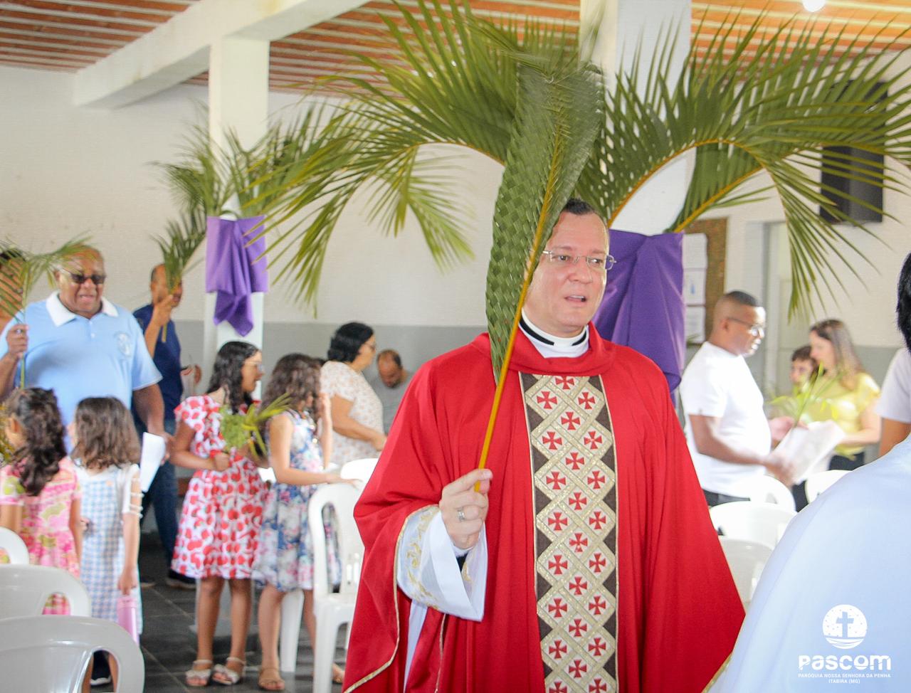 A Paróquia Nossa Senhora da Penha celebrou no último dia 13 de abril, o Domingo de Ramos da Paixão do Senhor. Esta celebração dá início à Semana Santa, onde nos convida a vivenciar com mais fervor o mistério do amor de Deus, através da Paixão, Morte e Ressurreição de Jesus. No Domingo de Ramos, contemplamos a Entrada Triunfal do Senhor em Jerusalém como Rei de Israel, nos chamando a também proclamarmos o senhorio de Cristo em nossa vida. Vários fiéis participaram da procissão e celebração eucarística, levando ramos para serem abençoados.