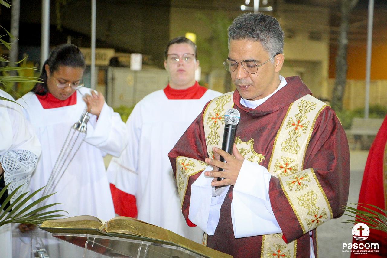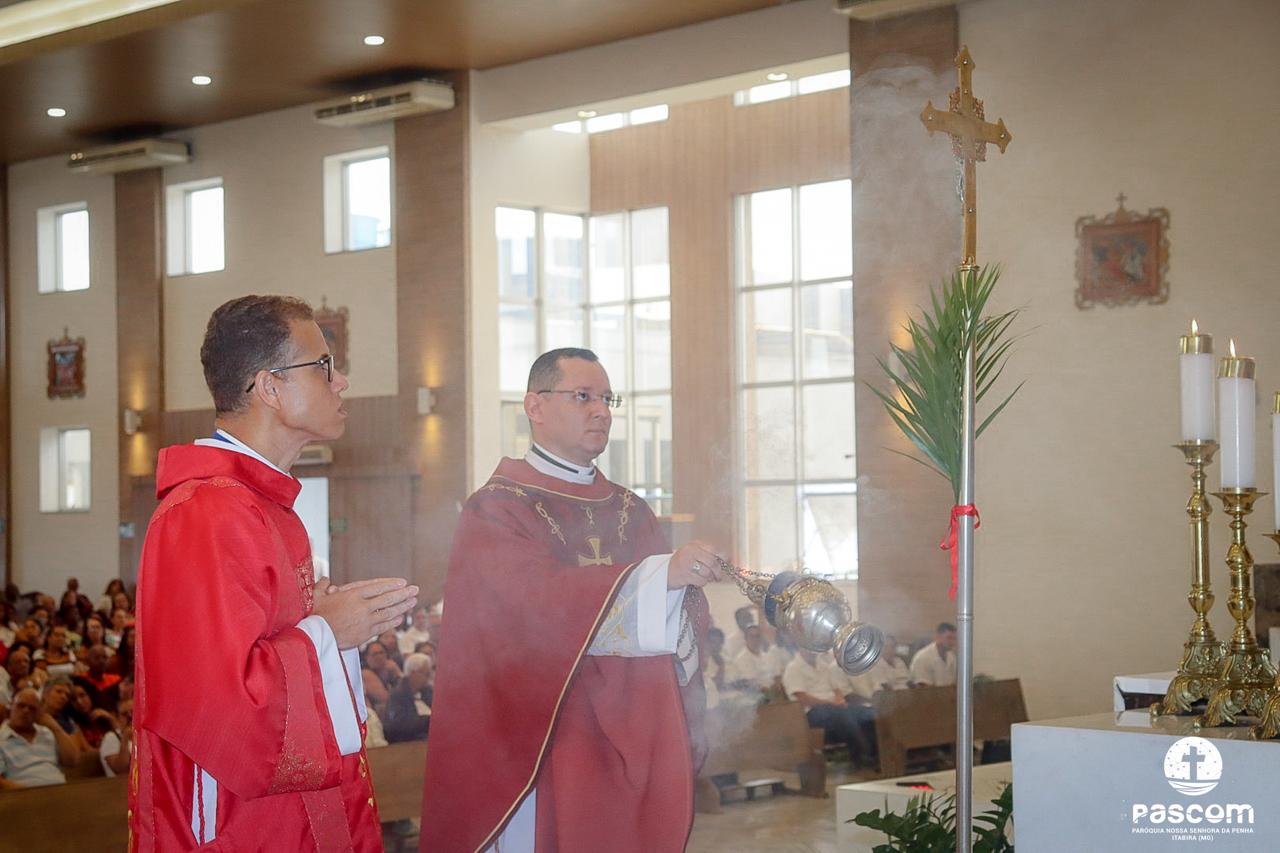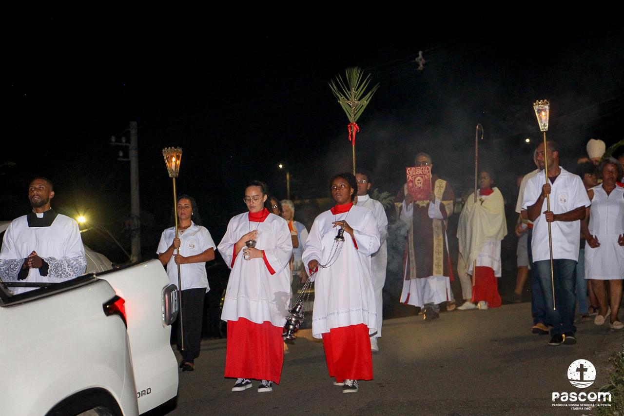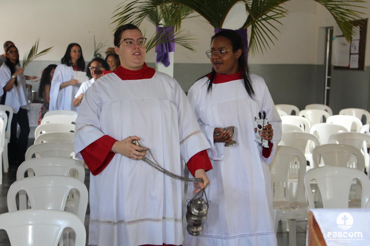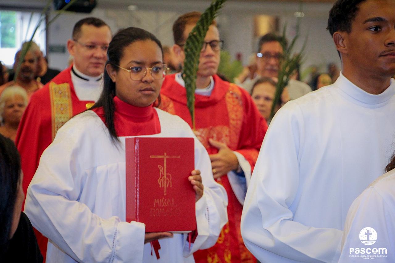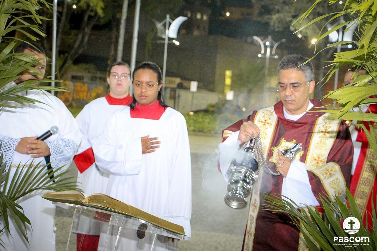 A Paróquia Nossa Senhora da Penha celebrou no último dia 13 de abril, o Domingo de Ramos da Paixão do Senhor. Esta celebração dá início à Semana Santa, onde nos convida a vivenciar com mais fervor o mistério do amor de Deus, através da Paixão, Morte e Ressurreição de Jesus. No Domingo de Ramos, contemplamos a Entrada Triunfal do Senhor em Jerusalém como Rei de Israel, nos chamando a também proclamarmos o senhorio de Cristo em nossa vida. Vários fiéis participaram da procissão e celebração eucarística, levando ramos para serem abençoados.