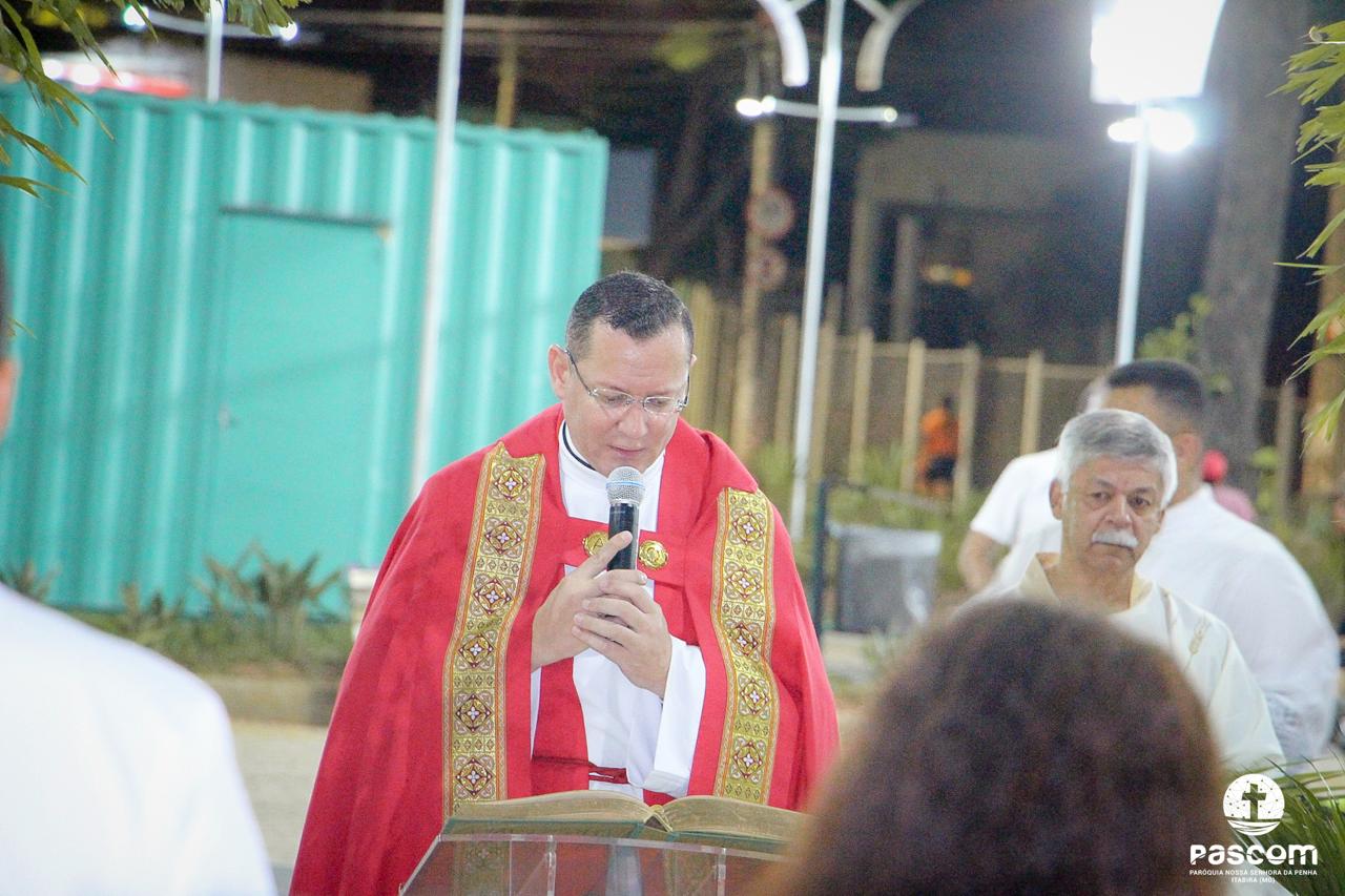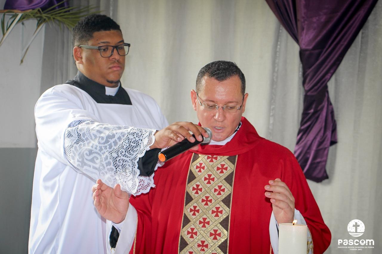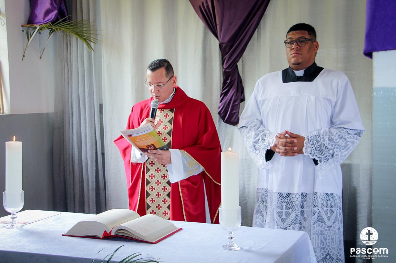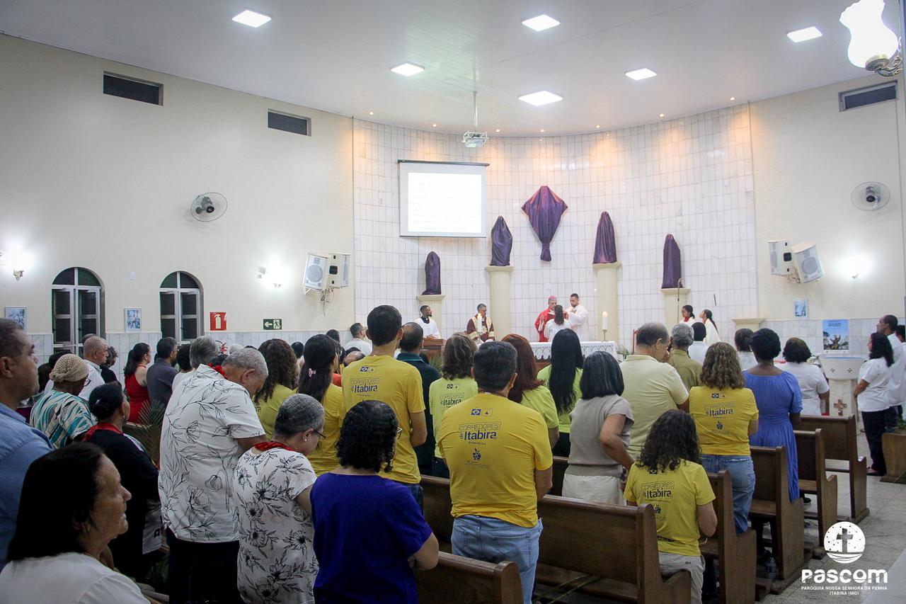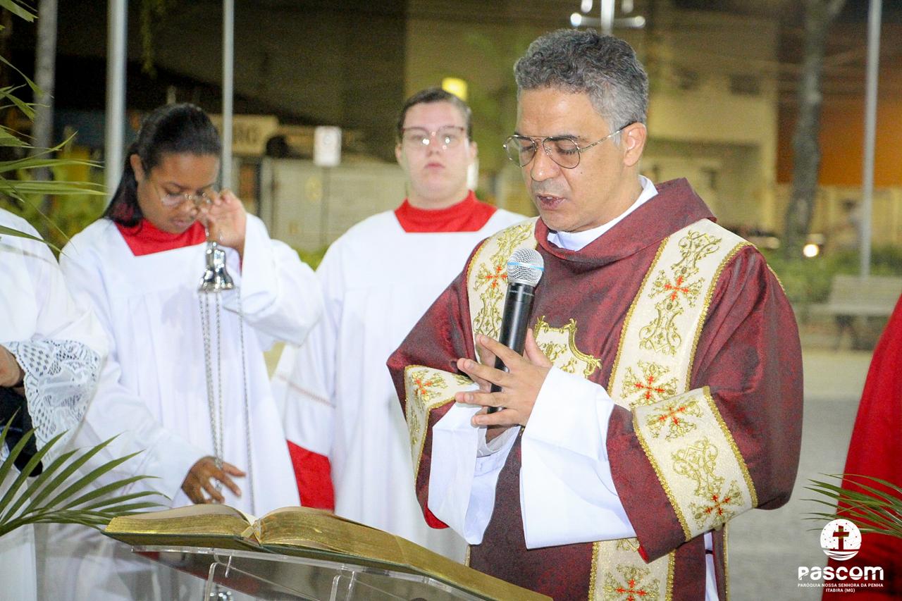 A Paróquia Nossa Senhora da Penha celebrou no último dia 13 de abril, o Domingo de Ramos da Paixão do Senhor. Esta celebração dá início à Semana Santa, onde nos convida a vivenciar com mais fervor o mistério do amor de Deus, através da Paixão, Morte e Ressurreição de Jesus. No Domingo de Ramos, contemplamos a Entrada Triunfal do Senhor em Jerusalém como Rei de Israel, nos chamando a também proclamarmos o senhorio de Cristo em nossa vida. Vários fiéis participaram da procissão e celebração eucarística, levando ramos para serem abençoados.
