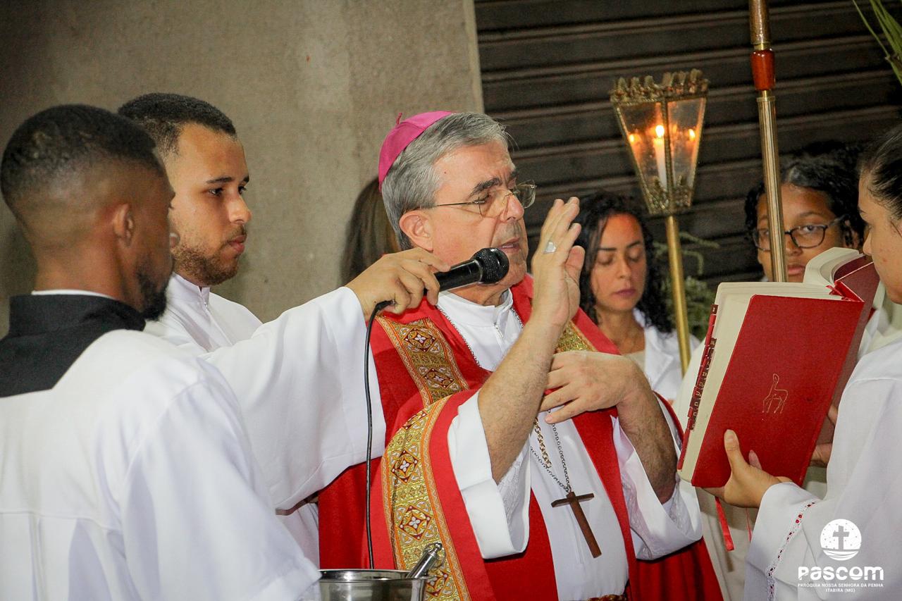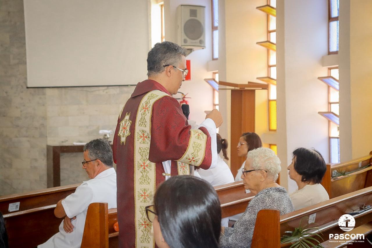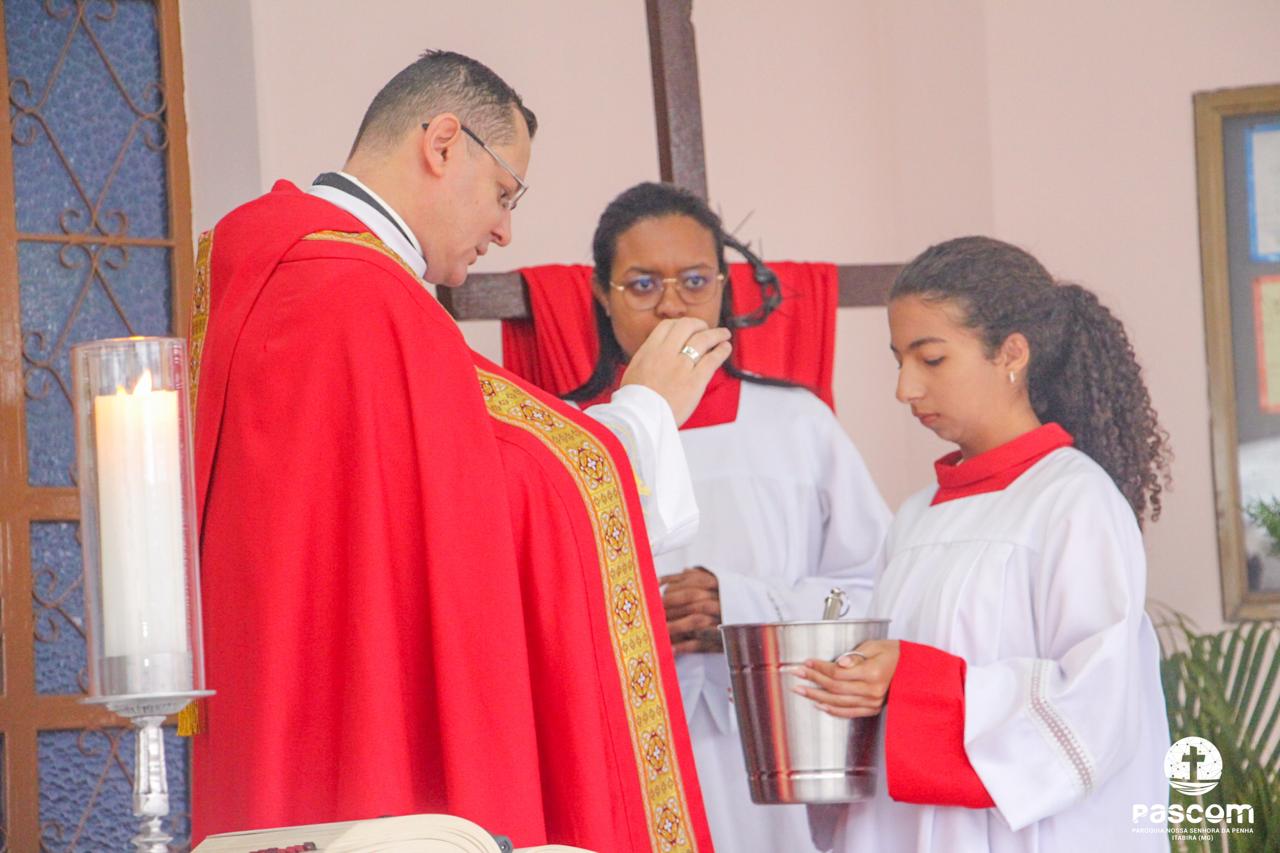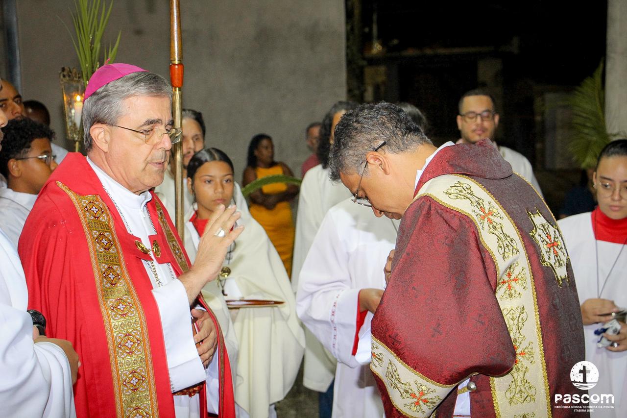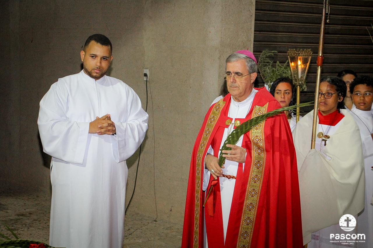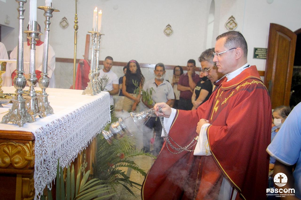 A Paróquia Nossa Senhora da Penha celebrou no último dia 13 de abril, o Domingo de Ramos da Paixão do Senhor. Esta celebração dá início à Semana Santa, onde nos convida a vivenciar com mais fervor o mistério do amor de Deus, através da Paixão, Morte e Ressurreição de Jesus. No Domingo de Ramos, contemplamos a Entrada Triunfal do Senhor em Jerusalém como Rei de Israel, nos chamando a também proclamarmos o senhorio de Cristo em nossa vida. Vários fiéis participaram da procissão e celebração eucarística, levando ramos para serem abençoados.