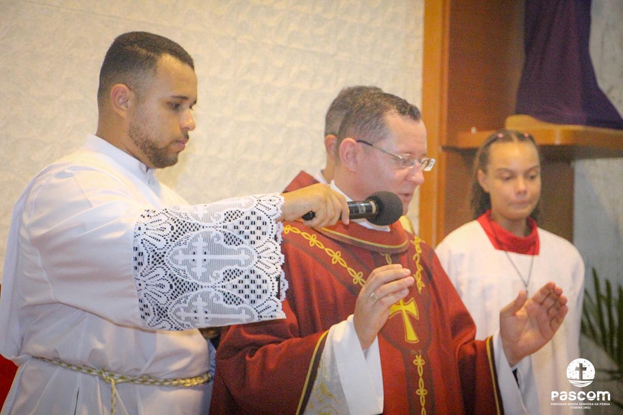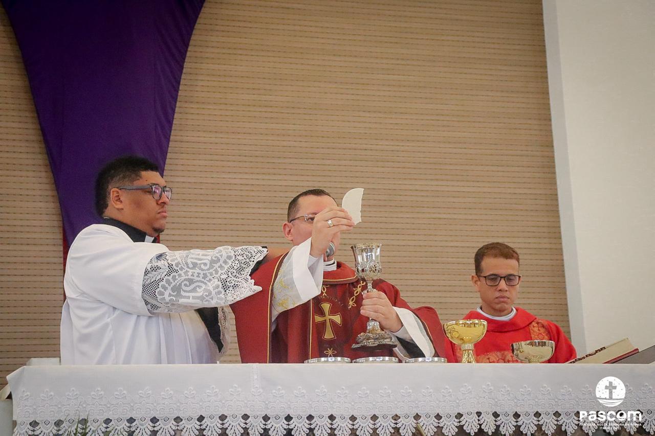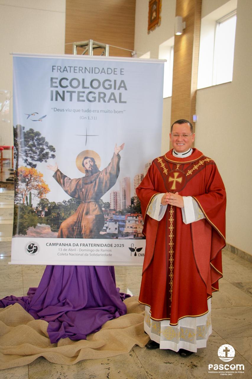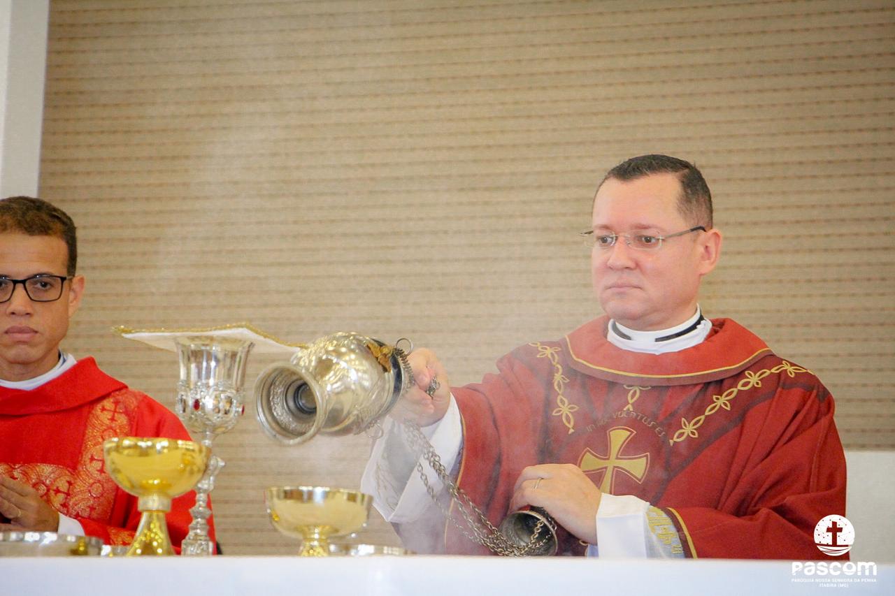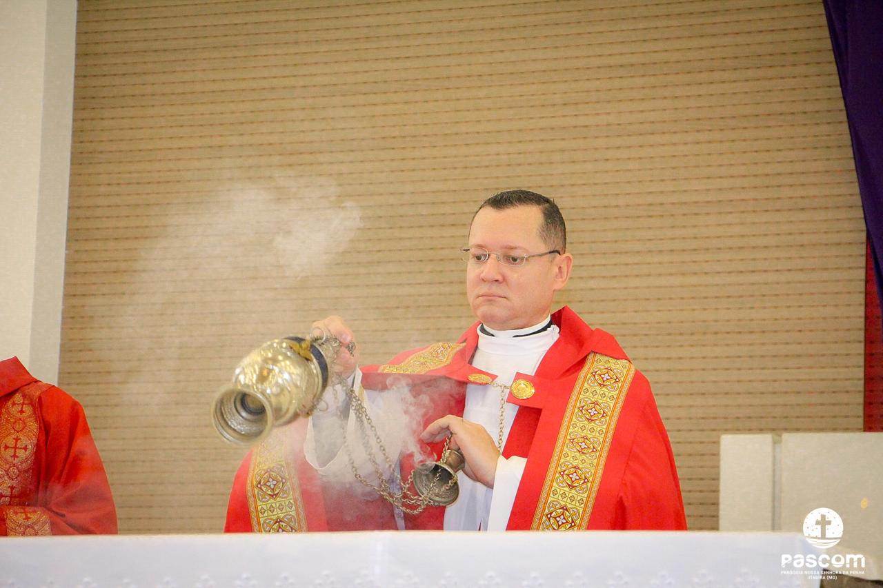 A Paróquia Nossa Senhora da Penha celebrou no último dia 13 de abril, o Domingo de Ramos da Paixão do Senhor. Esta celebração dá início à Semana Santa, onde nos convida a vivenciar com mais fervor o mistério do amor de Deus, através da Paixão, Morte e Ressurreição de Jesus. No Domingo de Ramos, contemplamos a Entrada Triunfal do Senhor em Jerusalém como Rei de Israel, nos chamando a também proclamarmos o senhorio de Cristo em nossa vida. Vários fiéis participaram da procissão e celebração eucarística, levando ramos para serem abençoados.