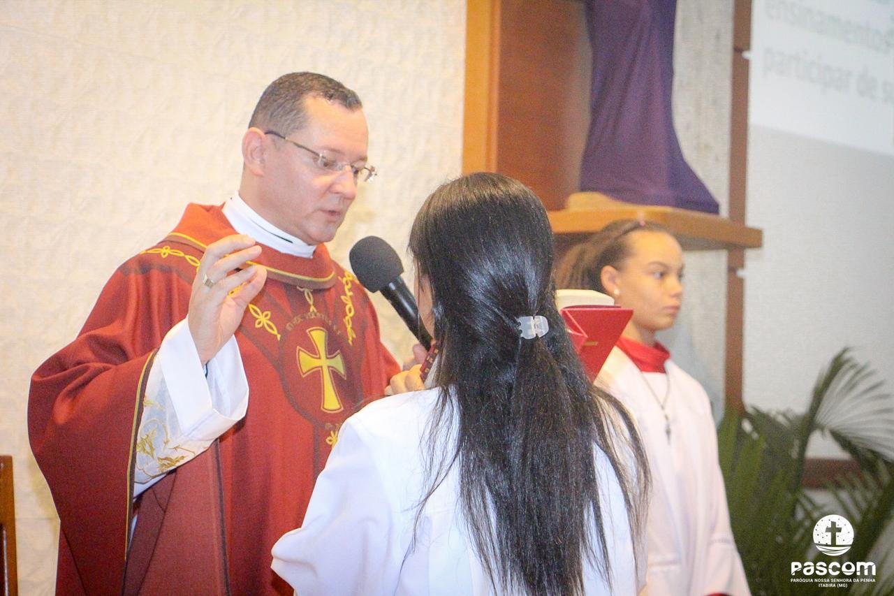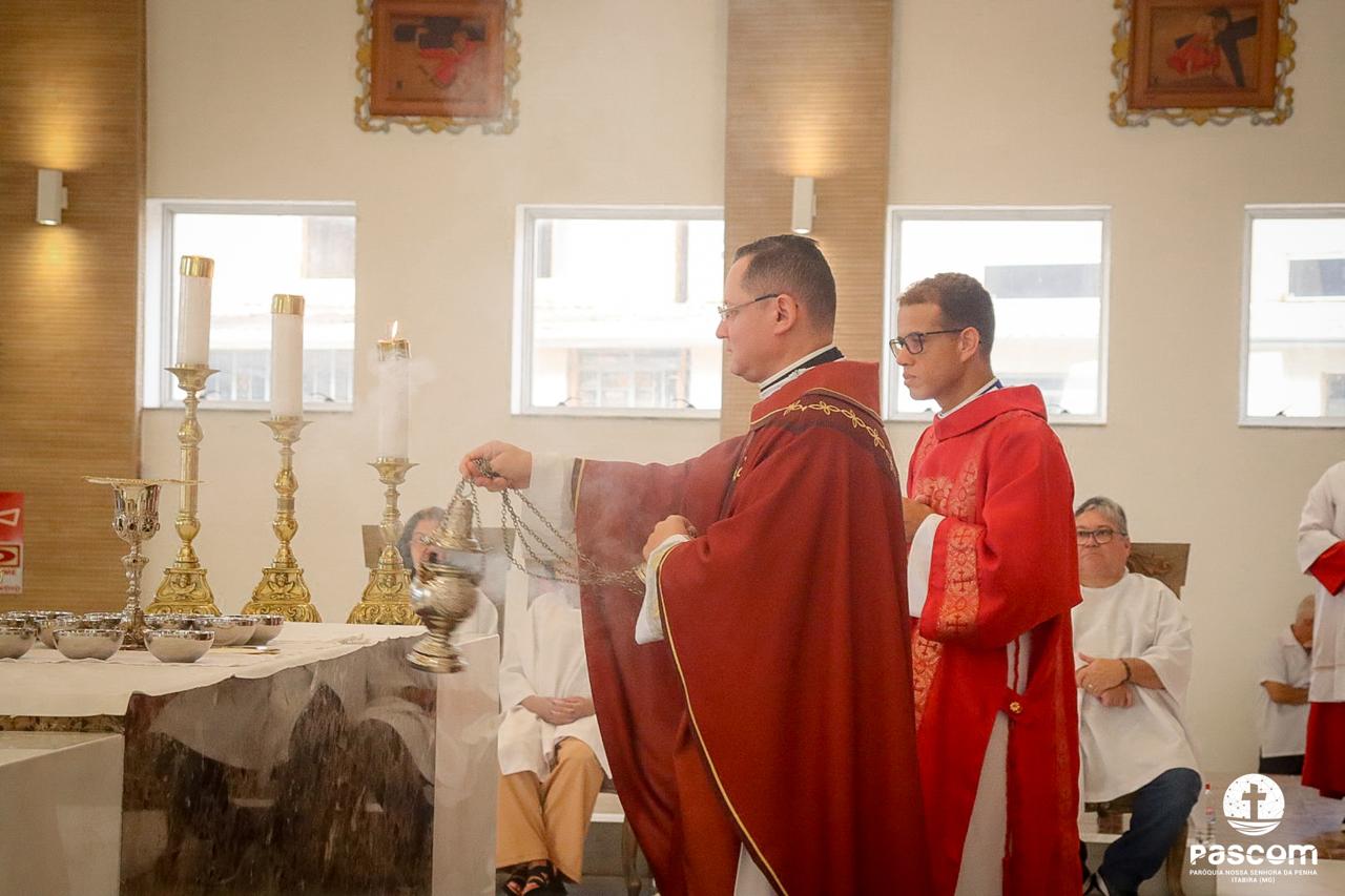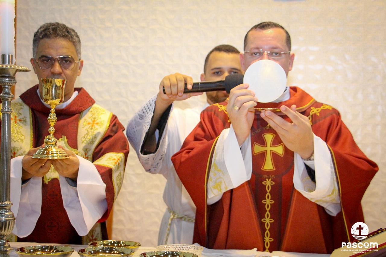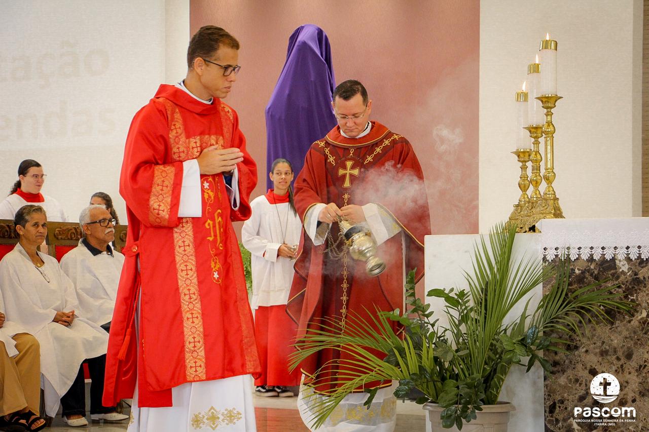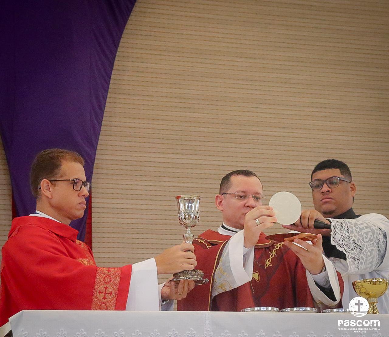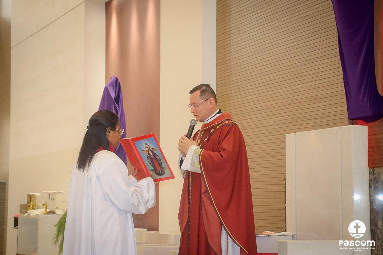 A Paróquia Nossa Senhora da Penha celebrou no último dia 13 de abril, o Domingo de Ramos da Paixão do Senhor. Esta celebração dá início à Semana Santa, onde nos convida a vivenciar com mais fervor o mistério do amor de Deus, através da Paixão, Morte e Ressurreição de Jesus. No Domingo de Ramos, contemplamos a Entrada Triunfal do Senhor em Jerusalém como Rei de Israel, nos chamando a também proclamarmos o senhorio de Cristo em nossa vida. Vários fiéis participaram da procissão e celebração eucarística, levando ramos para serem abençoados.