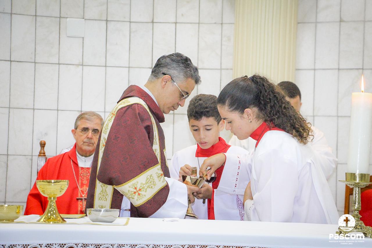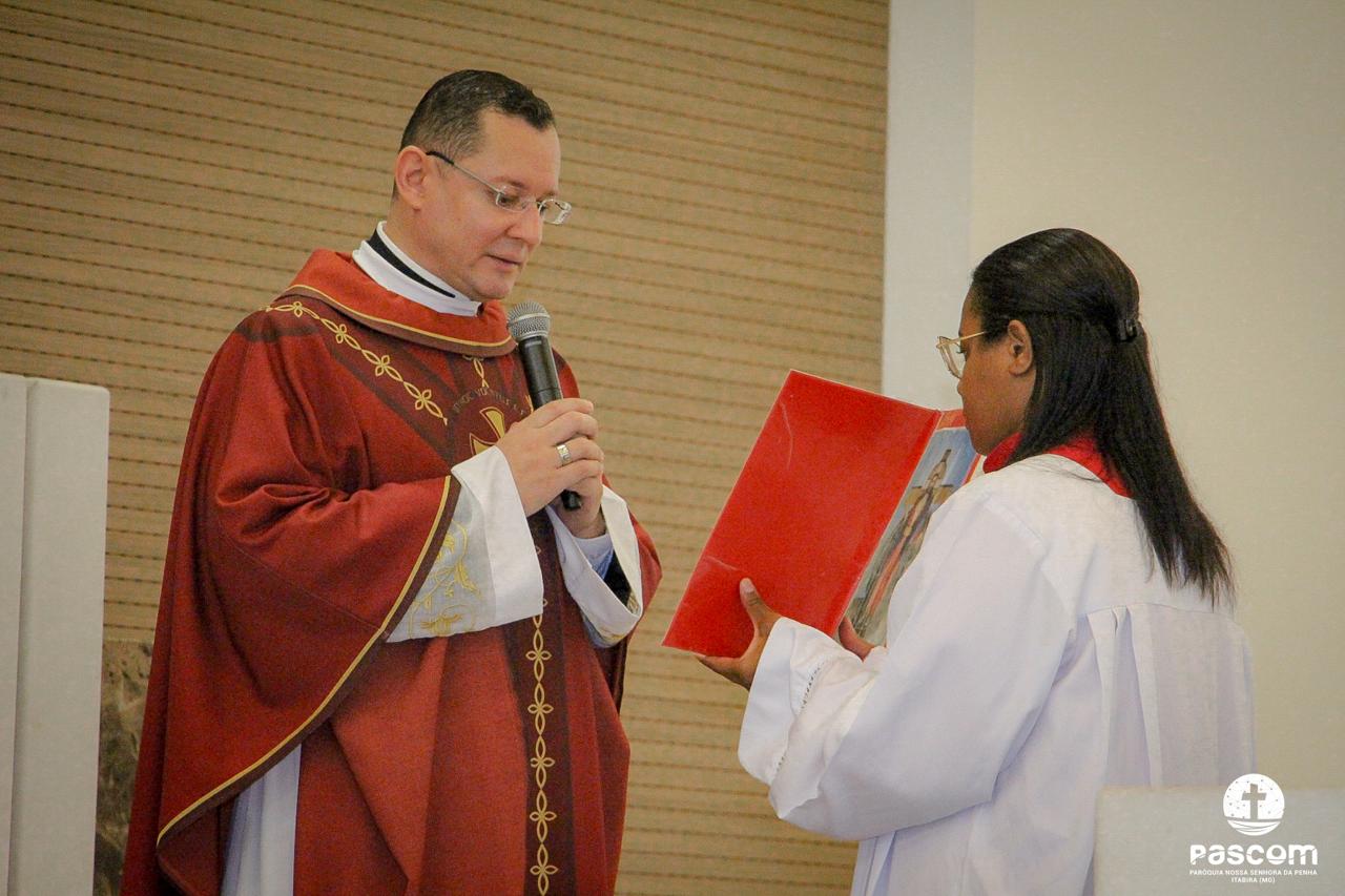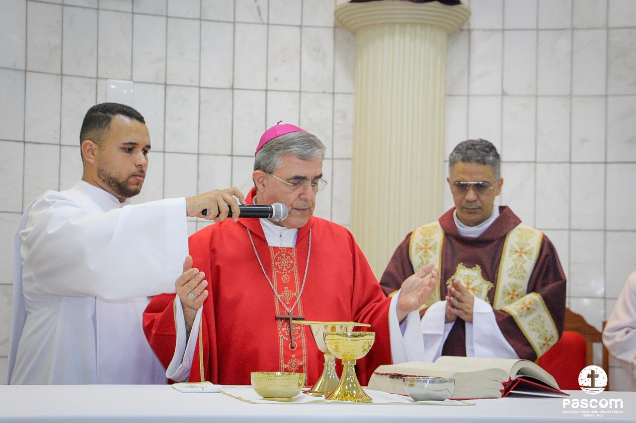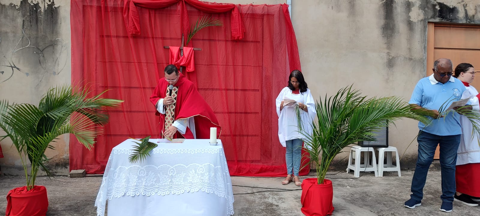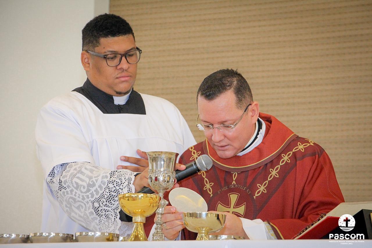 A Paróquia Nossa Senhora da Penha celebrou no último dia 13 de abril, o Domingo de Ramos da Paixão do Senhor. Esta celebração dá início à Semana Santa, onde nos convida a vivenciar com mais fervor o mistério do amor de Deus, através da Paixão, Morte e Ressurreição de Jesus. No Domingo de Ramos, contemplamos a Entrada Triunfal do Senhor em Jerusalém como Rei de Israel, nos chamando a também proclamarmos o senhorio de Cristo em nossa vida. Vários fiéis participaram da procissão e celebração eucarística, levando ramos para serem abençoados.