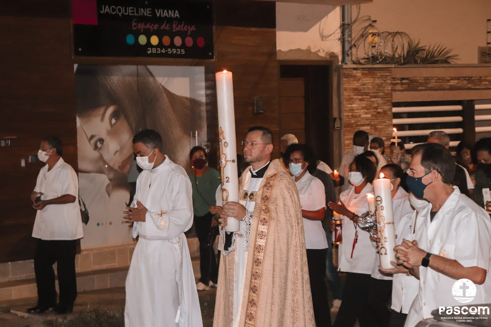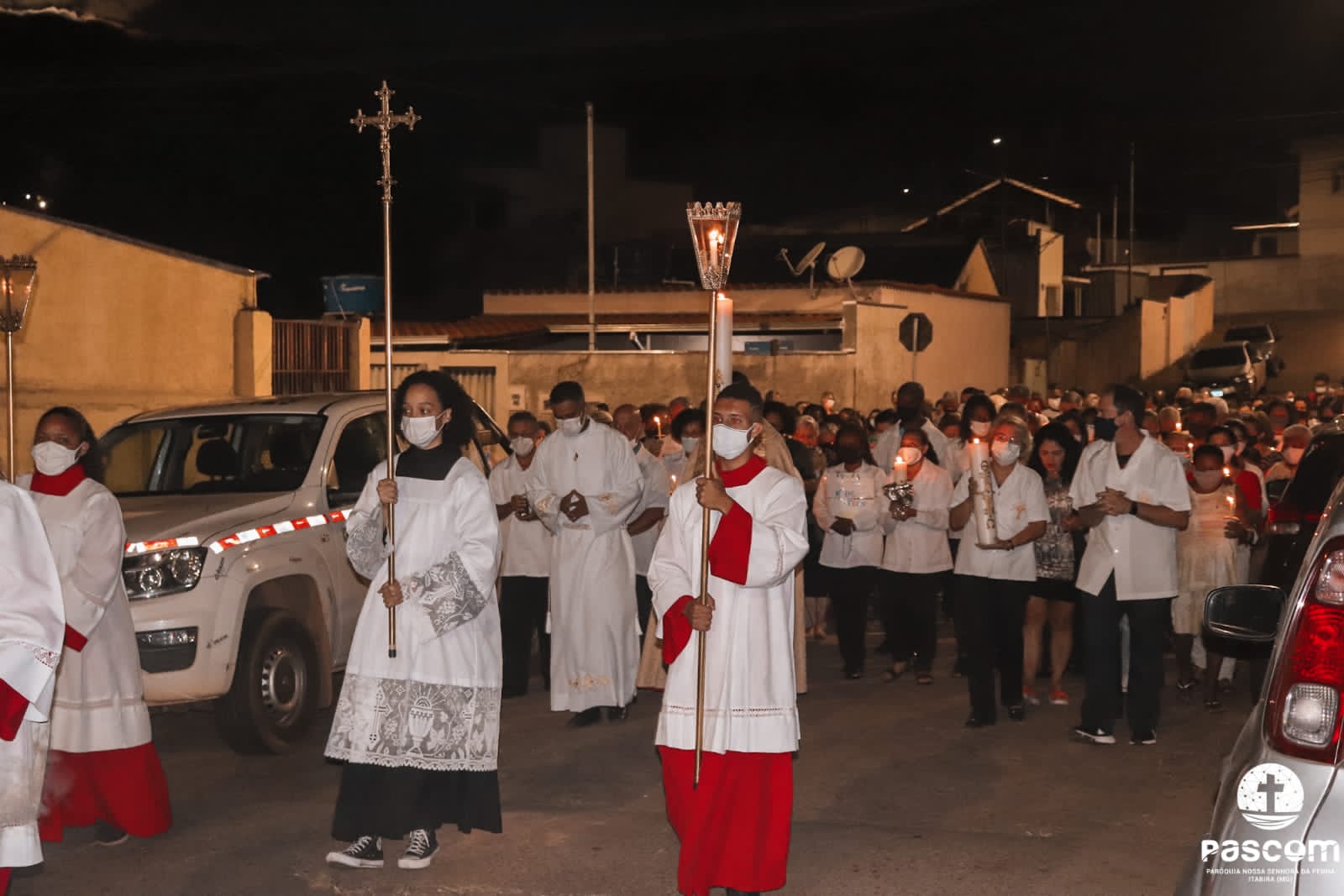 Às 18h toda a comunidade se reuniu para celebrar a Solene Vigília Pascal na comunidade Sagrado Coração de Jesus. Após a bênção do fogo novo e o acendimento do Círio Pascal, todos em procissão seguiram para a igreja e proclamaram a ressurreição do Senhor. Neste mesmo horário, com a comunidade reunida na igreja São Geraldo, após a bênção do fogo novo e o acendimento do círio pascal, todos seguiram em procissão para o Santuário São Geraldo, onde a páscoa do Senhor foi solenemente proclamada. Devido ao cenário pandêmico e a interrupção da caminhada catequética em alguns momentos, não houve na vigília pascal a administração dos sacramentos dos catecúmenos. Estes se prepararam para receberem os sacramentos na vigília pascal de 2023, tendo em vista que iniciaram a caminhada catecumenal neste ano.