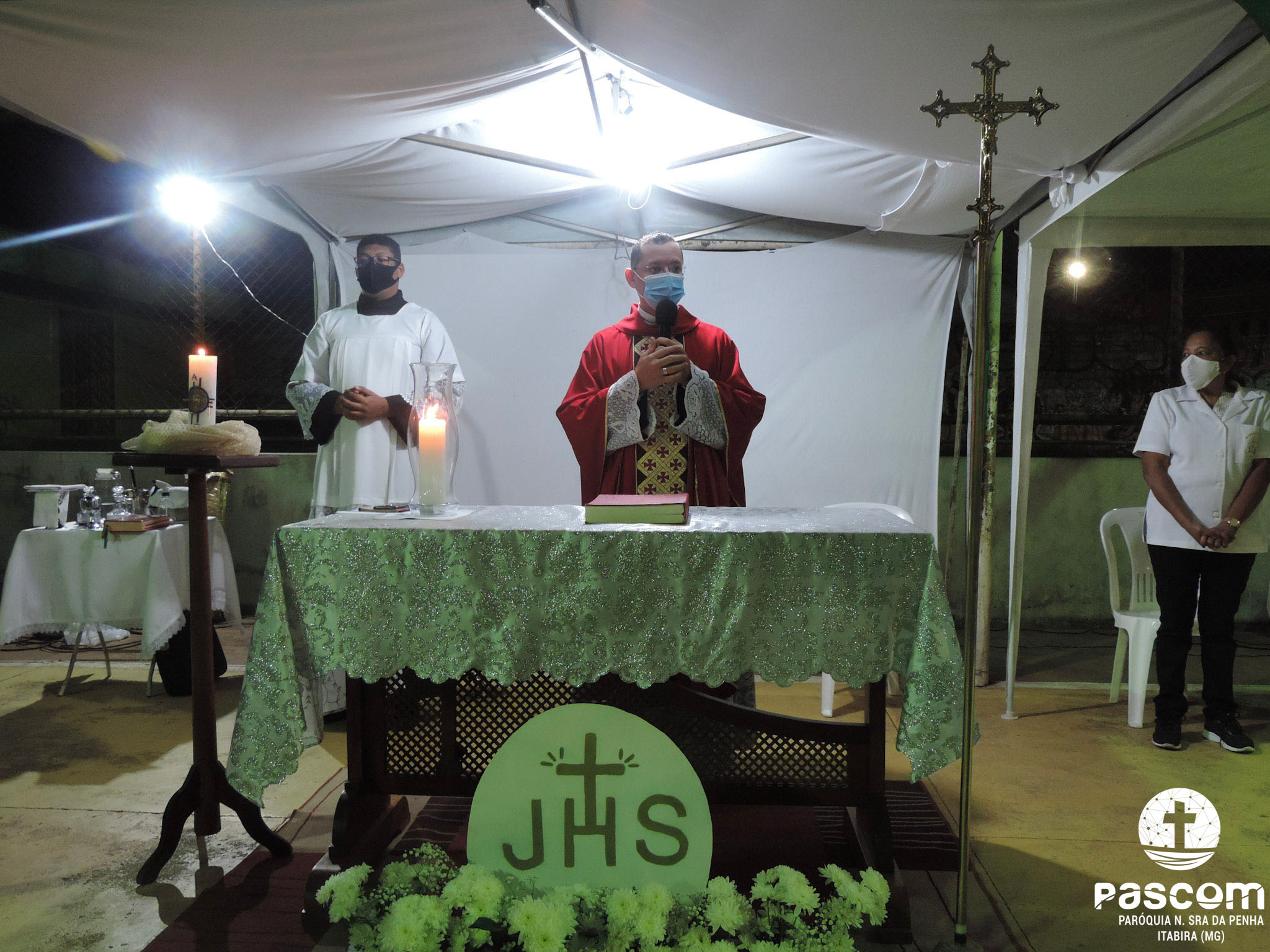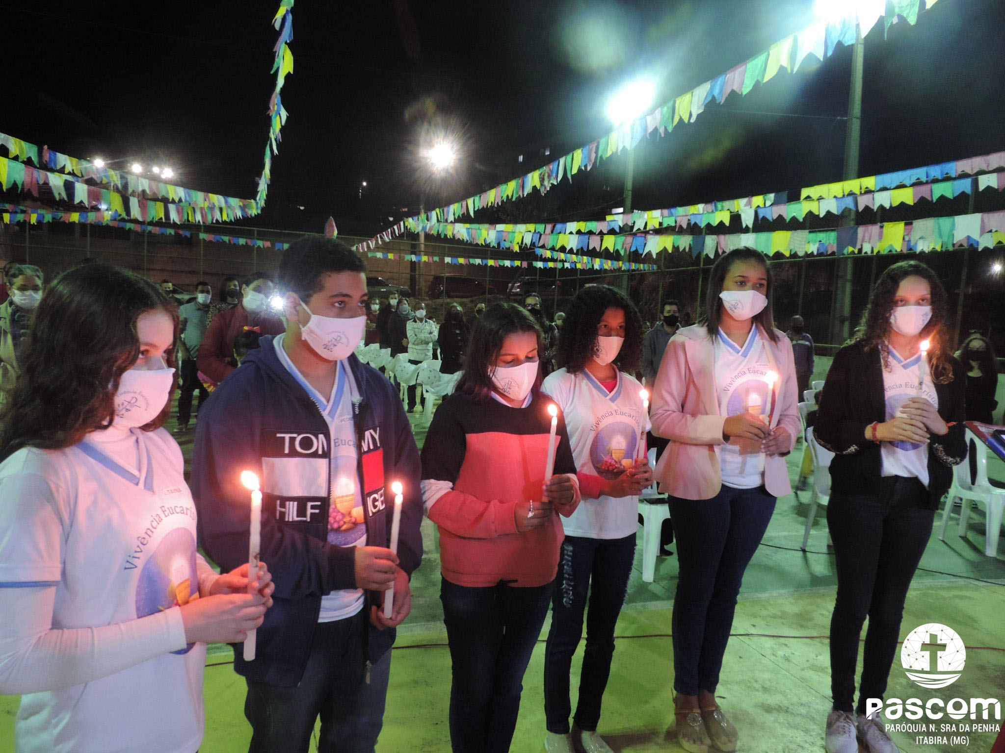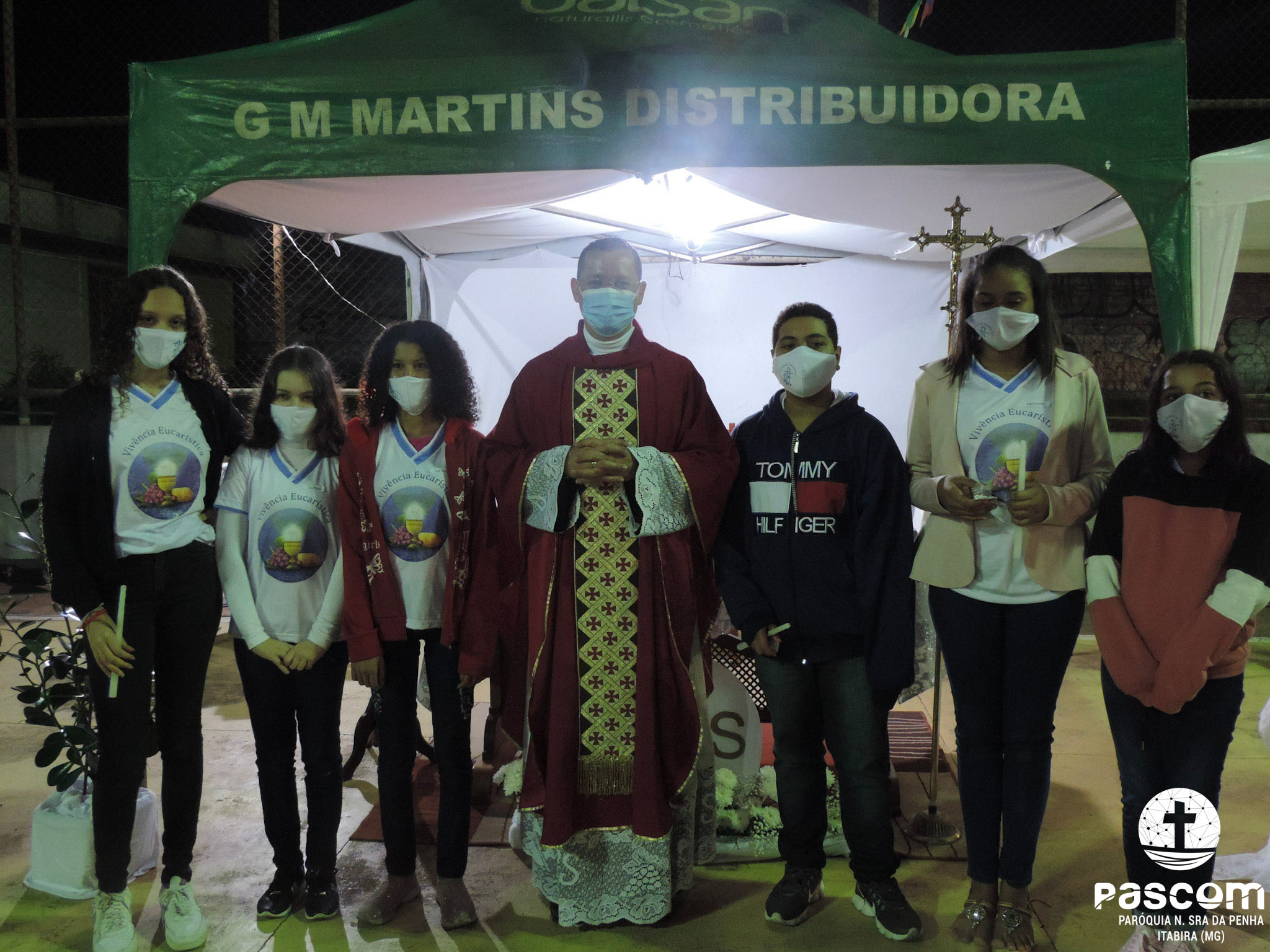 Em seguida, aconteceu a Missa Festiva em honra a São Cristóvão na Quadra de esportes do bairro São Marcos, podendo assim acolher um maior número de pessoas, mas respeitando todas medidas sanitárias. Nesta Missa, 6 crianças receberam a Primeira Eucaristia. Foi um momento de ação de graças marcado por grande júbilo e louvor, destacando a devoção a São Cristóvão.