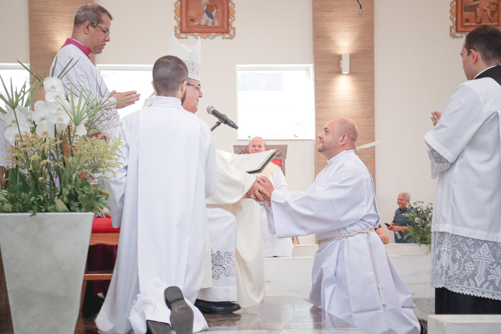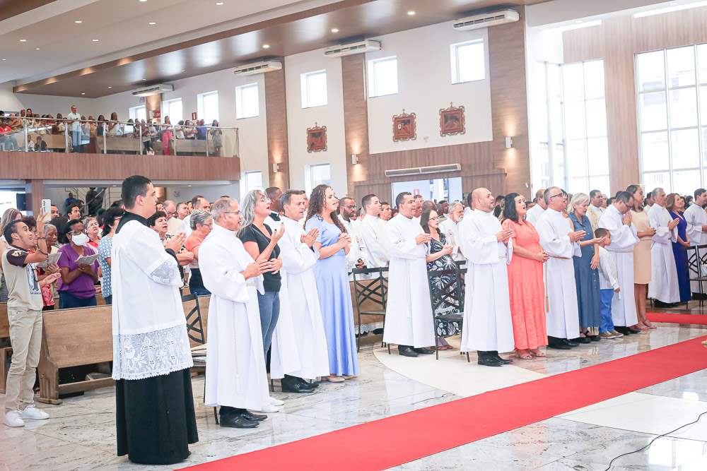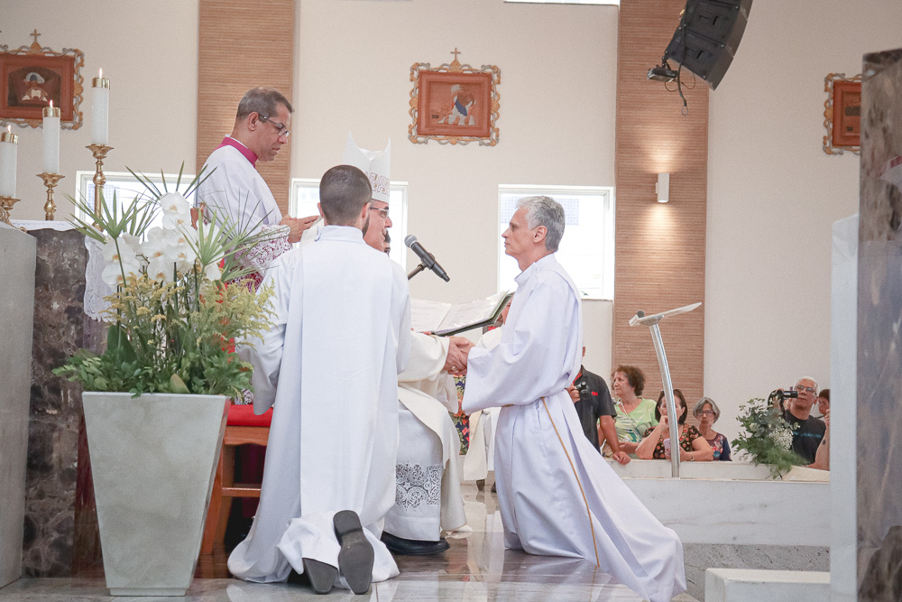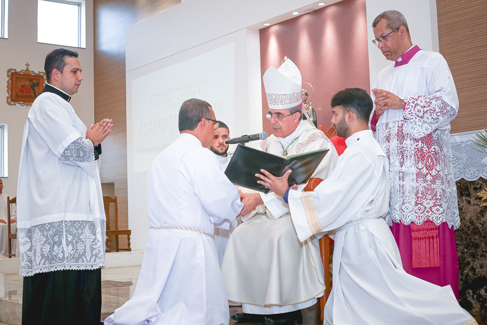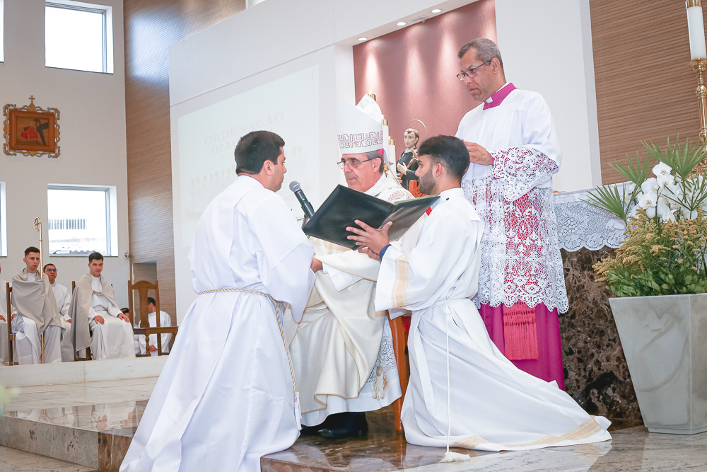 Após o rito de ordenação, o Bispo deu continuidade a Santa Missa, agora com a participação mais ativa dos novos diáconos. Ao final, foi lida a Ata de Ordenação que foi assinada pelos 16 novos diáconos.