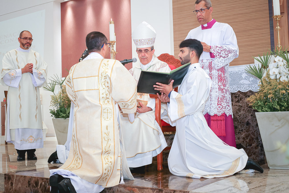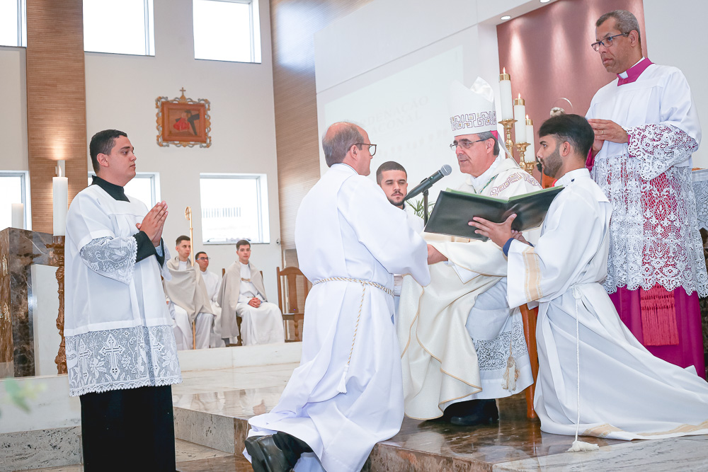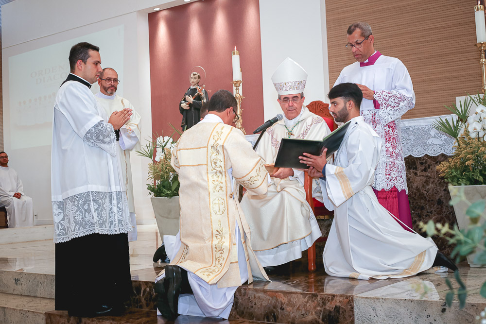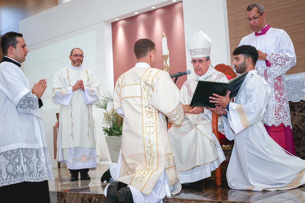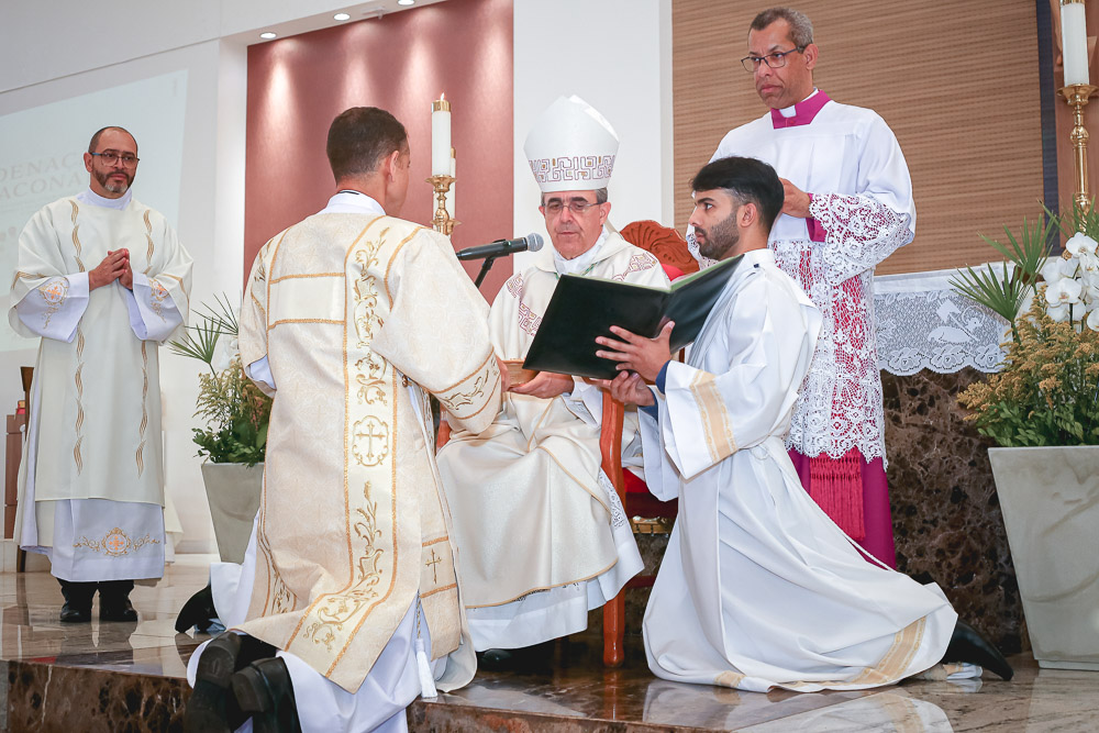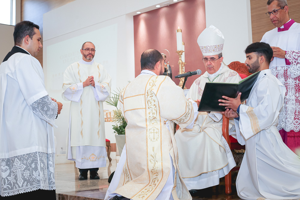 Após o rito de ordenação, o Bispo deu continuidade a Santa Missa, agora com a participação mais ativa dos novos diáconos. Ao final, foi lida a Ata de Ordenação que foi assinada pelos 16 novos diáconos.