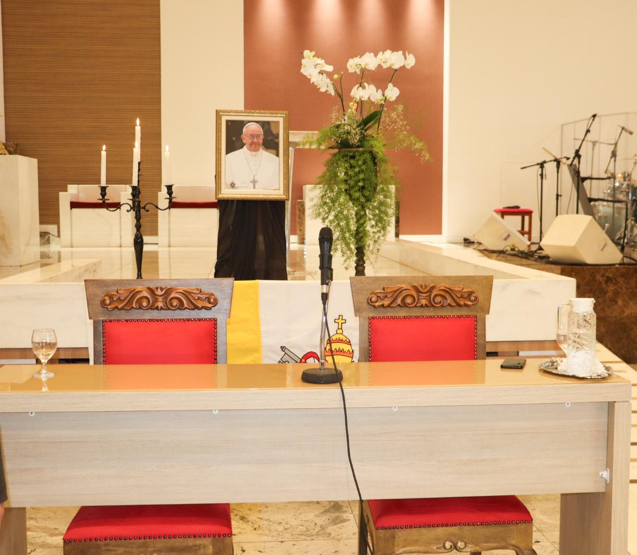 Devido ao falecimento do Santo Padre, o Papa Francisco, ocorrido na manhã da última segunda-feira, 21 de abril de 2025, Dom Marco Aurélio Gubiotti, bispo de Itabira-Coronel Fabriciano, concedeu uma coletiva de imprensa testemunhando o legado deixado pelo Santo Padre para todos nós. A coletiva aconteceu as 11h no Santuário São Geraldo Majela, em Itabira, e foi acompanhada pelo assessor diocesano de comunicação, Pe. Ueliton Neves da Silva. Na oportunidade Dom Marco Aurélio partilhou a experiência que teve com o Santo Padre em três momentos distintos: na jornada mundial da juventude, no Rio de Janeiro; logo quando foi nomeado bispo, em Roma e por último em 2022, na visita Ad Limina Apostolorum. Destacou algumas das muitas características do Papa Francisco: um Papa que buscou servir antes de ser servido; construtor de pontes entre o Evangelho e as angústias da humanidade; olhar sensível e caridoso para com os pobres. Dentre os seus gestos que marcaram nosso modo de viver o Evangelho estão: o lavar os pés dos presos, acolher os migrantes, abraçar os enfermos, expressar sua dor e angústia diante das guerras e outros conflitos e sua preocupação constante com nossa Casa Comum. Ele nos ensinou a viver os valores do Evangelho, com coragem. Recordou ainda o primeiro e importante gesto logo no início do seu pontificado e que marcou toda a sua missão: inclinou-se e pediu a oração e a bênção dos fiéis. Dom Marco Aurélio falou ainda com espírito de gratidão do afeto do Papa Francisco para com todos e recordou para com o povo brasileiro.