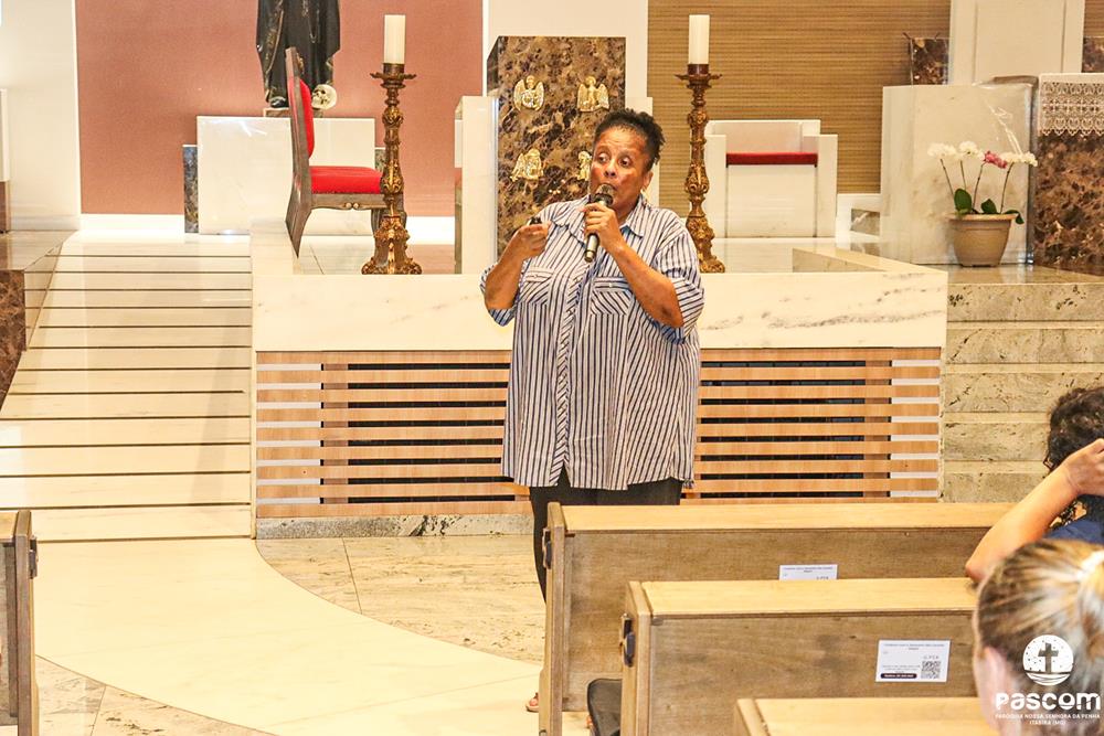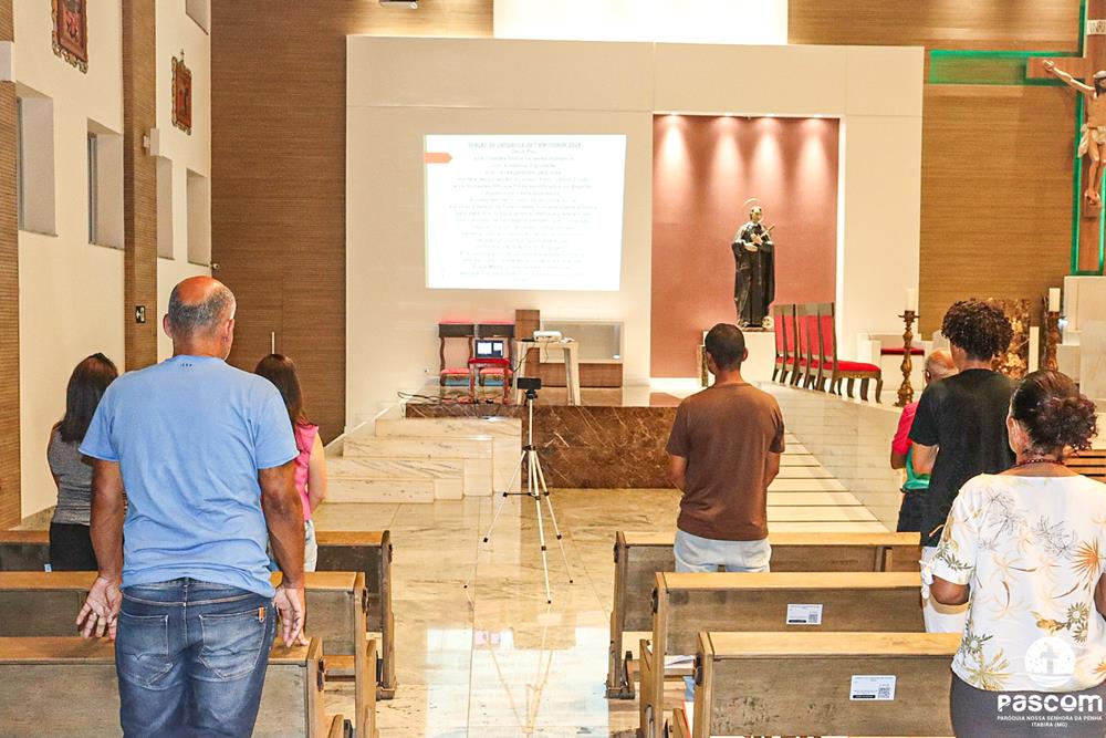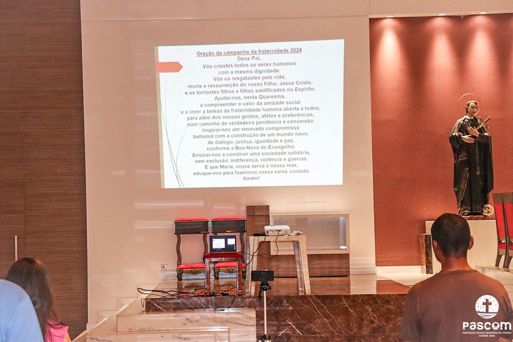 Durante acolhida dos participantes, foi transmitido o hino da Campanha da Fraternidade, que reforçou a importância da amizade social. Em seguida, Nestor, convidou a todos para rezarem a Oração do Espírito Santo e após, a Oração da Campanha da Fraternidade/2024.