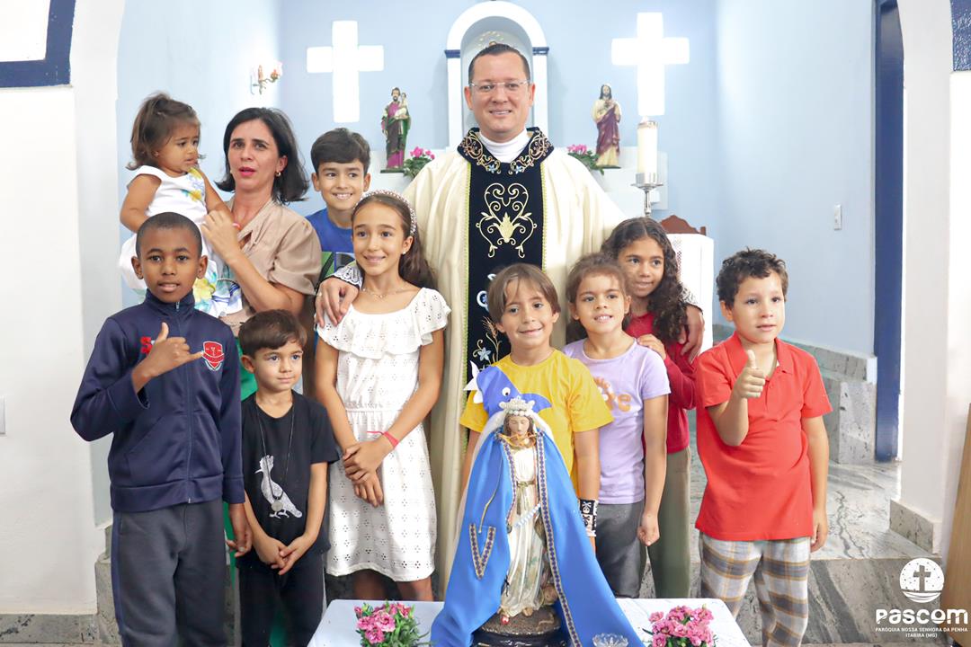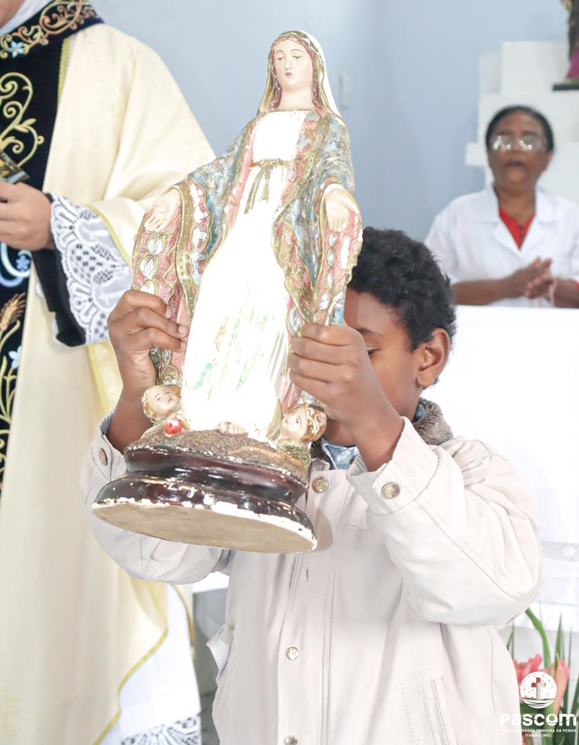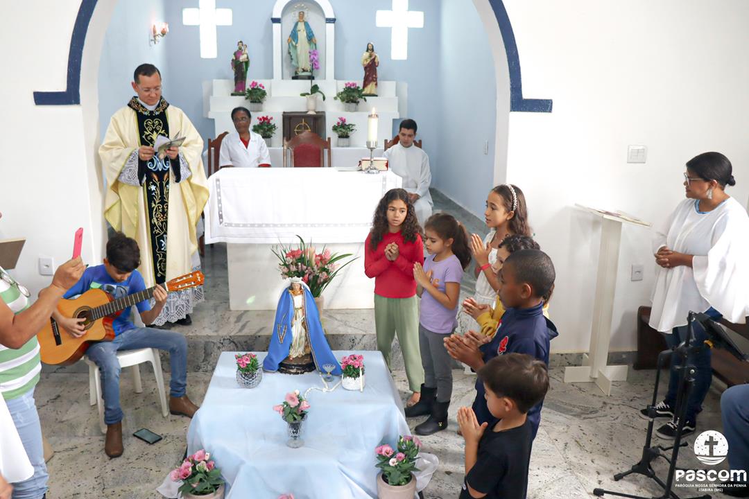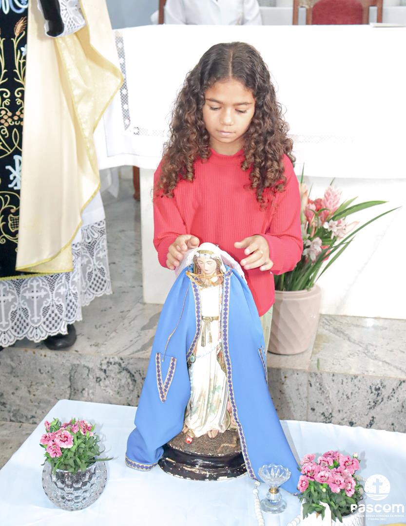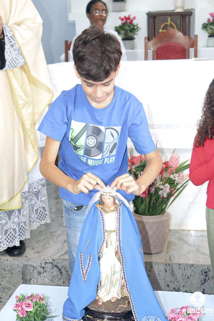 A Santa Missa, presidida pelo Pe. Ueliton Neves, foi celebrada às 10h, com a participação de muitos devotos. Ao final da missa, as crianças fizeram uma bela homenagem a Nossa Senhora das Graças.