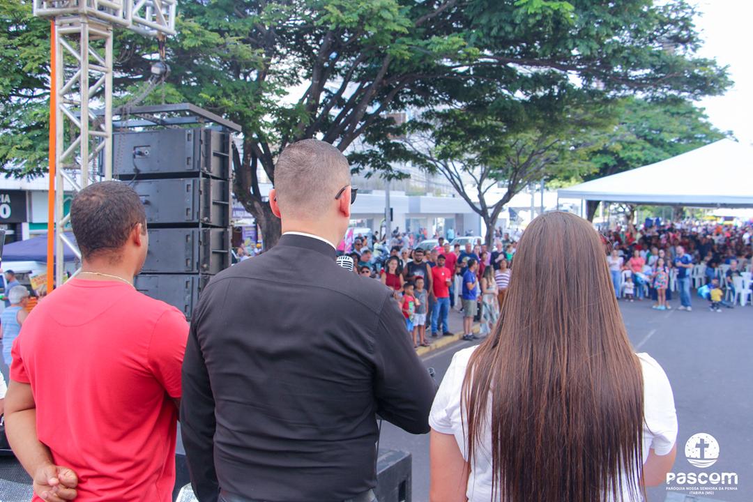 Após a missa, a festa continuou com barraquinhas e diversas atrações musicais na Avenida Mauro Ribeiro, com destaque para a presença confirmada da banda Acústico e Plugado, que animou os participantes com um repertório vibrante. A festa contou com a animação do locutor Daniel Sena, que conduziu com alegria os diversos momentos do evento.