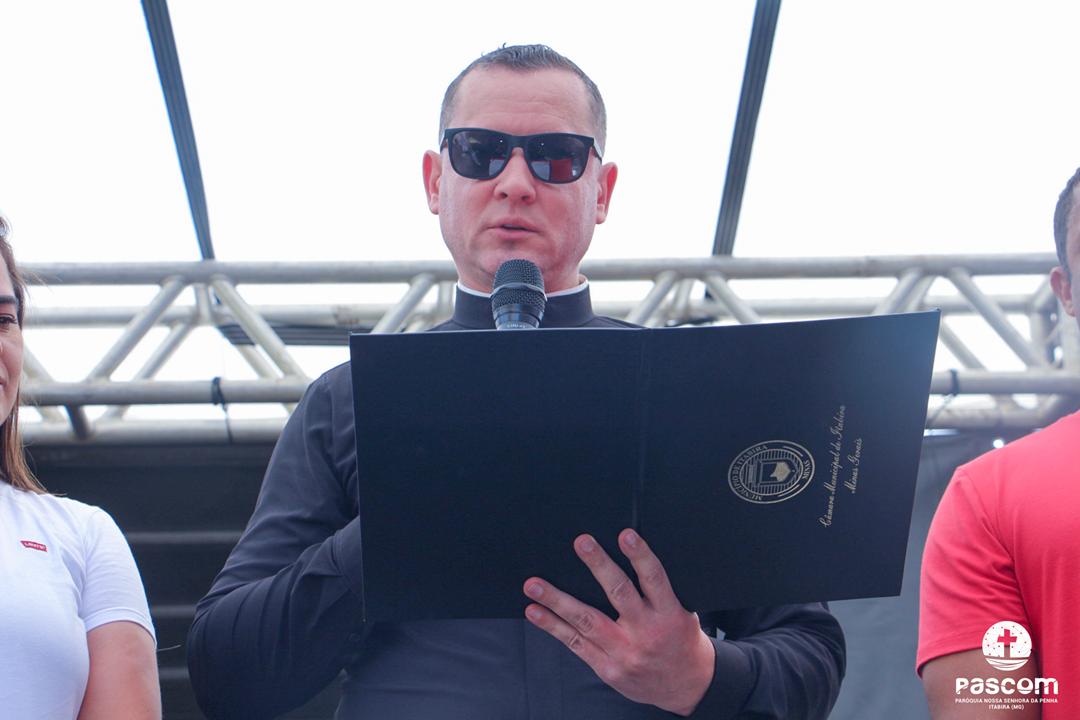 A homenagem expressa o reconhecimento e a gratidão da cidade de Itabira ao Padre Ueliton, pelo seu incansável compromisso com a evangelização, o cuidado pastoral e a promoção de iniciativas que fortalecem a vida comunitária e espiritual.