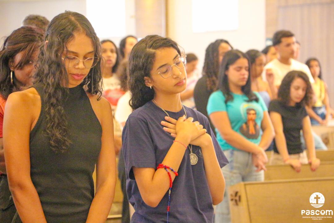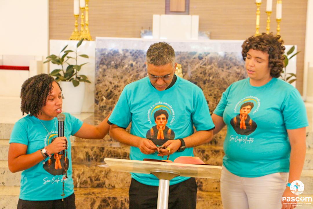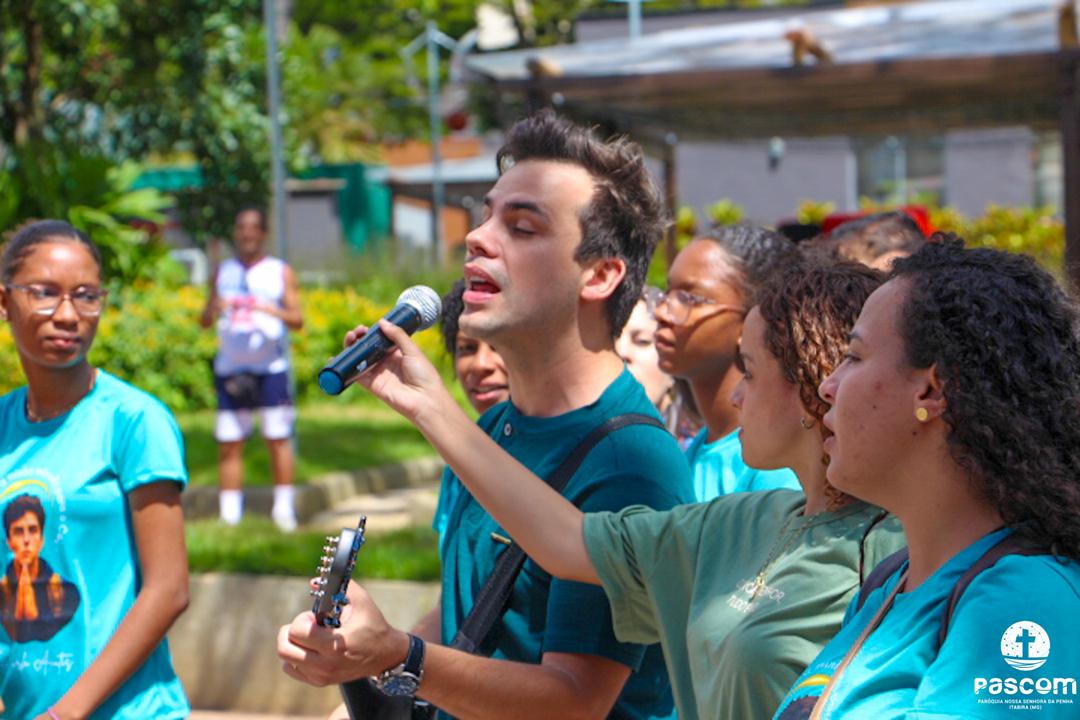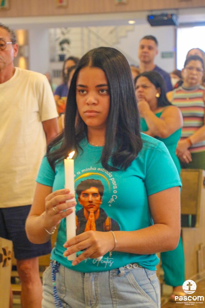 Pe. Ueliton, se dirigindo aos jovens, os encorajou a não terem medo de se entregarem a Deus. E os exortou a não desperdiçarem a vida, mas a orientá-la para cima e a fazer dela uma obra-prima. São Carlo Acutis os encoraja: “Não eu, mas Deus”.