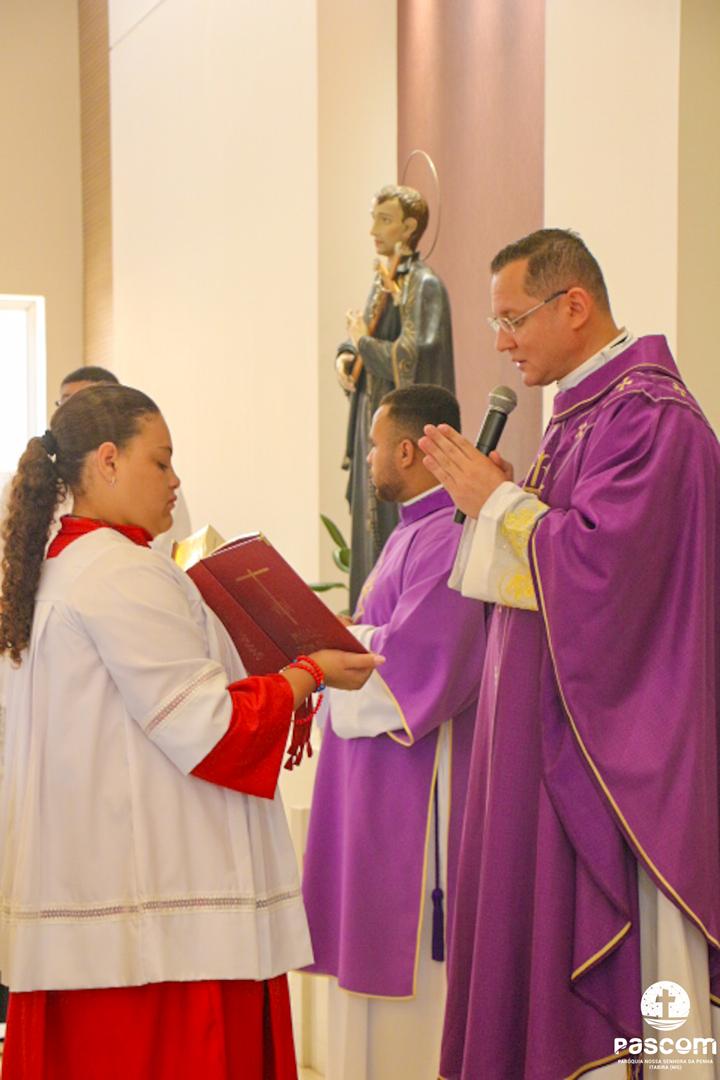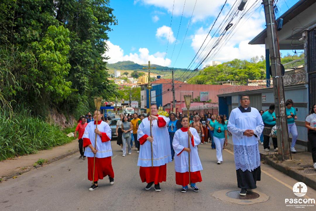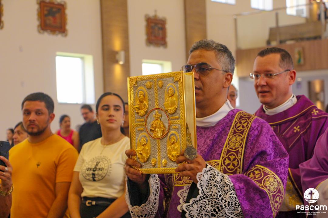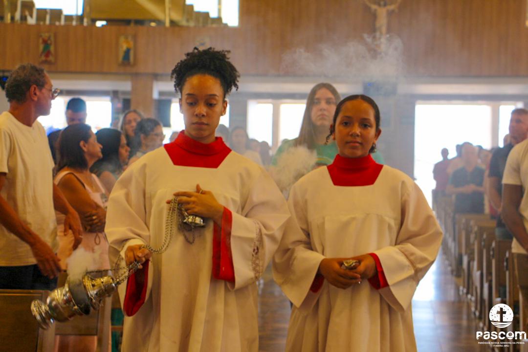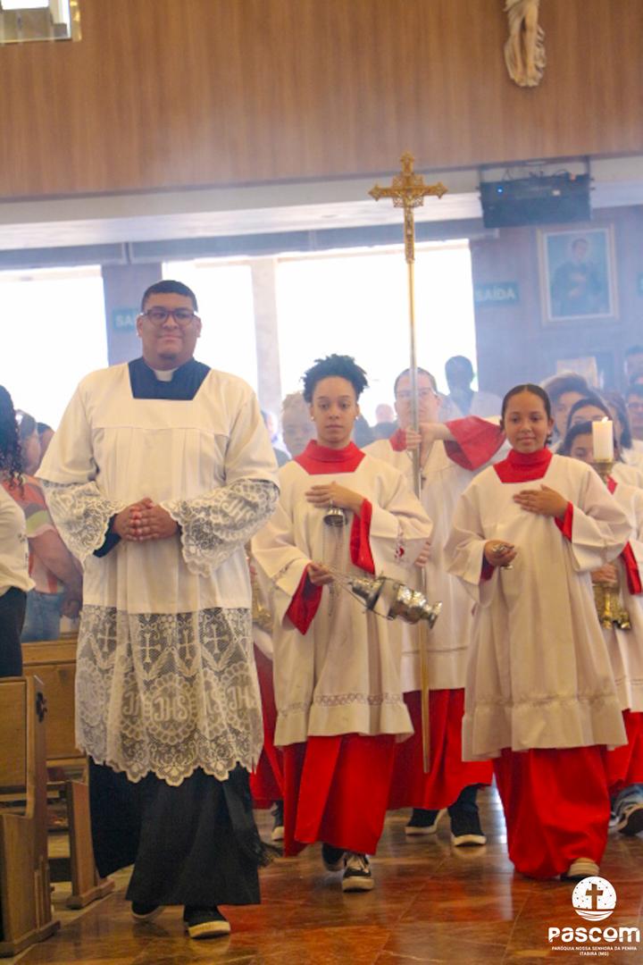 Com a presença do missionário da Obra Evangelizar, Danilo Dyba, os jovens iniciaram o encontro com um momento de louvor e, em procissão, conduziram a relíquia de São Carlo Acutis para o Santuário, onde foi celebrada a santa missa, presidida pelo Pe. Ueliton Neves, pároco. Ao final, a relíquia foi entronizada no nicho para veneração pública de todos quantos vieram ao Santuário. Em sua homilia, Pe. Ueliton iniciou dizendo “hoje é festa no céu e festa na terra, pois este Santuário, dedicado a um jovem santo, São Geraldo, e que abriga sua relíquia de primeiro grau, exposta para veneração, agora conta com a relíquia de outro jovem santo, São Carlo Acutis, que morrera no Hospital San Gerardo, na Itália”. Seguiu convidando a todos a olharem para São Carlo Acutis, um adolescente dos nossos dias, apaixonado por Jesus e pronto a dar tudo por Ele.