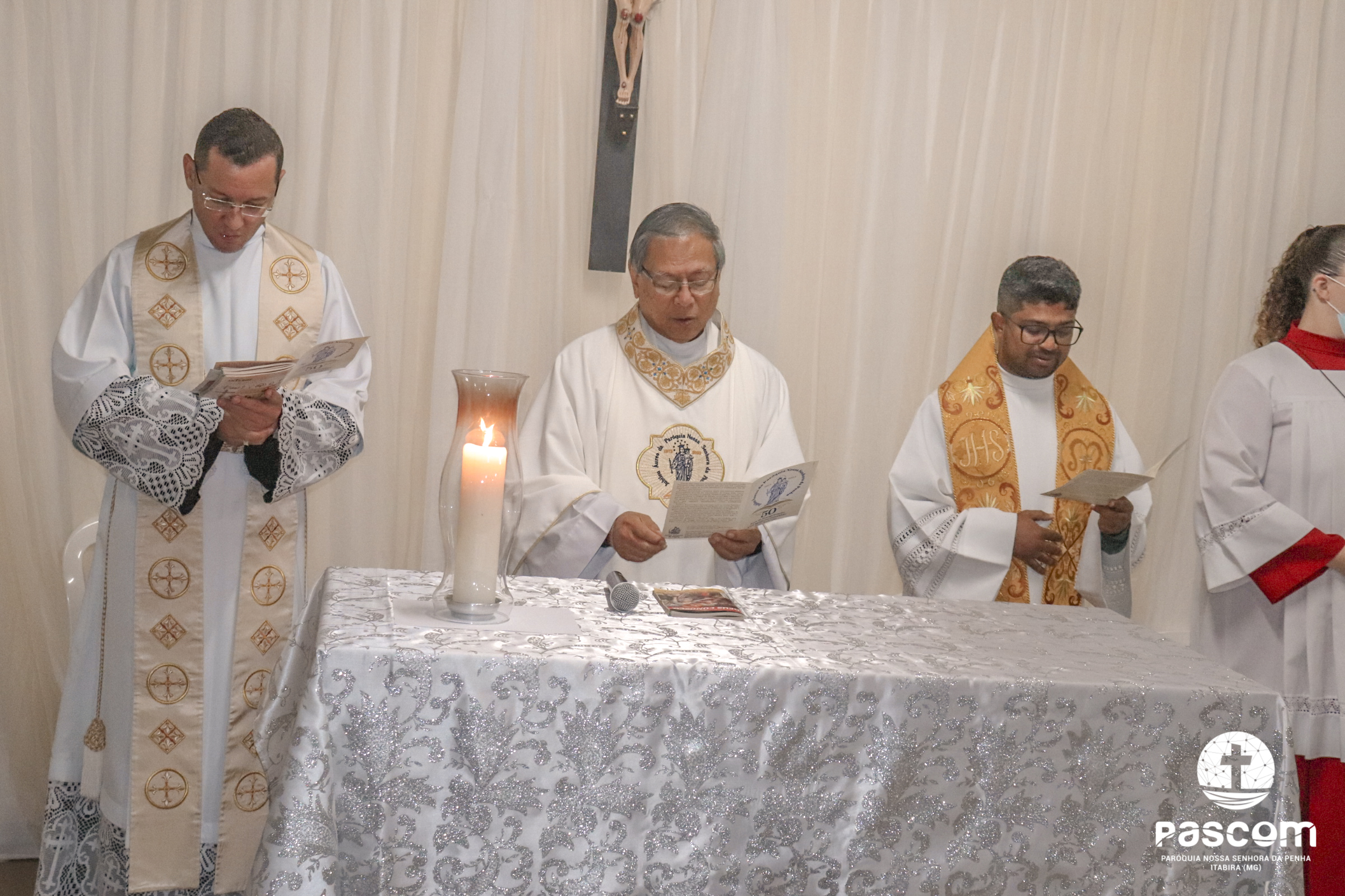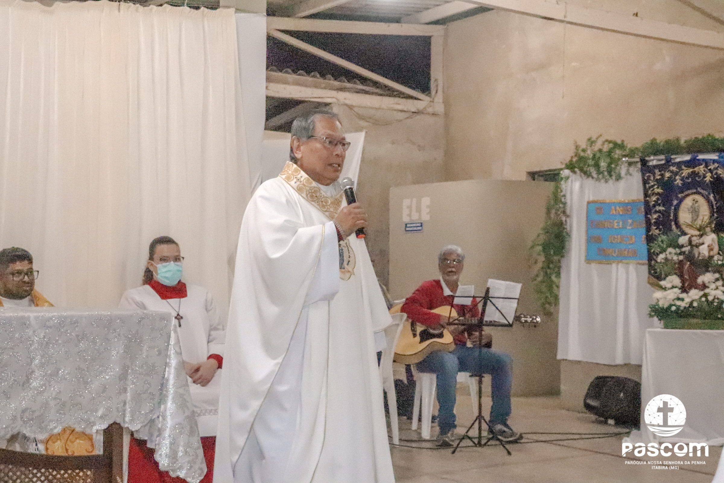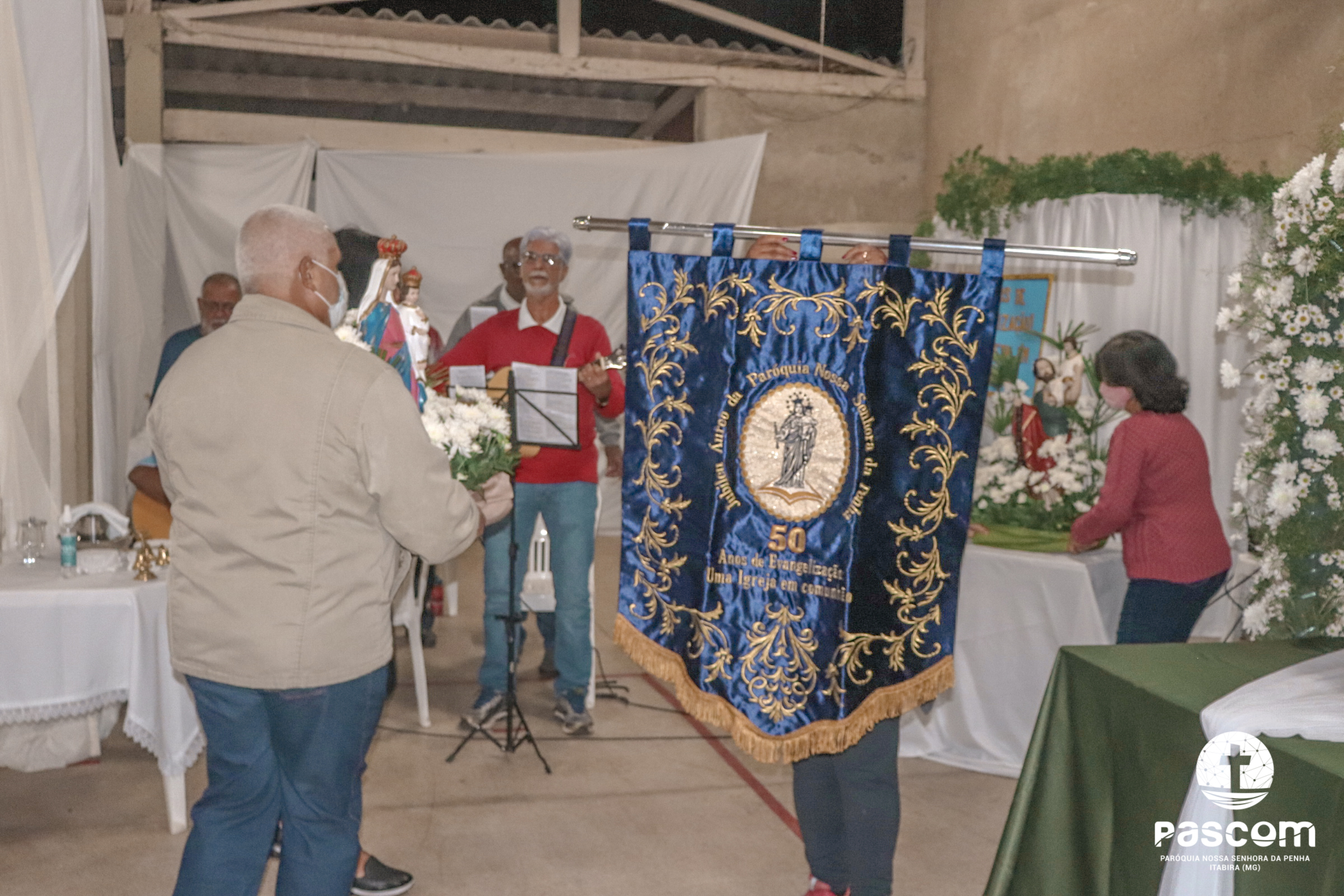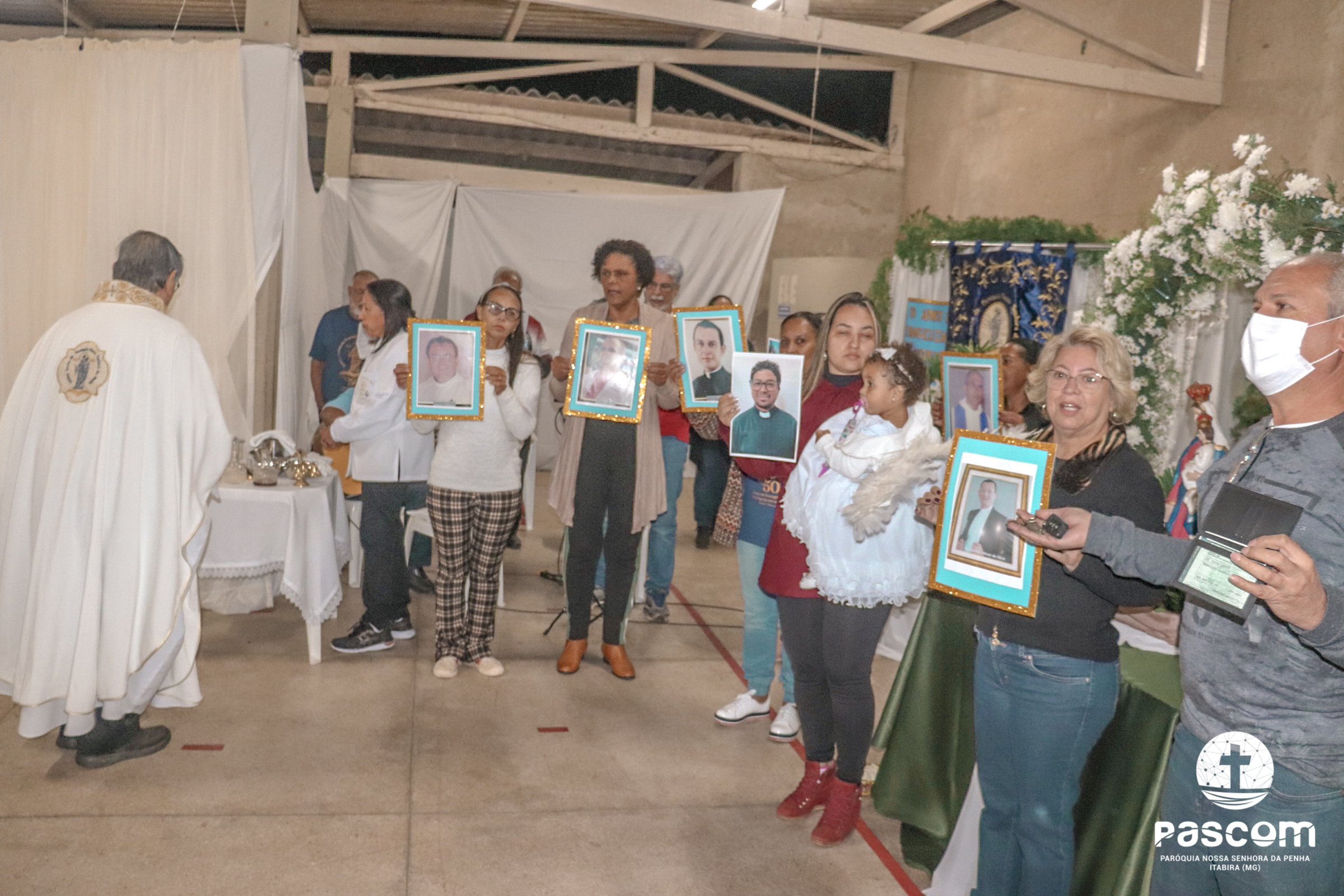 A Santa Missa foi presidida pelo Pe. Daniel Rillela Orpilla, da Congregação do Imaculado Coração de Maria, que presidiu a primeira missa na Comunidade quando a Paróquia era administrada pela referida Congregação e concelebrada pelos padres Ueliton Neves, pároco, e Edson Vander, vigário paroquial.  A celebração contou com a presença de muitos fiéis representando as comunidades e pastorais existentes na Paróquia. Na ocasião se fez memória da caminhada missionária e evangelizadora da comunidade e, por estarmos no mês dedicado a Nossa Senhora, a catequese realizou uma coroação a Mãe de Deus e Nossa, venerada como a Virgem da Penha.