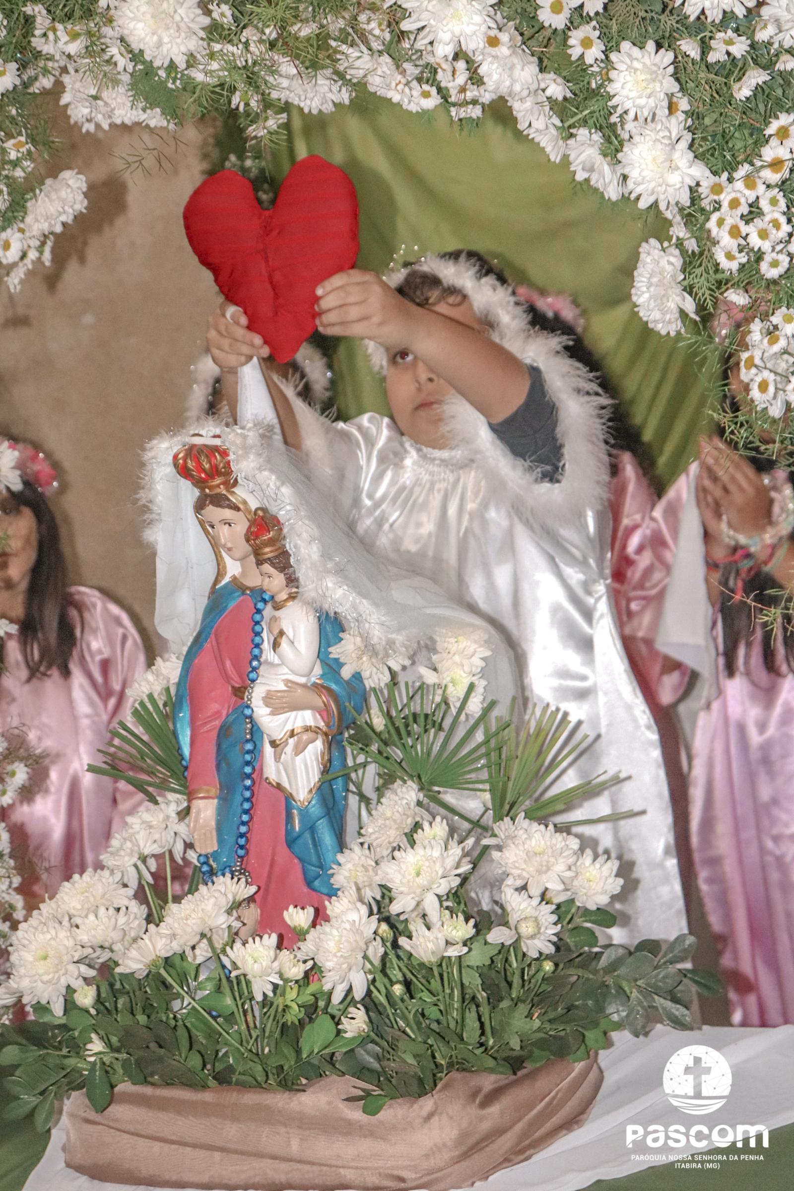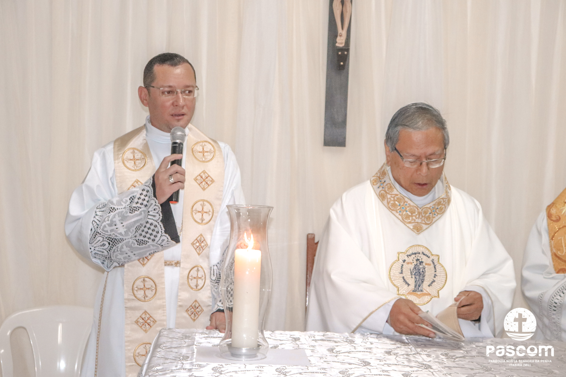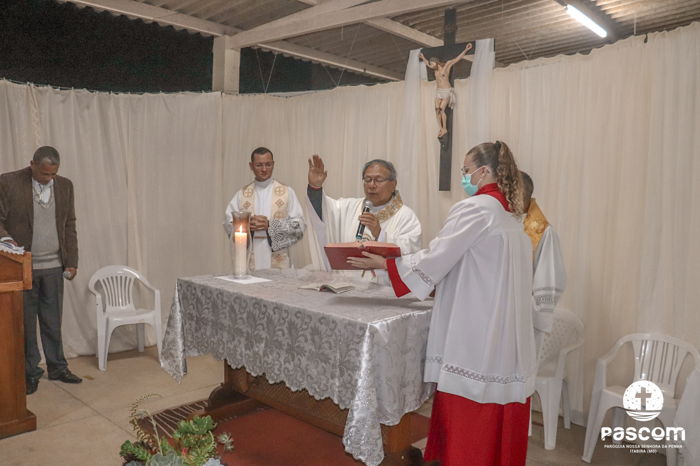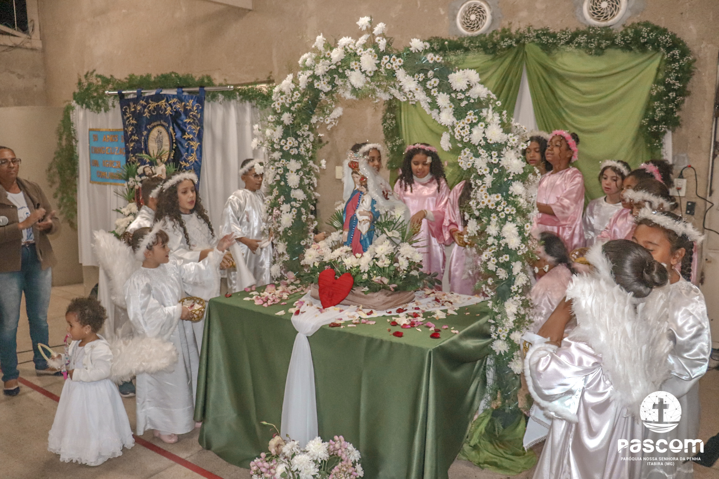A Santa Missa foi presidida pelo Pe. Daniel Rillela Orpilla, da Congregação do Imaculado Coração de Maria, que presidiu a primeira missa na Comunidade quando a Paróquia era administrada pela referida Congregação e concelebrada pelos padres Ueliton Neves, pároco, e Edson Vander, vigário paroquial.  A celebração contou com a presença de muitos fiéis representando as comunidades e pastorais existentes na Paróquia. Na ocasião se fez memória da caminhada missionária e evangelizadora da comunidade e, por estarmos no mês dedicado a Nossa Senhora, a catequese realizou uma coroação a Mãe de Deus e Nossa, venerada como a Virgem da Penha.