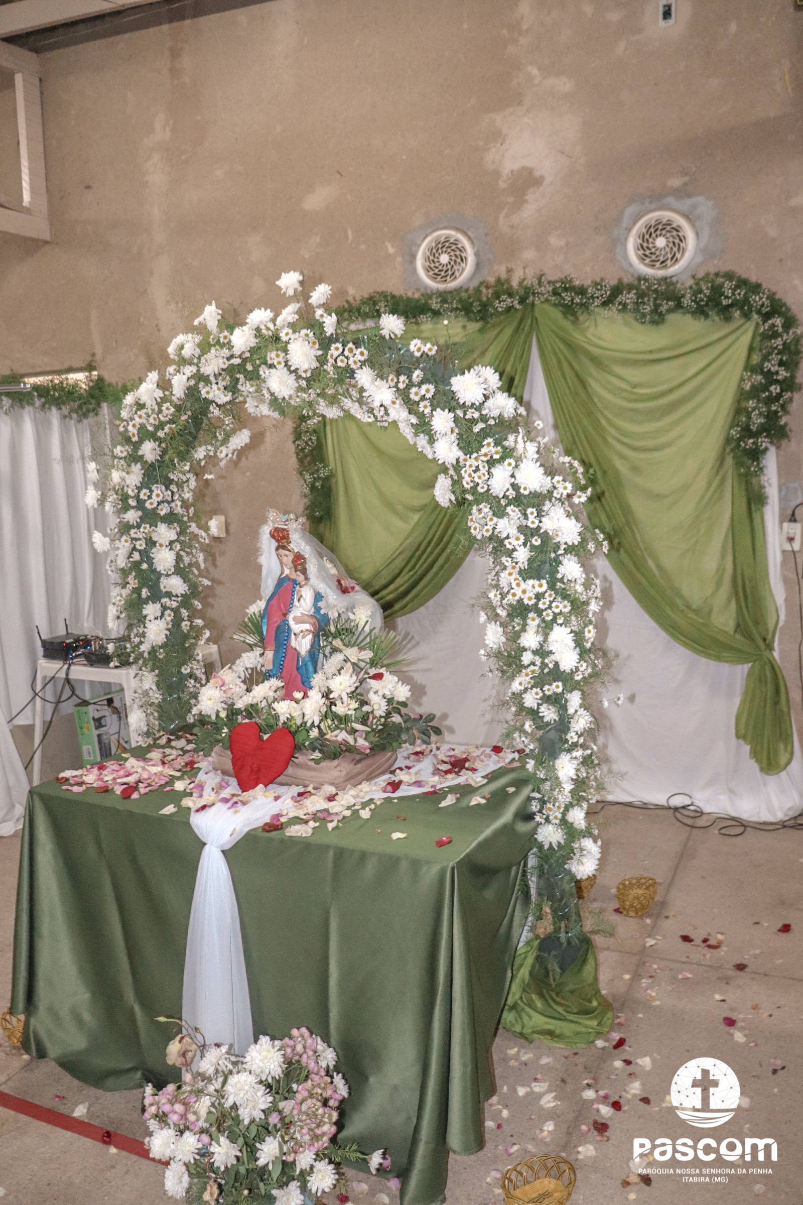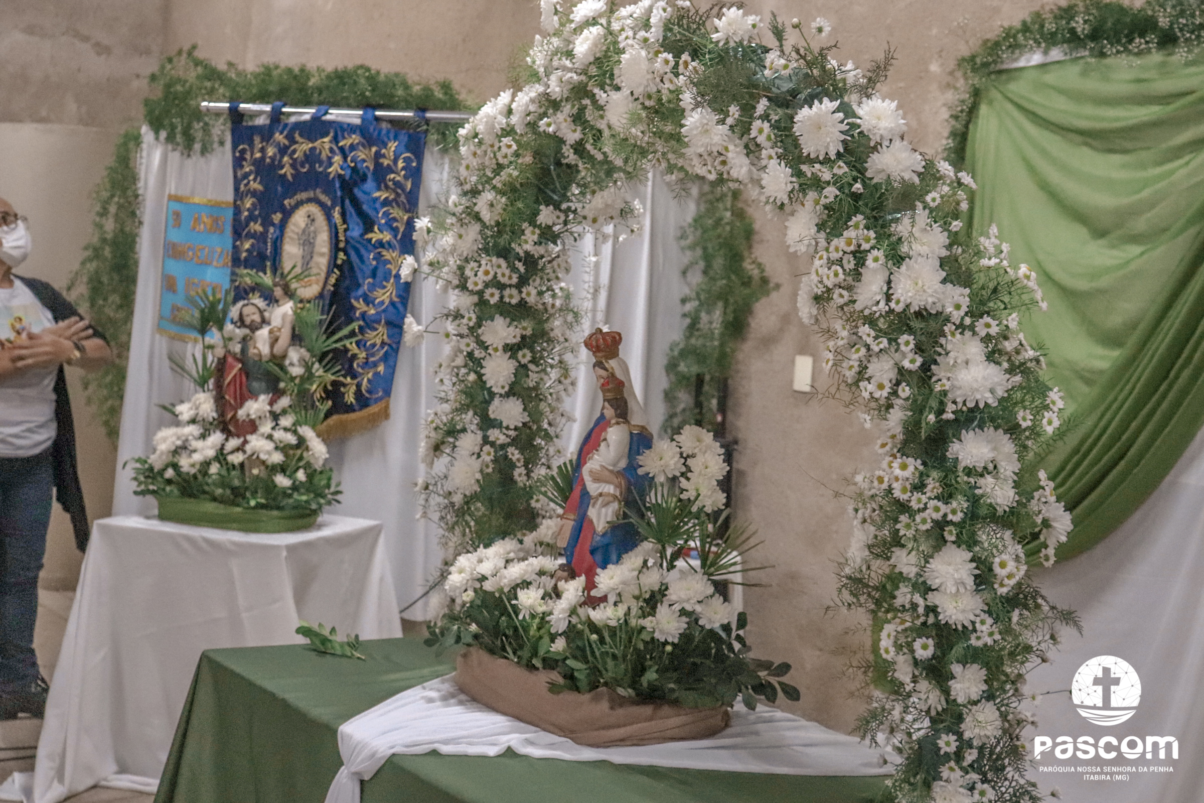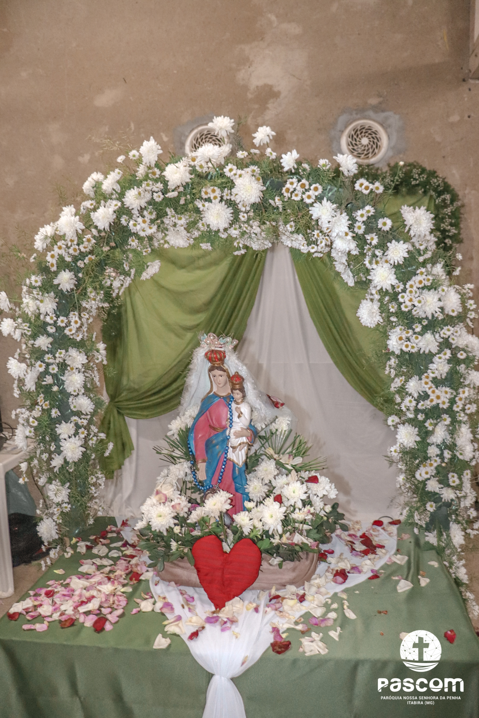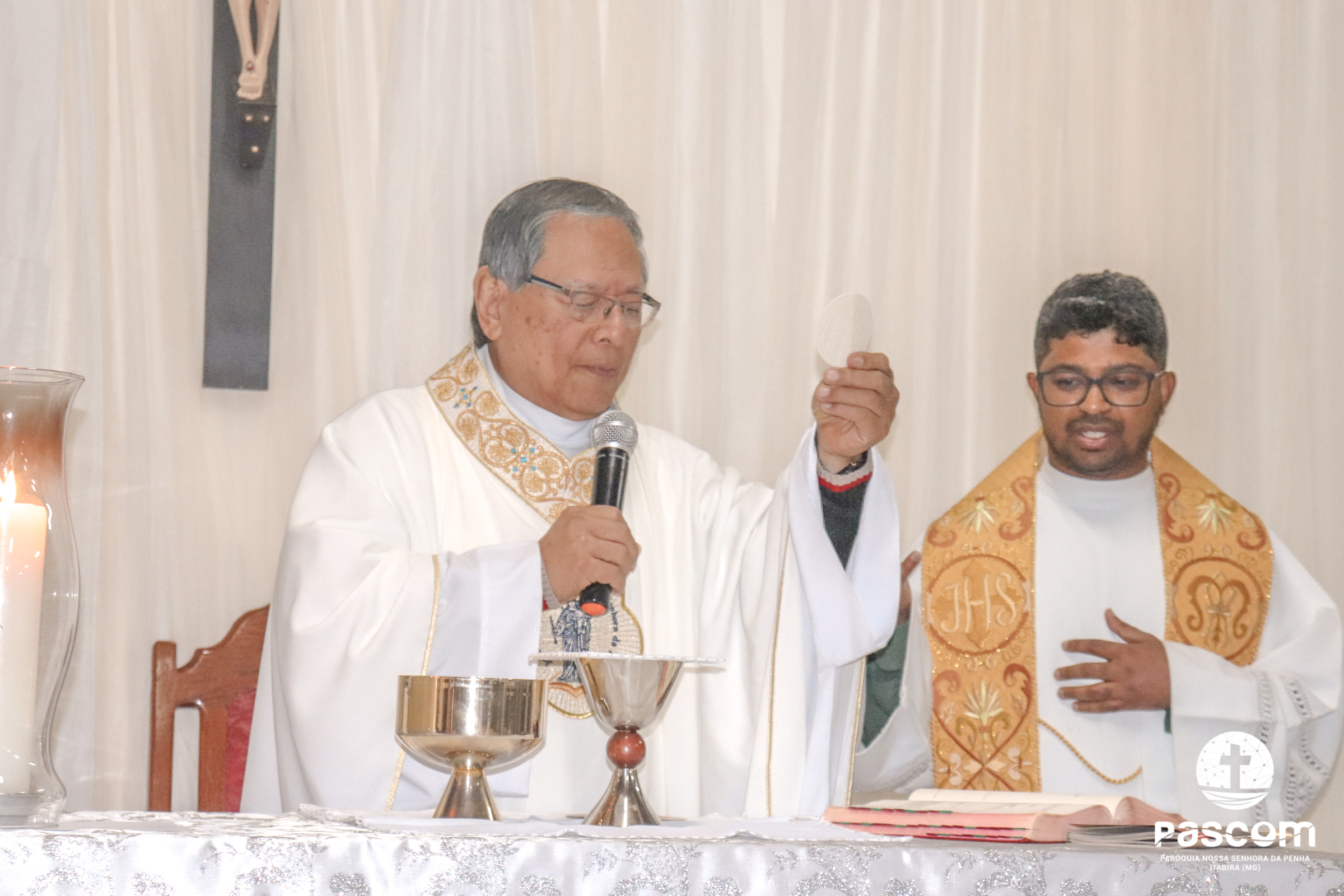 A Santa Missa foi presidida pelo Pe. Daniel Rillela Orpilla, da Congregação do Imaculado Coração de Maria, que presidiu a primeira missa na Comunidade quando a Paróquia era administrada pela referida Congregação e concelebrada pelos padres Ueliton Neves, pároco, e Edson Vander, vigário paroquial.  A celebração contou com a presença de muitos fiéis representando as comunidades e pastorais existentes na Paróquia. Na ocasião se fez memória da caminhada missionária e evangelizadora da comunidade e, por estarmos no mês dedicado a Nossa Senhora, a catequese realizou uma coroação a Mãe de Deus e Nossa, venerada como a Virgem da Penha.