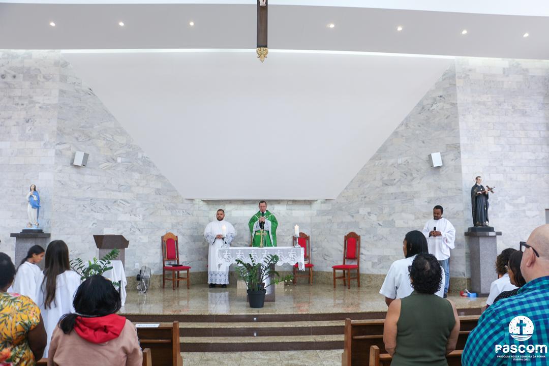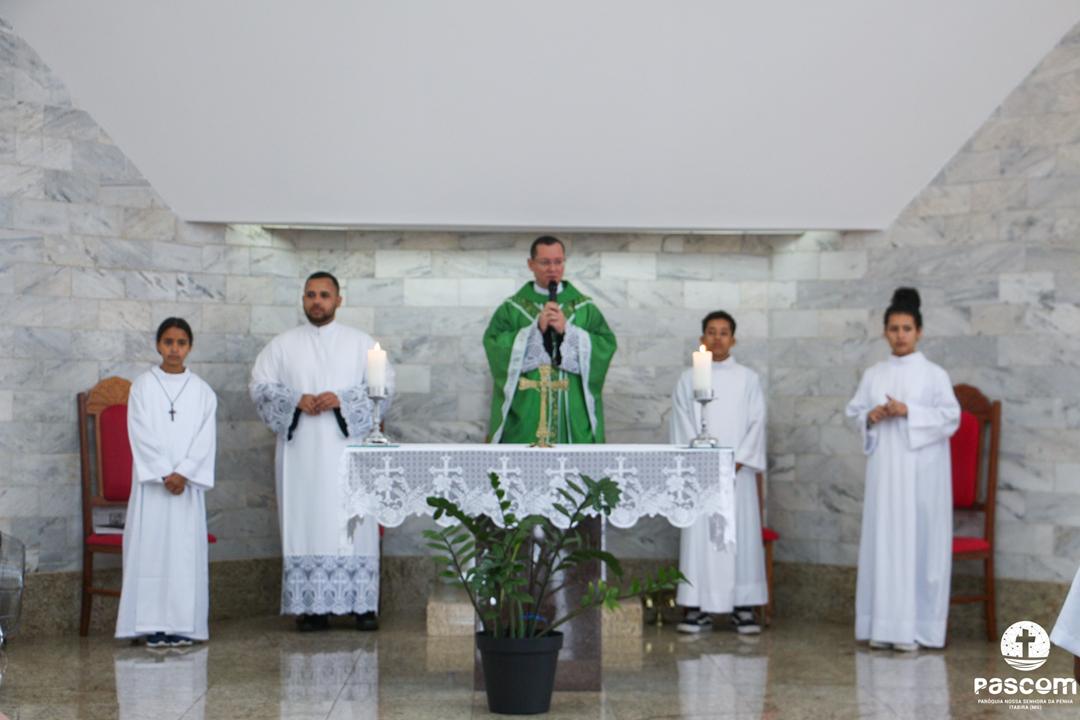 A celebração aconteceu às 9h, na Comunidade São Geraldo e foi presidida pelo Padre Ueliton Neves. Além dos muitos fiéis, participaram os catequistas da Iniciação à Vida Cristã (IVC), Iniciação à Vida Cristã de Adultos (IVCA), Batismo e Matrimônio.