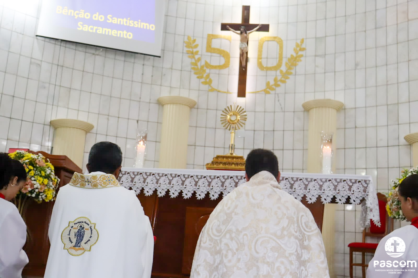 Na última quarta-feira, 18 de janeiro, a Comunidade Sagrado Coração de Jesus no bairro Praia acolheu a Missa pelo Jubileu Áureo da Paróquia. A Missa foi presidida pelo Padre Ronaldo Tôrre, filho desta comunidade e concelebrada pelo Padre Edson Vander Vigário Paroquial.