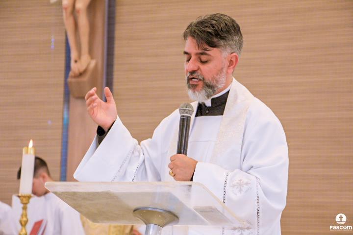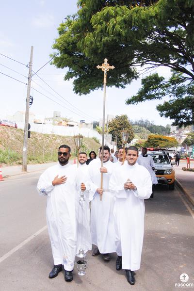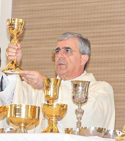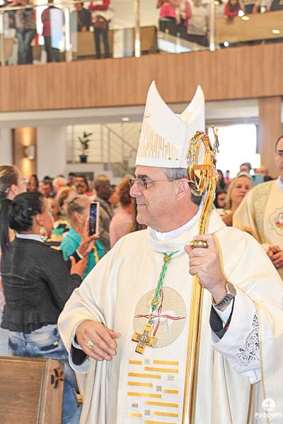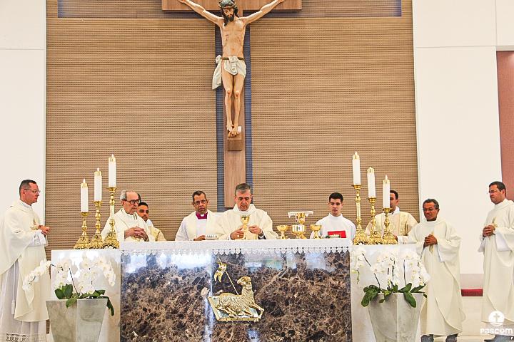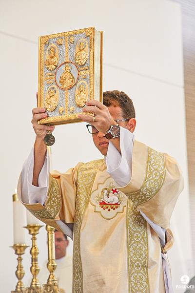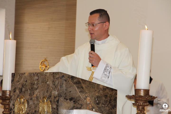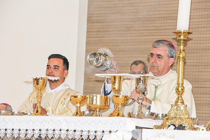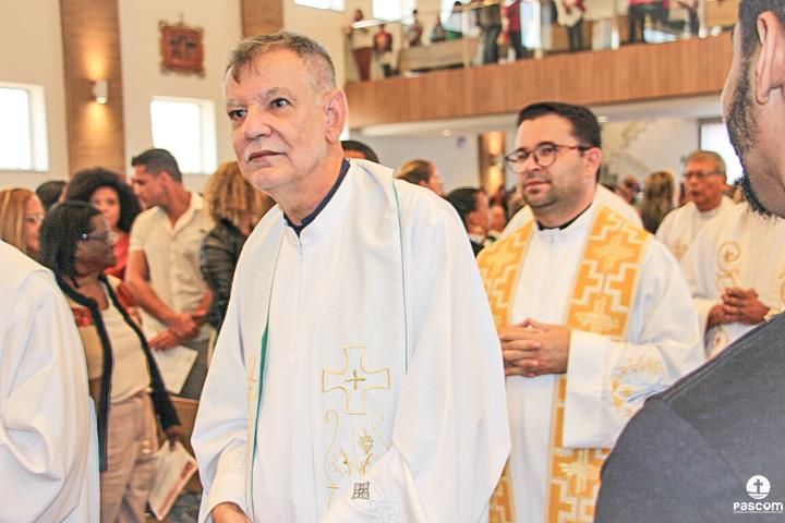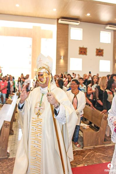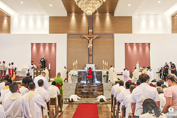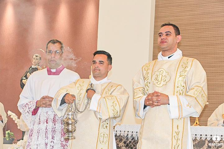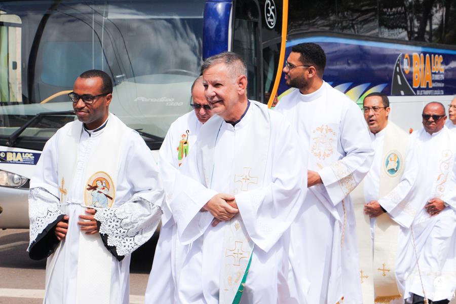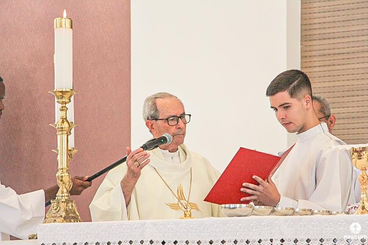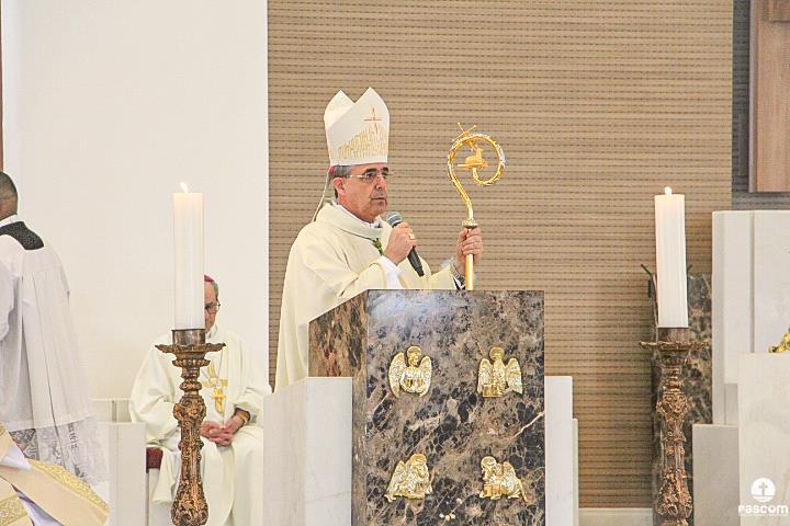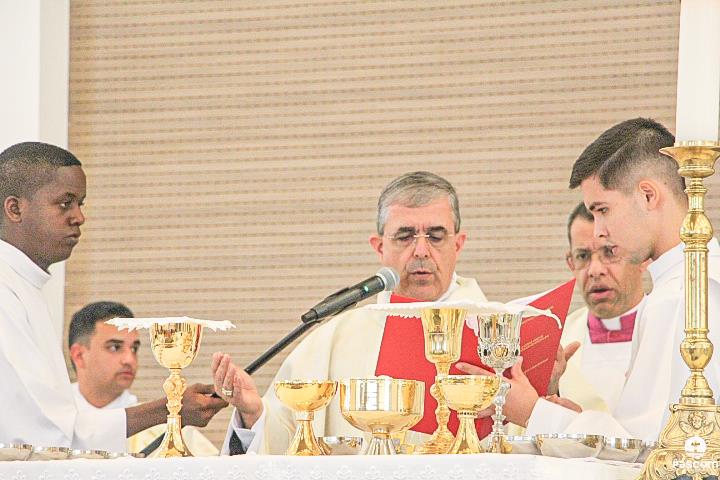 Diante do Santuário repleto de fiéis, o Dom Marco Aurélio afirmou, no começo da missa, ser esse um momento de grande alegria, fé e gratidão a Deus pelas vocações, mas, também, de oração para que sempre surjam novas e santas vocações aos ministérios ordenados.