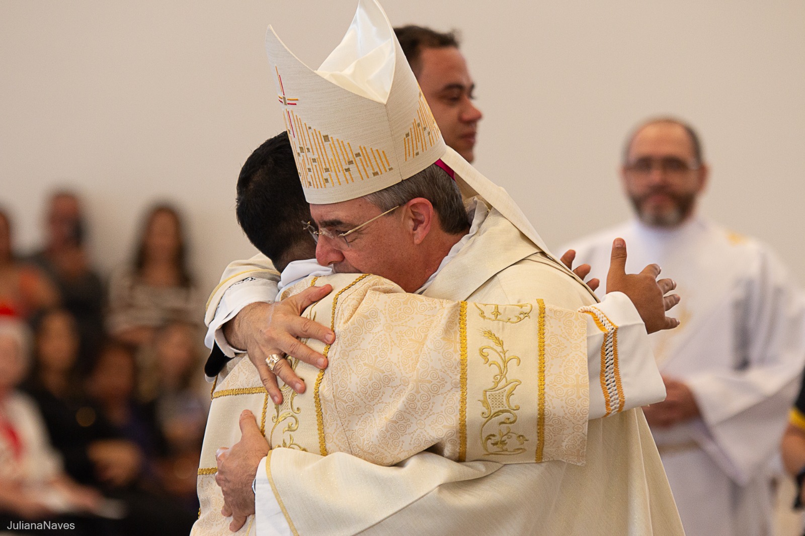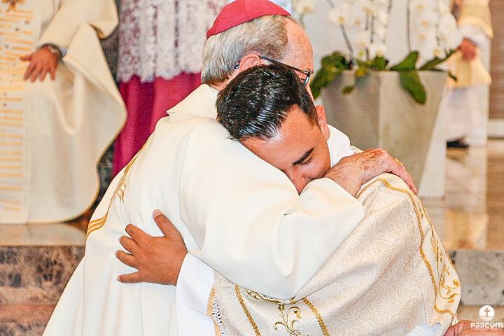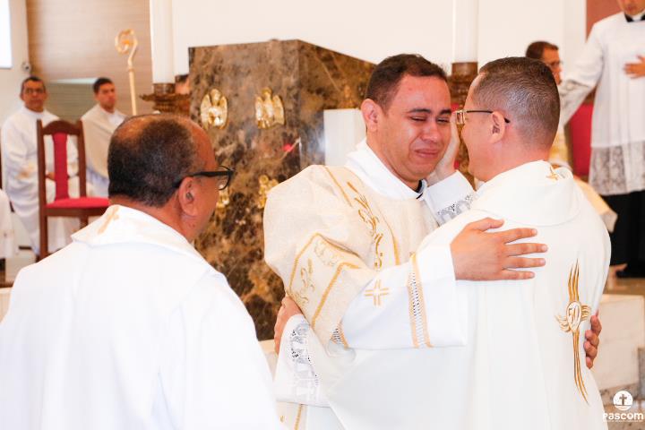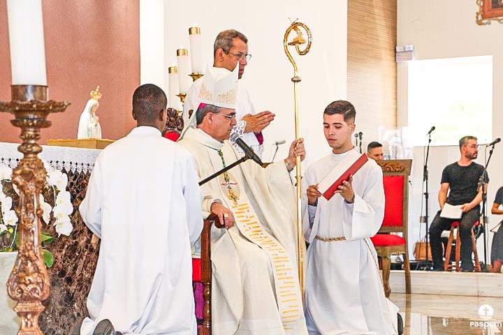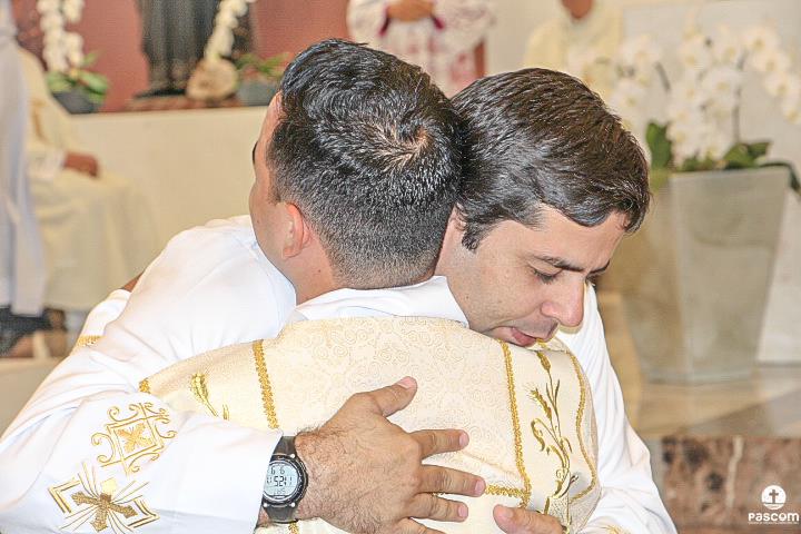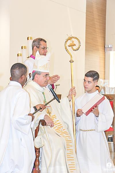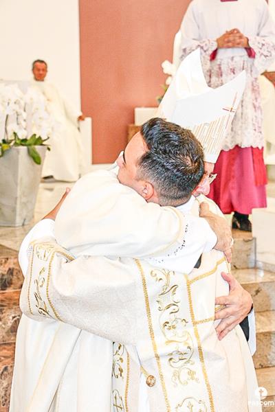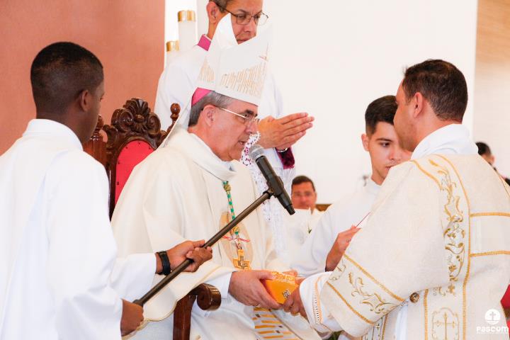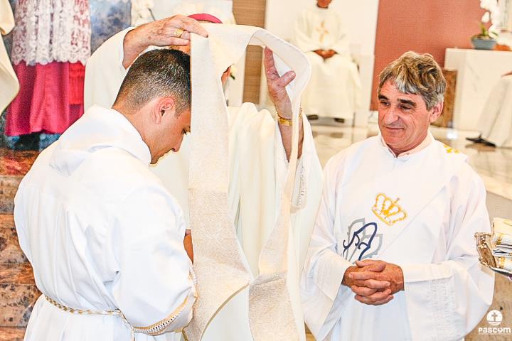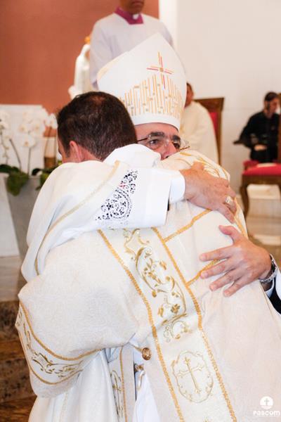 Após serem revestidos das vestes diaconais, os novos diáconos receberam do Bispo Diocesano o livro dos Evangelhos  e, na sequência, o abraço da paz, primeiro de Dom Marco Aurélio e depois dos diáconos presentes. Ao final da cerimônia, os neo-diáconos ofertaram rosas a Nossa Senhora, consagrando o seu ministério e dirigiram palavras de gratidão pelas orações, presença e colaboração de todos para a realização da ordenação.
