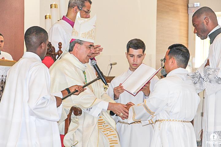 O rito de ordenação começou após a proclamação do Evangelho, com a apresentação dos candidatos ao diaconato. Padre Márcio Soares, Reitor do Seminário Diocesano, confirmou ao Bispo Diocesano que os candidatos são dignos para a Ordem do Diaconato, os mesmos confirmaram a opção de se colocarem a serviço do povo de Deus.