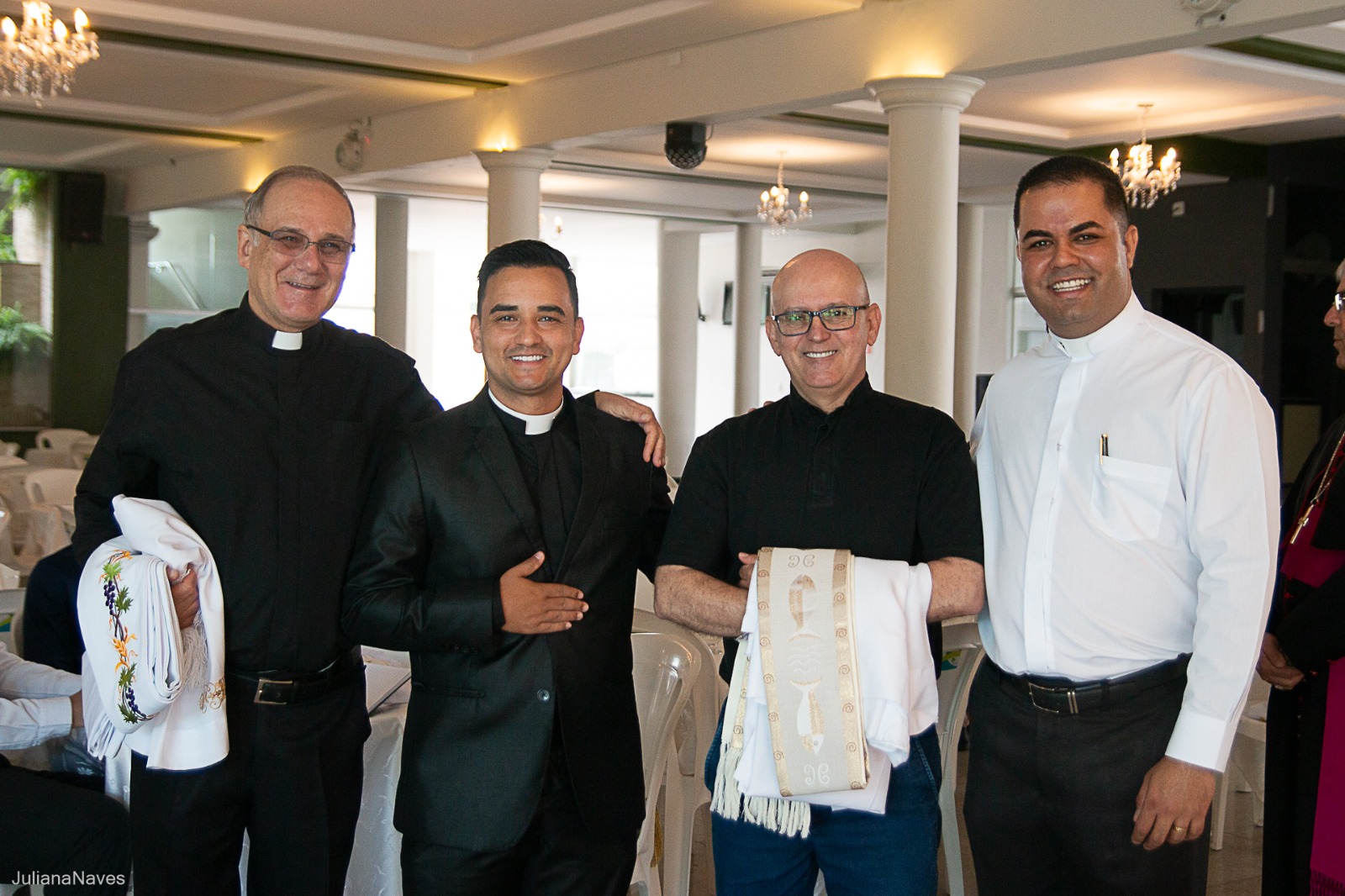 Gratidão a todas as equipes de trabalho das Paróquias Nossa Senhora da Penha e Nossa Senhora da Piedade que colaboraram para a realização da ordenação diaconal; ao Sr. Luiz Alberto Bettero do Valle, presidente da Associação Recreativa dos Ferroviários de Itabira (ARFITA), onde foi servido o almoço; ao Sr. Feliciano Adilson Domingues, Diretor Regional da Aposvale, onde foi servido o café para os clérigos; à Sra. Laudicéia da Conceição Pinto, Diretora da Escola Municipal Cornélio Penna, onde foi servido o café para todos os fiéis; ao Sr. Flávio Raimon da Silva, Superintendente de Trânsito de Itabira (Transita); ao Sr. Tenente Coronel Barcelos, Comandante do 26º Batalhão da Polícia Militar de Minas Gerais (PMMG), em Itabira; ao Sr. Pedro Fortunato dos Santos, do Restaurante Varanda, que com muita generosidade nos serviu todo o almoço; enfim, gratidão a todos os que fizeram suas doações para o café e outras doações. Deus abençoe a todos.