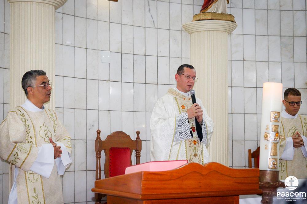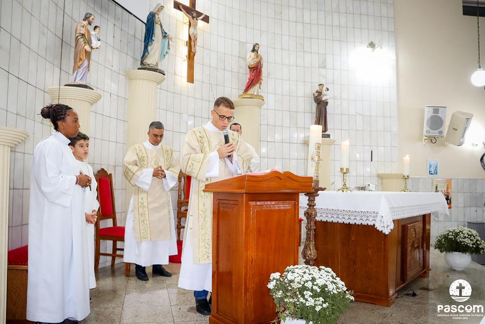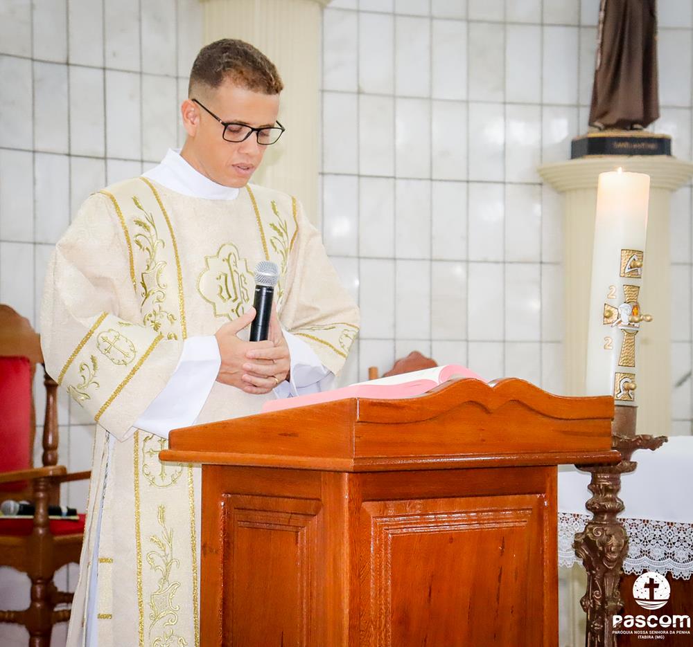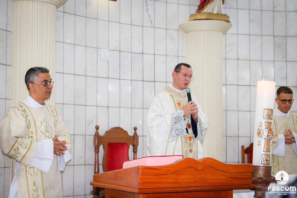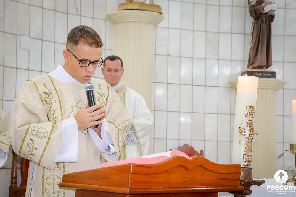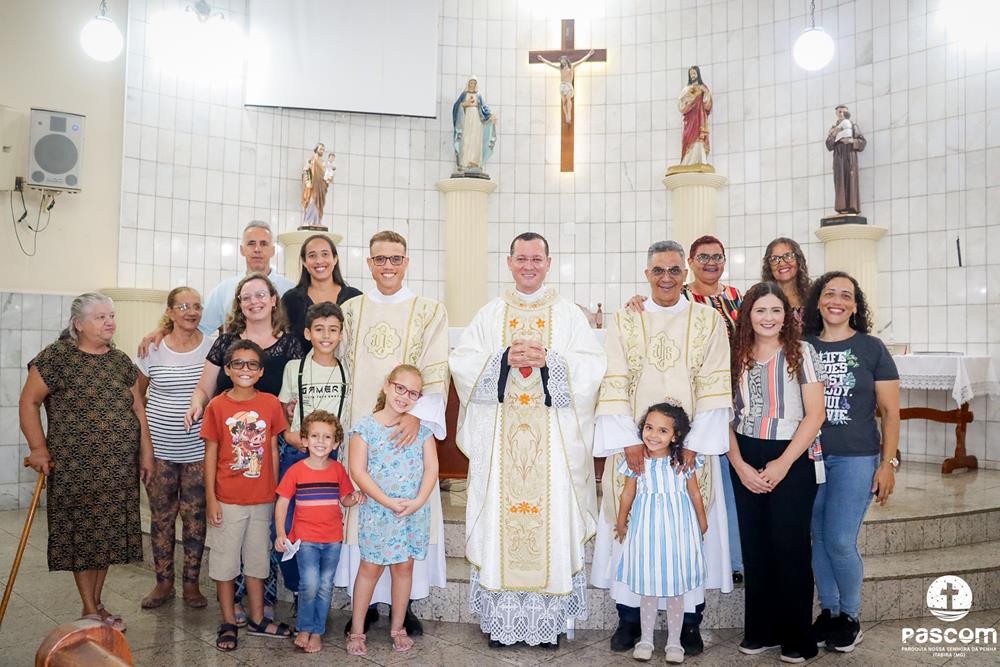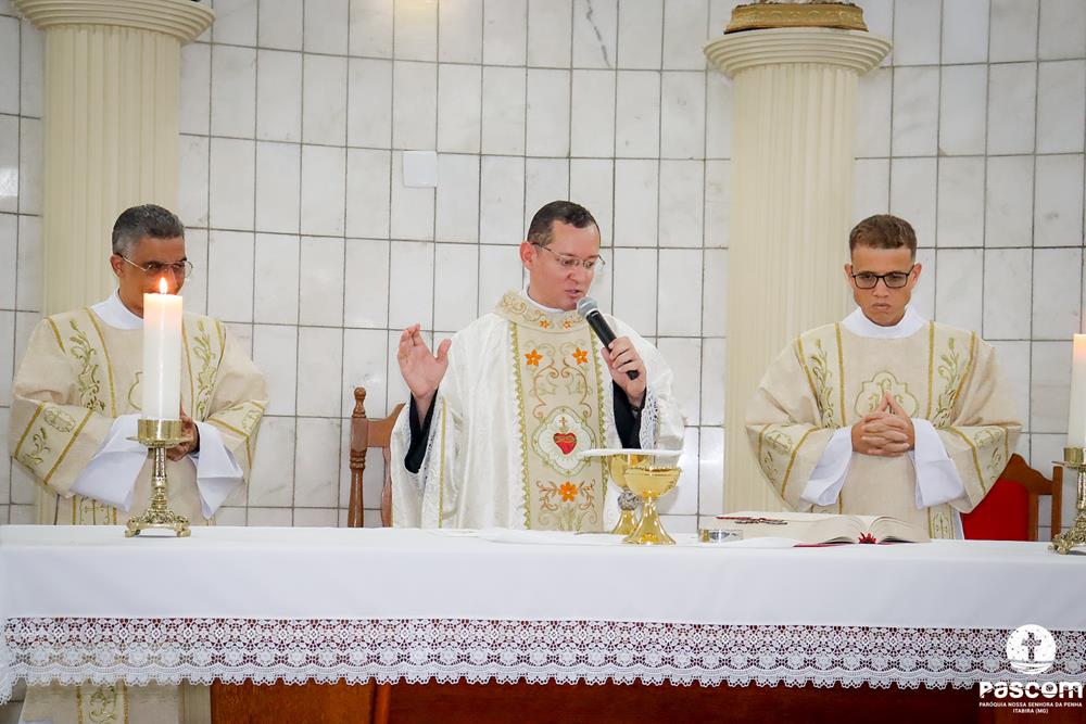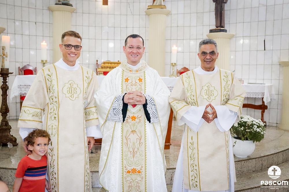 A Paróquia Nossa Senhora da Penha celebrou na última quarta-feira, dia 10 de abril, o primeiro aniversário de ordenação diaconal dos diáconos Alisson Junio Gomes e Bruno Luiz de Souza. Os diáconos foram ordenados no dia 25 de março de 2023, na festa da Anunciação do Senhor, no Santuário São Geraldo Majela. Como a data coincidiu com a semana santa, celebramos no dia 10 de abril na Igreja Sagrado Coração de Jesus, no bairro Praia. A missa foi presidida pelo Pe. Ueliton Neves, pároco, e contou com a presença de muitos fiéis, lideranças comunitárias e pastorais da paróquia, além dos familiares e amigos dos diáconos.
