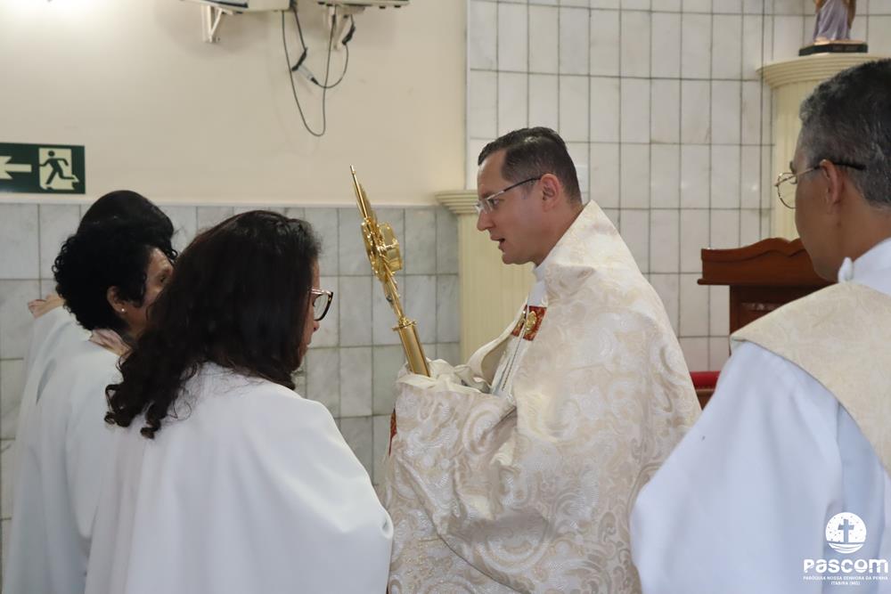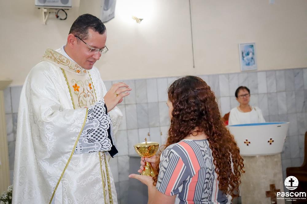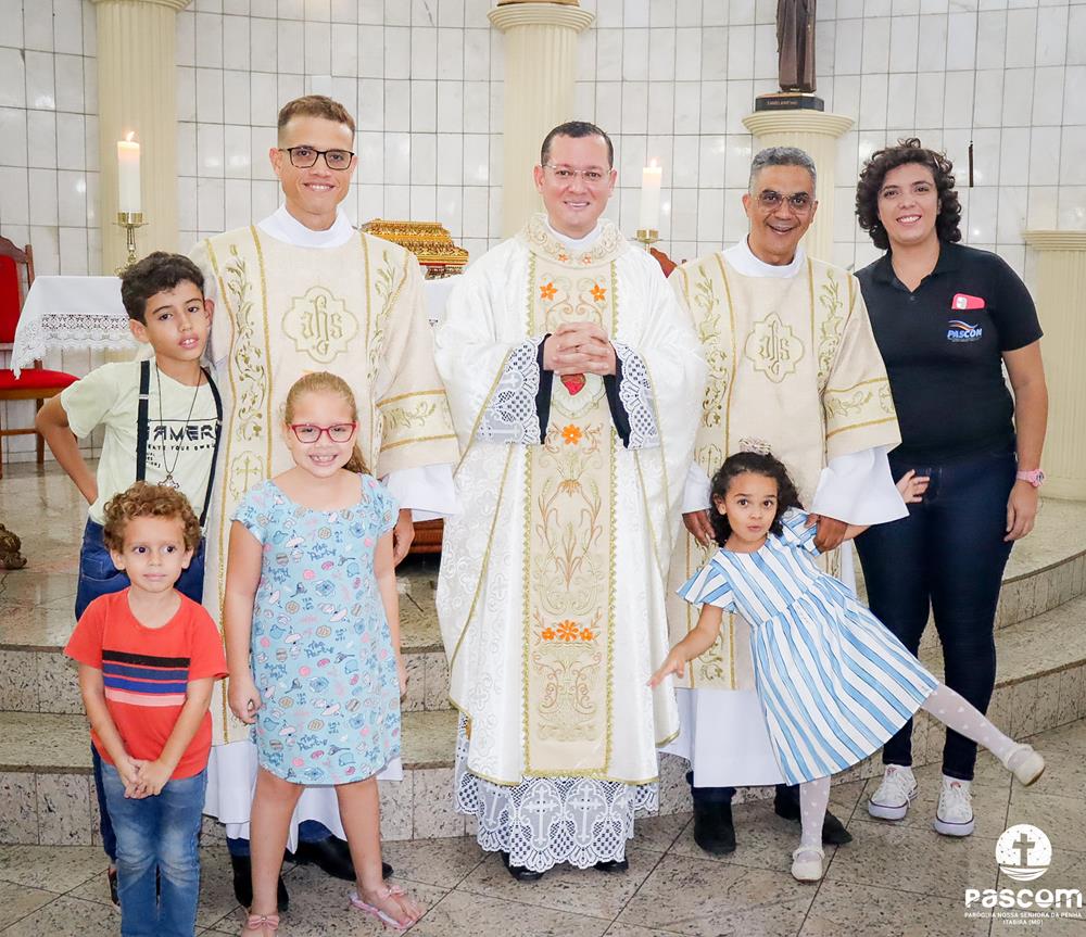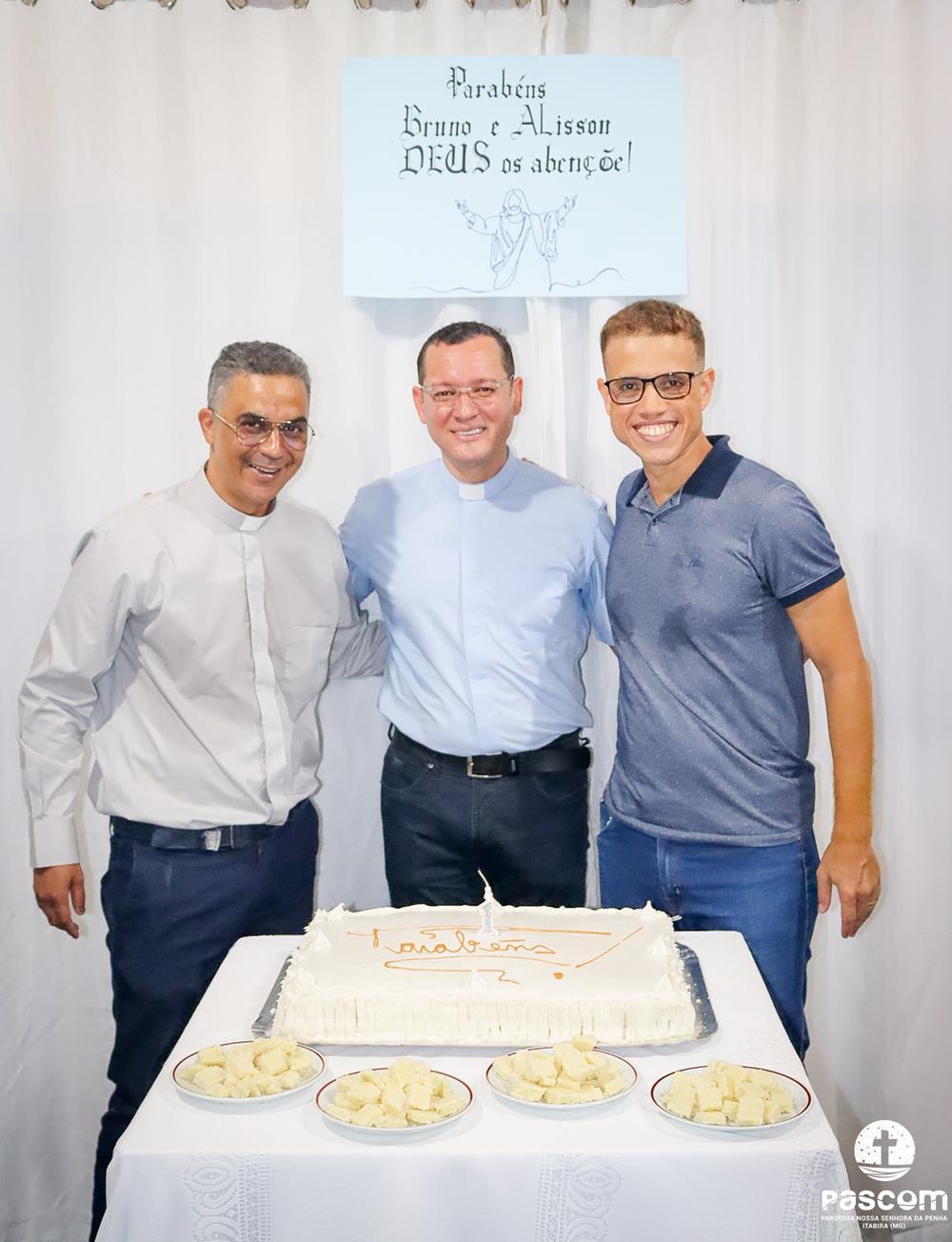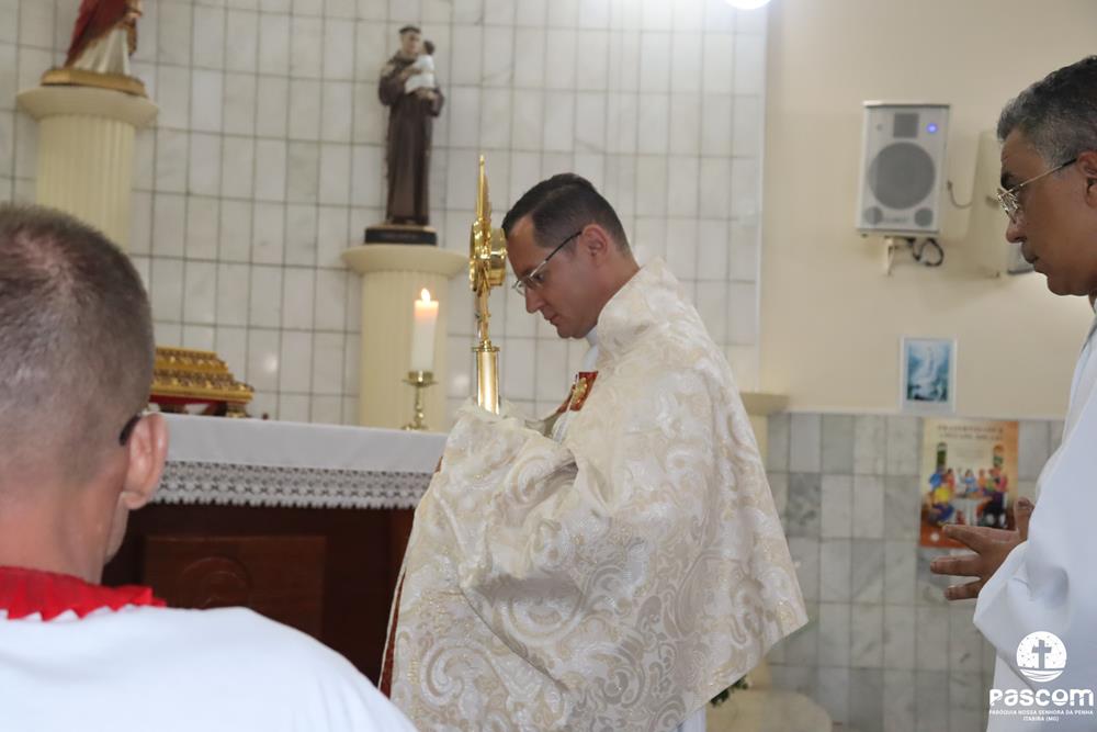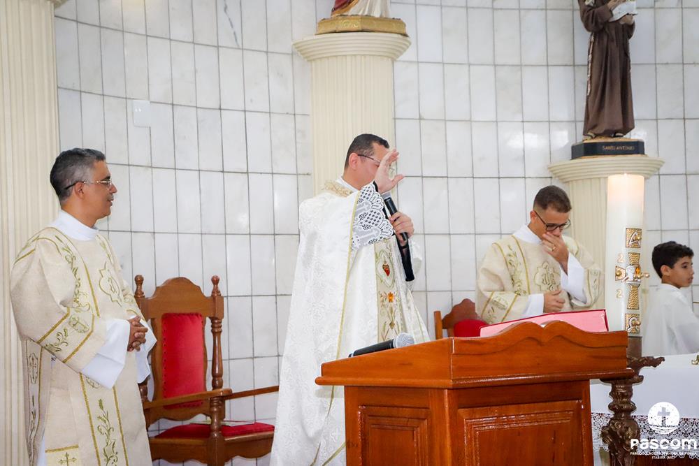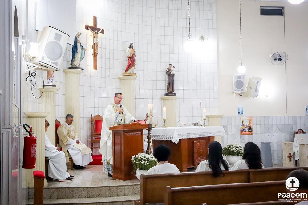 A Paróquia Nossa Senhora da Penha celebrou na última quarta-feira, dia 10 de abril, o primeiro aniversário de ordenação diaconal dos diáconos Alisson Junio Gomes e Bruno Luiz de Souza. Os diáconos foram ordenados no dia 25 de março de 2023, na festa da Anunciação do Senhor, no Santuário São Geraldo Majela. Como a data coincidiu com a semana santa, celebramos no dia 10 de abril na Igreja Sagrado Coração de Jesus, no bairro Praia. A missa foi presidida pelo Pe. Ueliton Neves, pároco, e contou com a presença de muitos fiéis, lideranças comunitárias e pastorais da paróquia, além dos familiares e amigos dos diáconos.