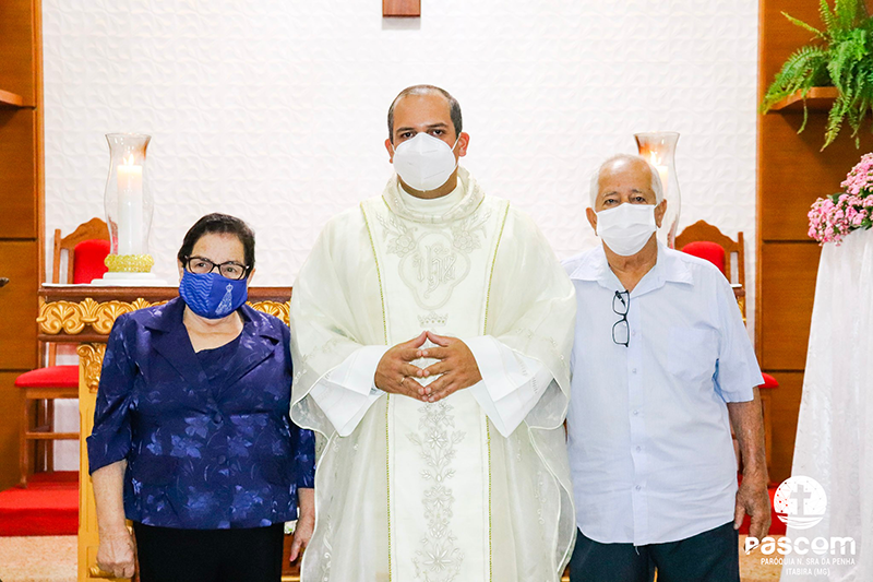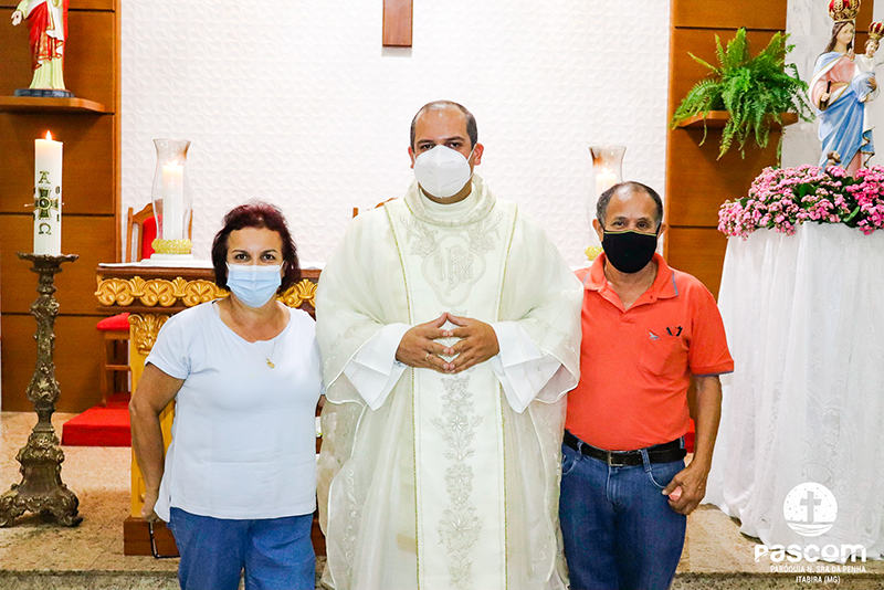 A missa, que foi celebrada às 19h na Igreja Matriz, teve a presidência do aniversariante e por concelebrantes o Pe. Ueliton Neves, pároco da paróquia, e dos Padres Daniel, Dominique e Marianus, membros da família religiosa do aniversariante. Participaram também da santa missa cinco seminaristas da congregação e os familiares do Pe. Márcio Flávio.