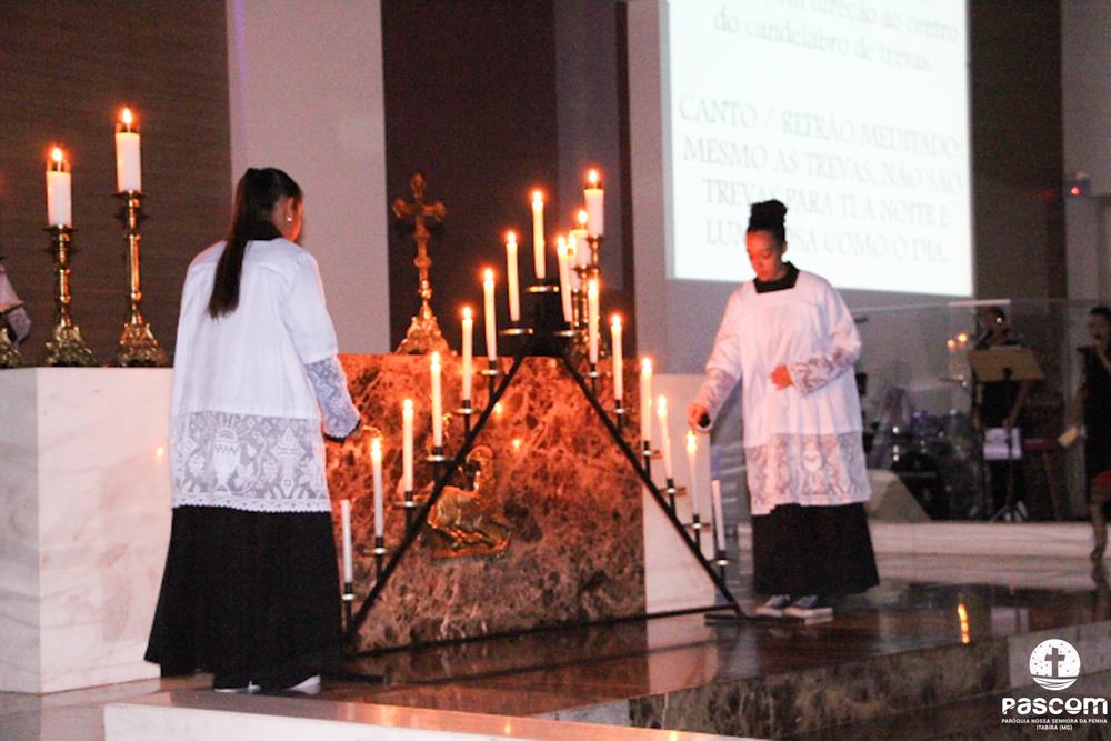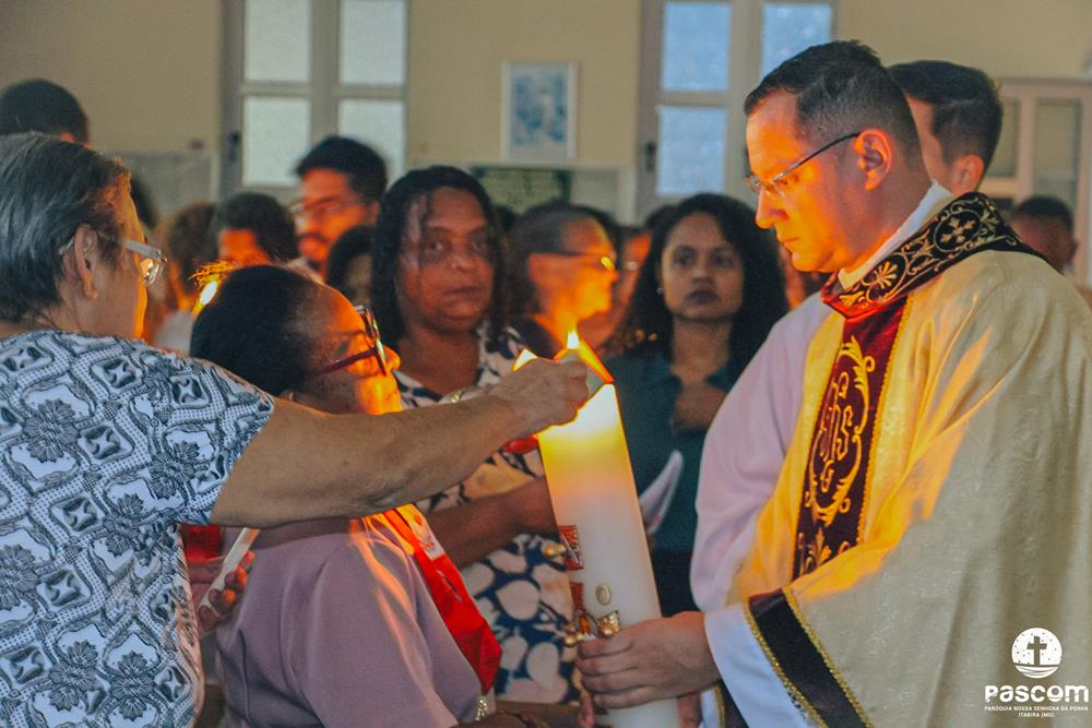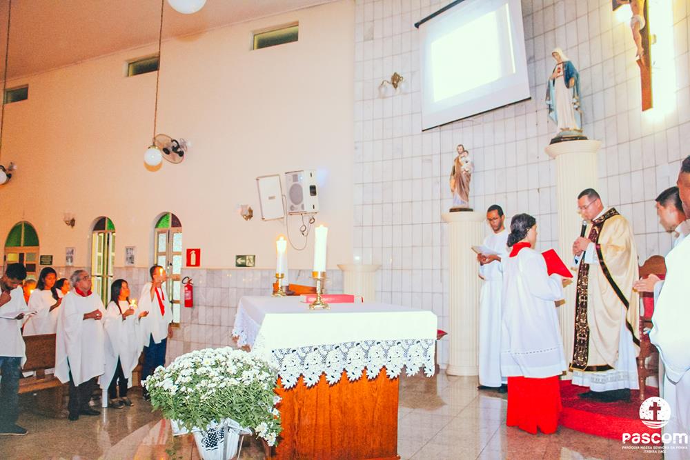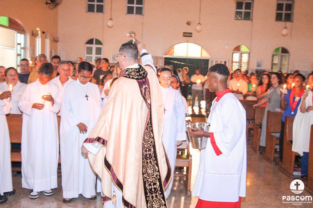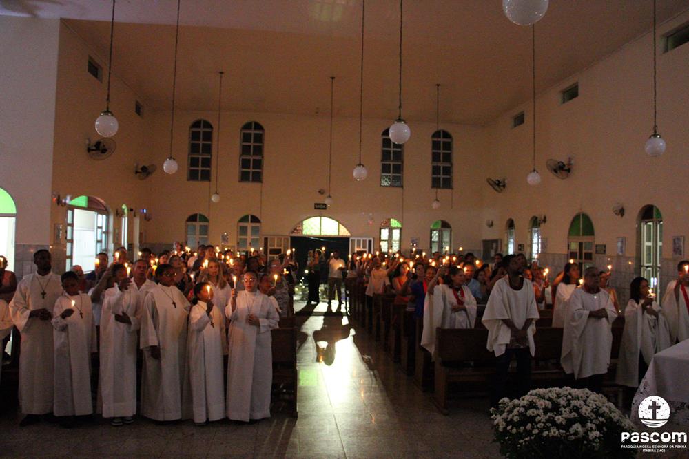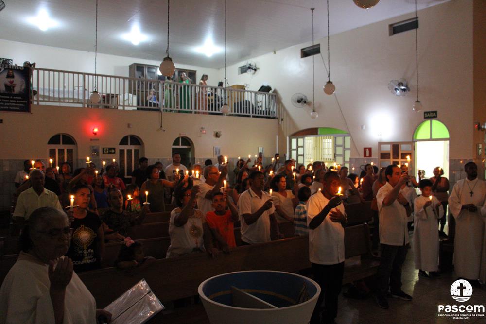 A Semana Santa na Paróquia Nossa Senhora da Penha foi de grande participação do povo de Deus. Iniciada com a celebração do Domingo de Ramos da Paixão do Senhor, a semana maior da Igreja teve seu ápice na Solene Vigília Pascal, na noite do sábado santo.