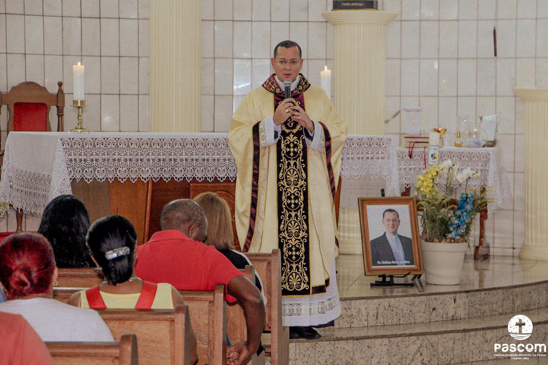 A Santa Missa foi presidida por ele mesmo, com presença do Diácono Permanente de nossa paróquia Alisson Gomes, e também do Diácono Permanente Jairo, da Paróquia Nossa Senhora do Rosário, em Santa Maria de Itabira contando com a participação de boa parte dos fiéis paroquianos.