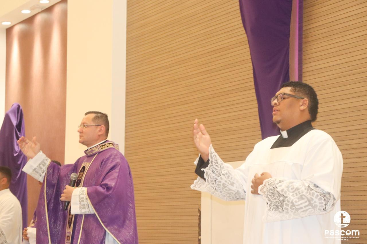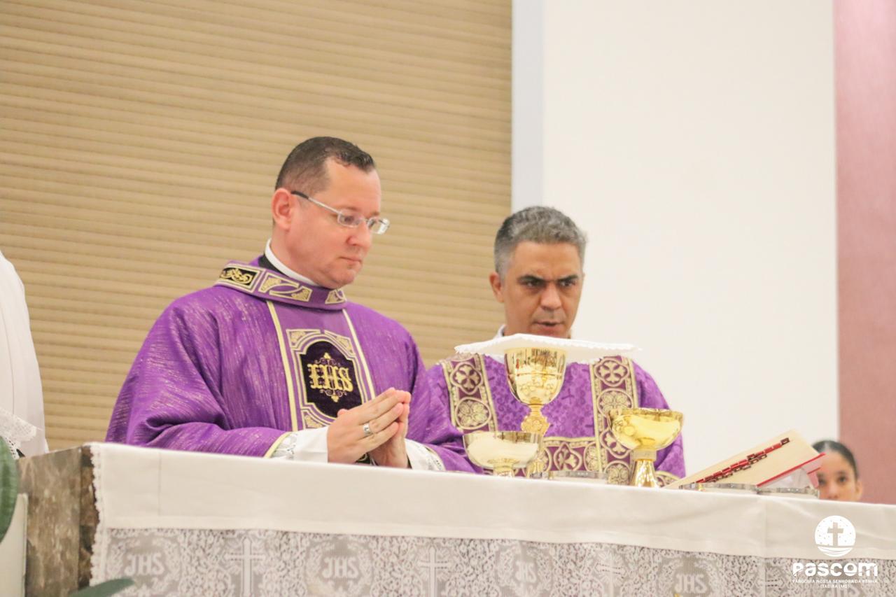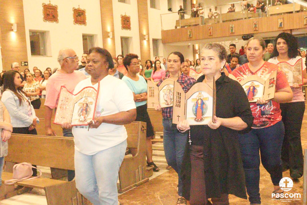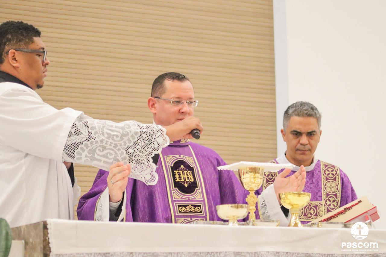 O Sermão do encontro foi proferido pelo Pe. Ueliton Neves, no interior do Santuário, devido ao tempo chuvoso.