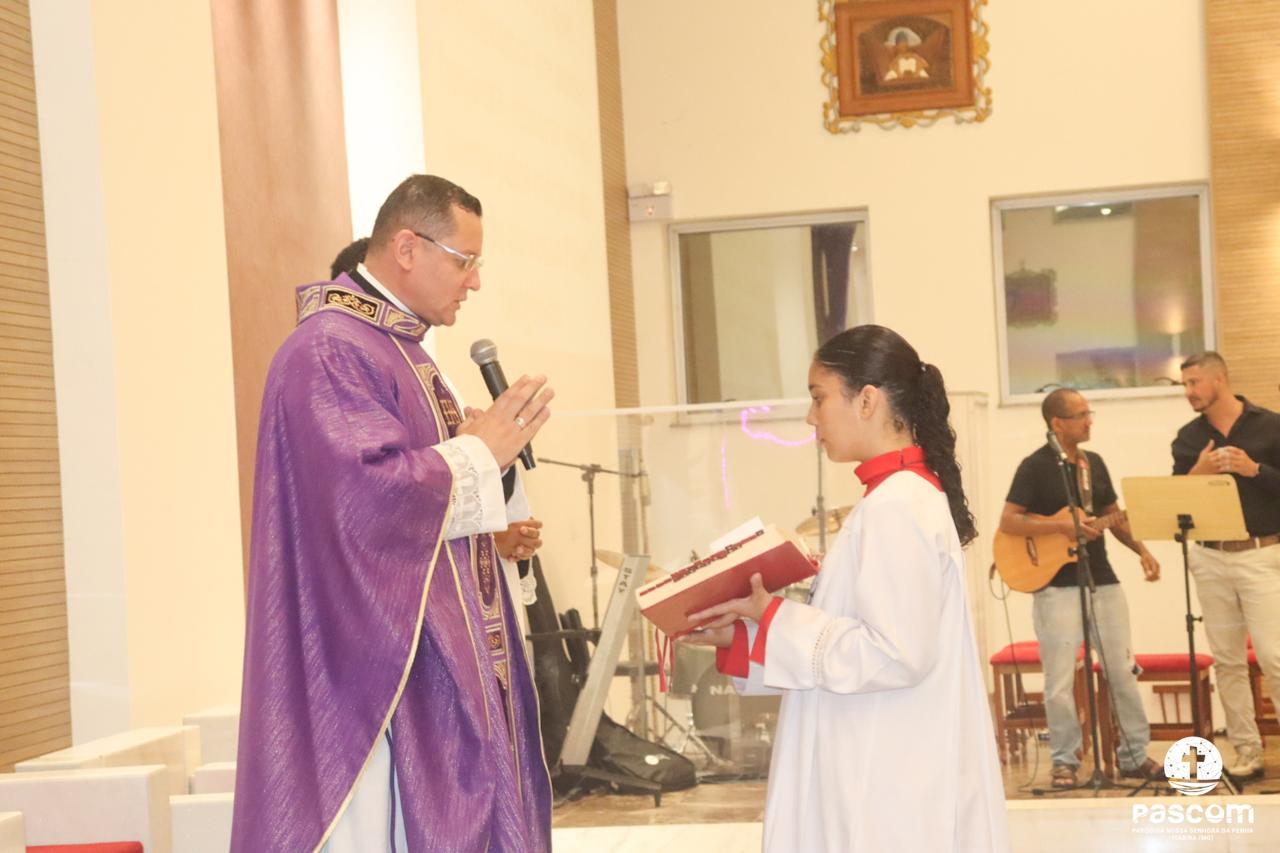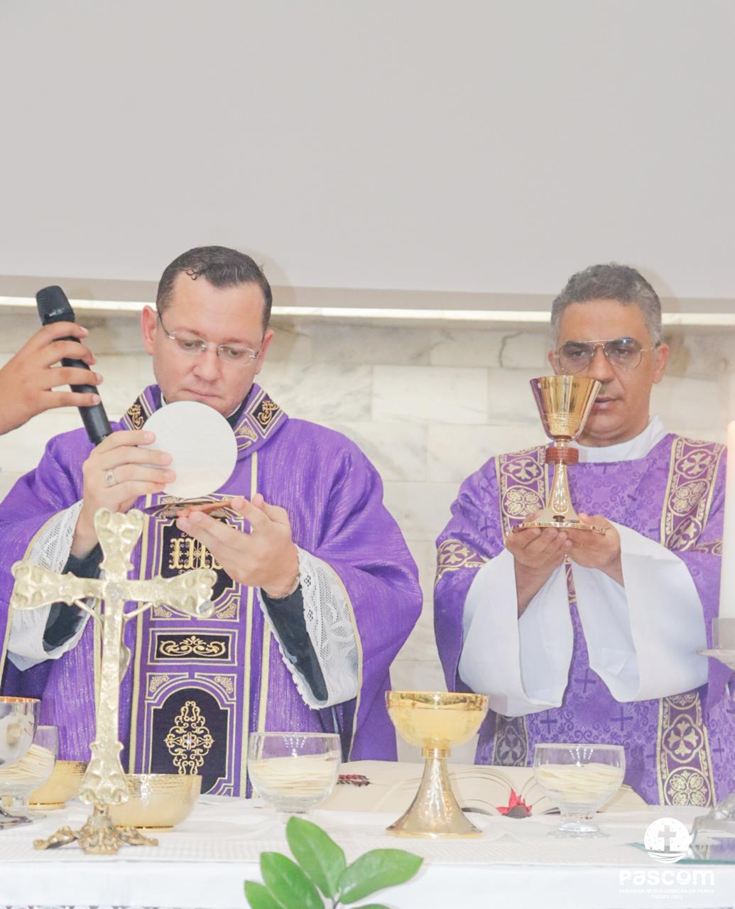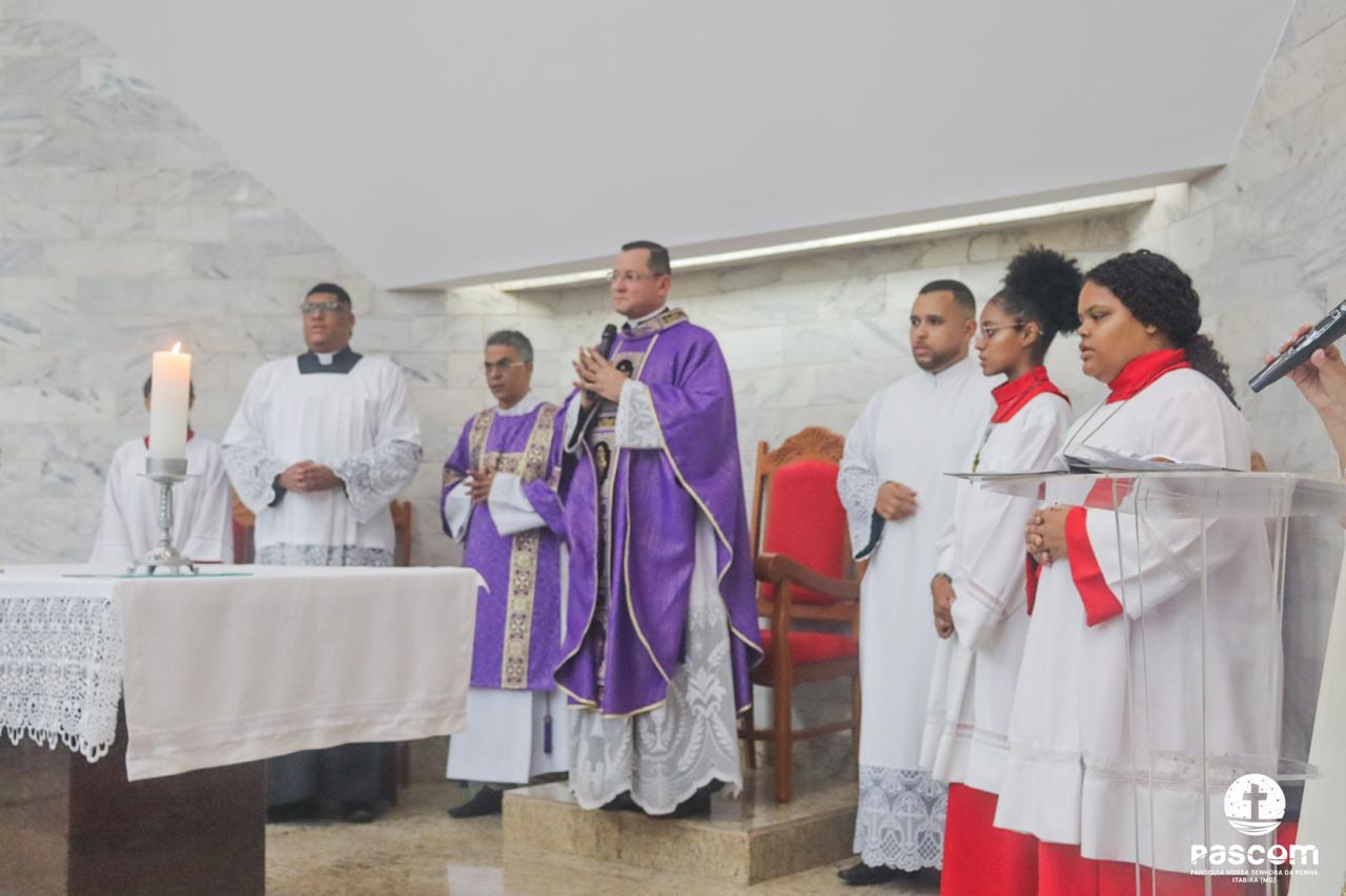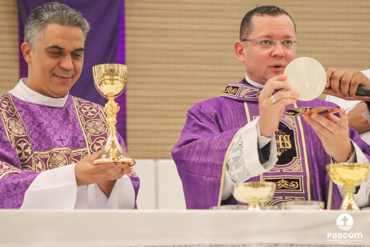 O Sermão do encontro foi proferido pelo Pe. Ueliton Neves, no interior do Santuário, devido ao tempo chuvoso.