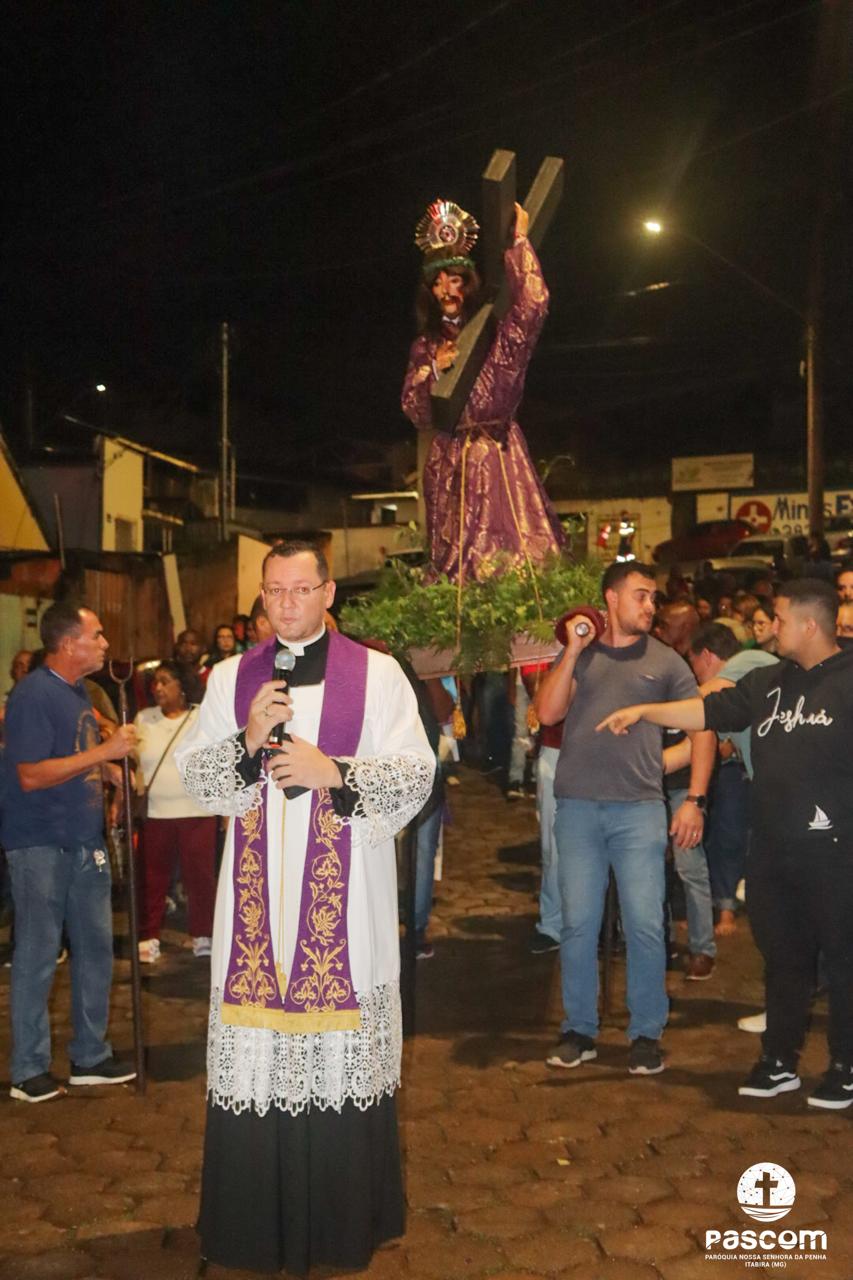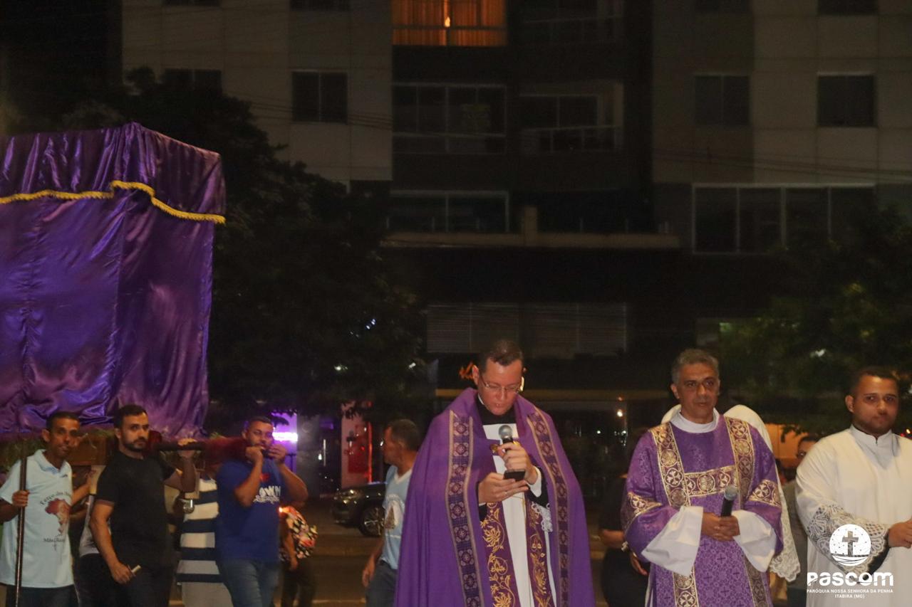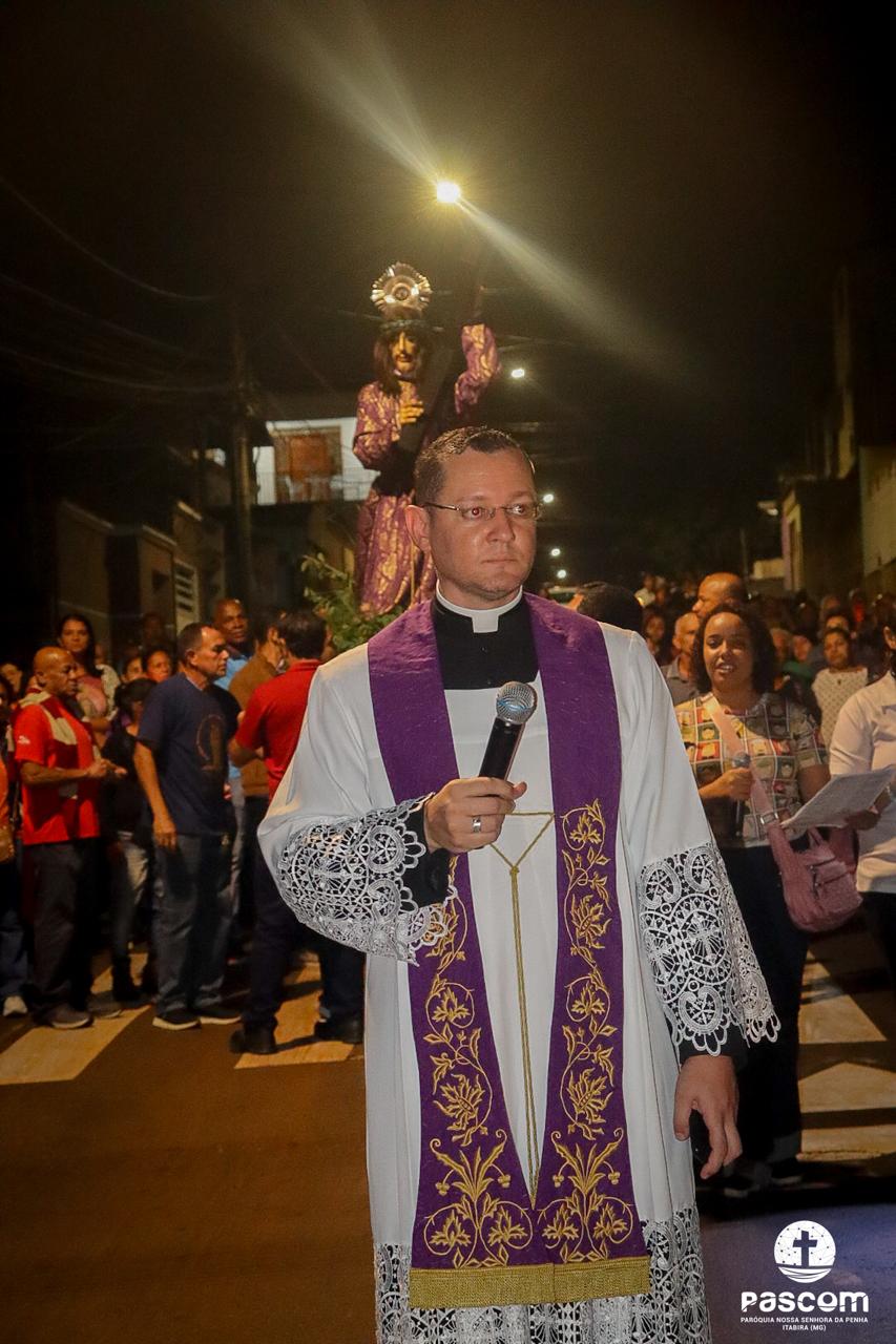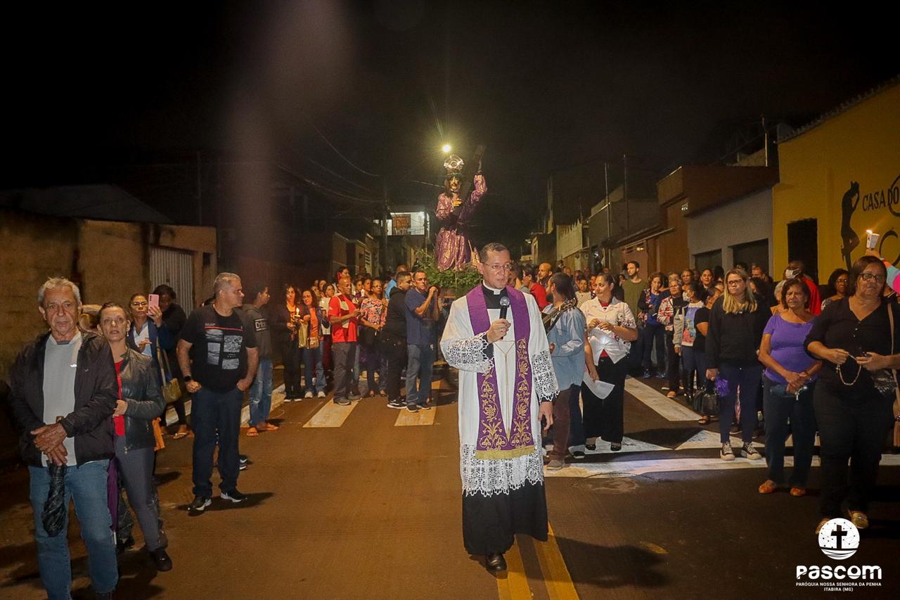 Hoje, pelas ruas de nossa cidade, contemplamos o Senhor dos Passos e ouvimos os seus passos, como se ouviu no Jardim do Édem. Não podemos nos esconder dele, pois Ele vem ao nosso encontro, caminha em nossa direção, nos procura incansavelmente e não se contenta enquanto não nos encontra. Não fujamos do Senhor, mas corramos ao seu encontro. O Senhor dos Passos ao passar pelas ruas de nossa cidade, percorre-as carregando em seus ombros a cruz. Mas, mesmo que embora lhe pese aos ombros o peso do madeiro, ele passa e contemplar tudo ao seu redor: as pessoas que o insultam, as que com ele se solidarizam e choram, mas o Senhor contempla a nossa Casa Comum. Sim, o Senhor contemplar a natureza, toda criação de Deus. Pesa junto ao peso da cruz ver a devastação de tudo o que Deus criou e viu que era muito bom. Vê os seres humanos em disputas constantes pelo poder, pelo ter. Vê o ser humano, imagem e semelhança de Deus, sem humanidade, insensível. Vê o ser humano com o coração repleto de ganância, soberba, avareza. Que caminho difícil e doloroso passou e contemplou o meu Senhor