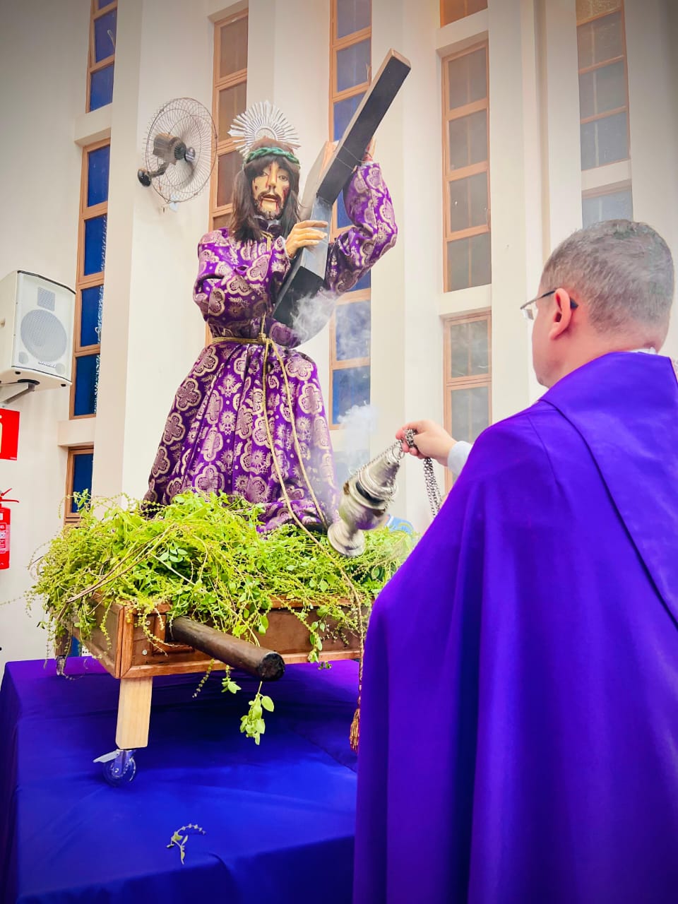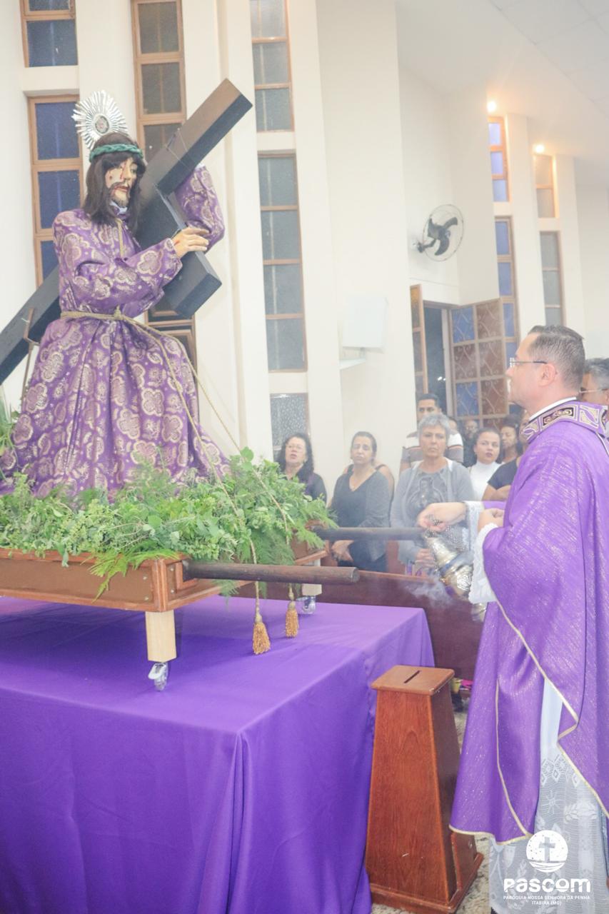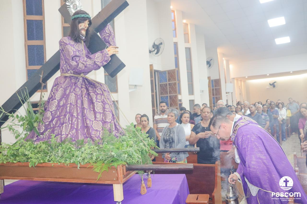 Hoje, pelas ruas de nossa cidade, contemplamos o Senhor dos Passos e ouvimos os seus passos, como se ouviu no Jardim do Édem. Não podemos nos esconder dele, pois Ele vem ao nosso encontro, caminha em nossa direção, nos procura incansavelmente e não se contenta enquanto não nos encontra. Não fujamos do Senhor, mas corramos ao seu encontro. O Senhor dos Passos ao passar pelas ruas de nossa cidade, percorre-as carregando em seus ombros a cruz. Mas, mesmo que embora lhe pese aos ombros o peso do madeiro, ele passa e contemplar tudo ao seu redor: as pessoas que o insultam, as que com ele se solidarizam e choram, mas o Senhor contempla a nossa Casa Comum. Sim, o Senhor contemplar a natureza, toda criação de Deus. Pesa junto ao peso da cruz ver a devastação de tudo o que Deus criou e viu que era muito bom. Vê os seres humanos em disputas constantes pelo poder, pelo ter. Vê o ser humano, imagem e semelhança de Deus, sem humanidade, insensível. Vê o ser humano com o coração repleto de ganância, soberba, avareza. Que caminho difícil e doloroso passou e contemplou o meu Senhor