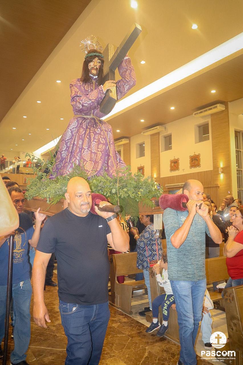 Na segunda-feira, 14/04, após a Santa Missa na Catedral Diocesana Nossa Senhora do Rosário, presidida pelo Pe. Adriano Mendes de Pinho, a imagem do Senhor dos Passos seguiu para o depósito. Após a missa presidida pelo Pe. Ueliton Neves da Silva, no Santuário São Geraldo Majela, a imagem foi acolhida no interior do Templo e seguiu em procissão para o depósito para a Igreja de São Geraldo, no bairro Major Lage de Baixo.